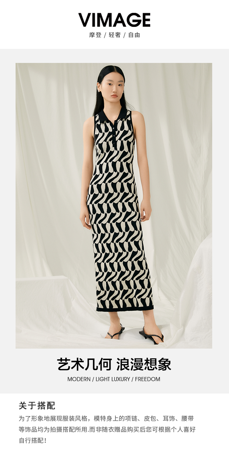 VIMAGE纬漫纪夏季新款收腰显瘦显高针织长款无袖连衣裙V1901523