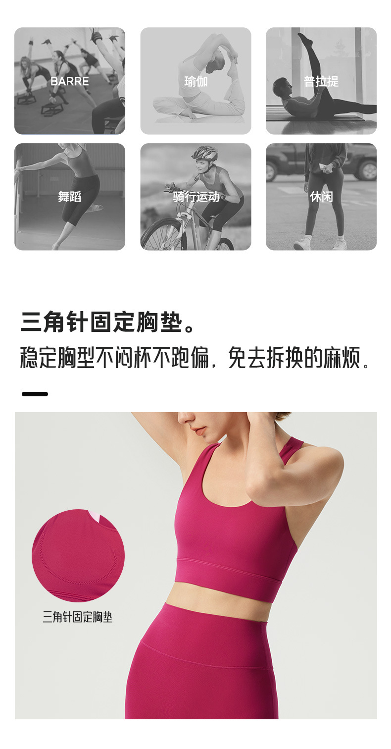 跃牌【周游世界系列】 运动内衣女新款防震跑步一体式固定杯聚拢收副乳文胸瑜伽健身背心 BR1552