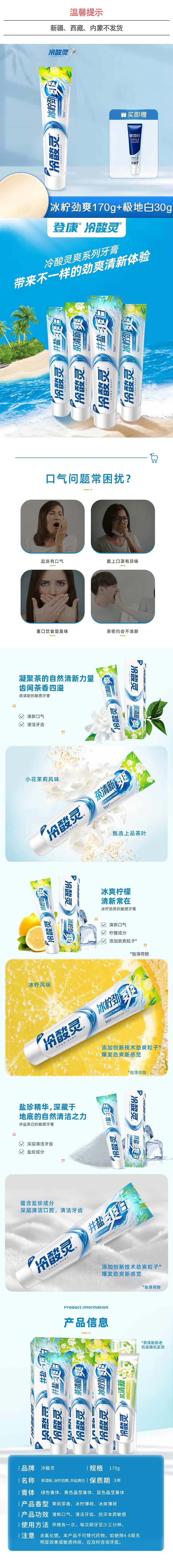 冷酸灵 冰柠劲爽牙膏170g+随机牙膏30g*1支 9099702