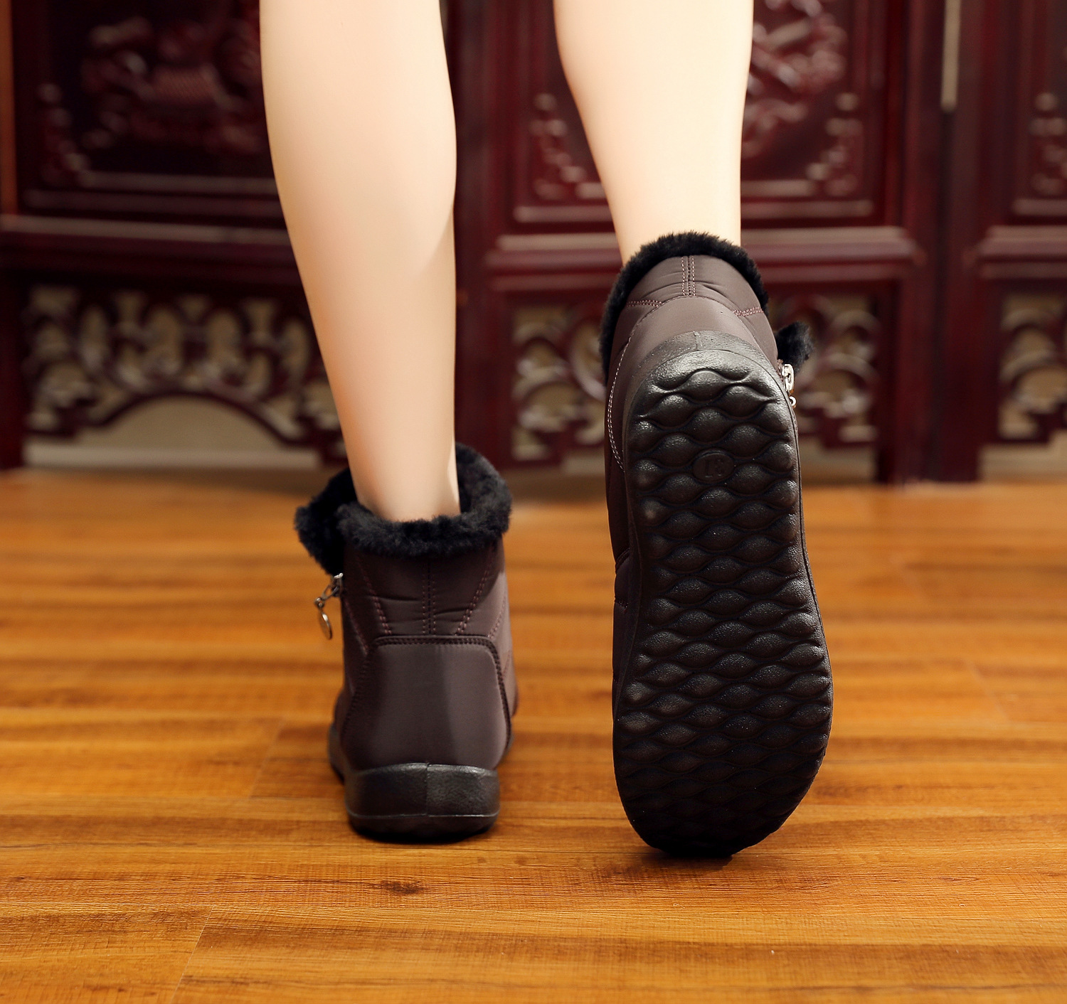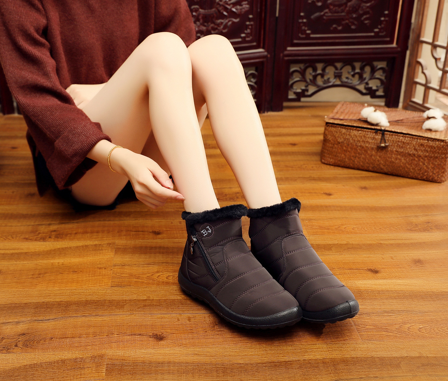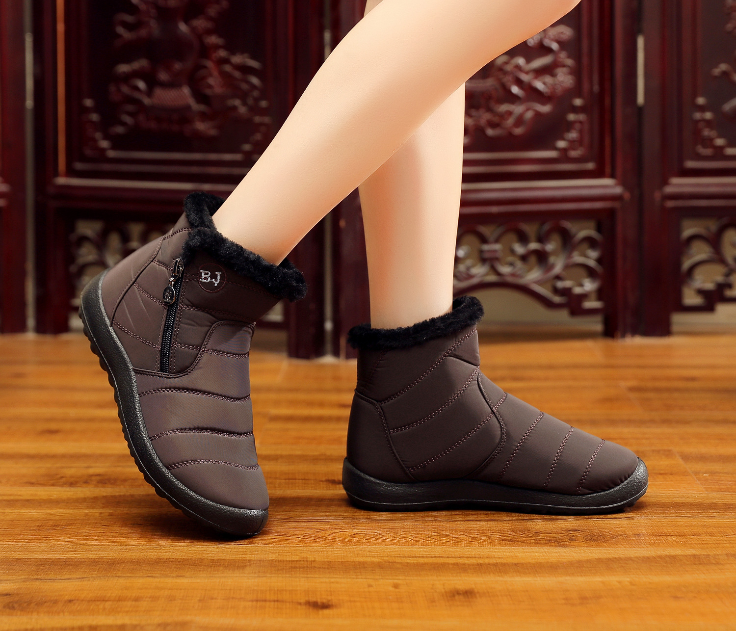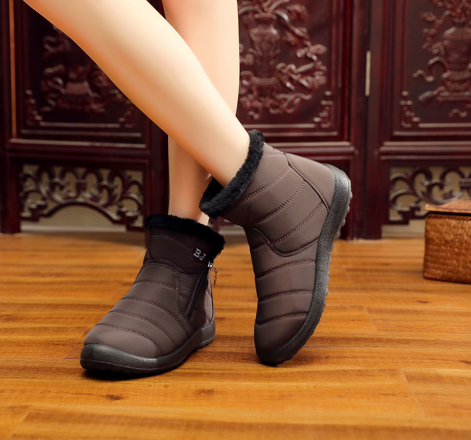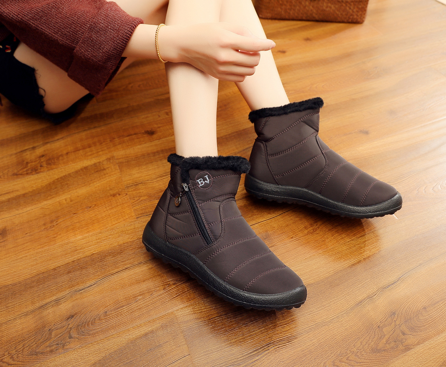 中筒厚毛绒防水侧拉链雪地靴XQ-M407