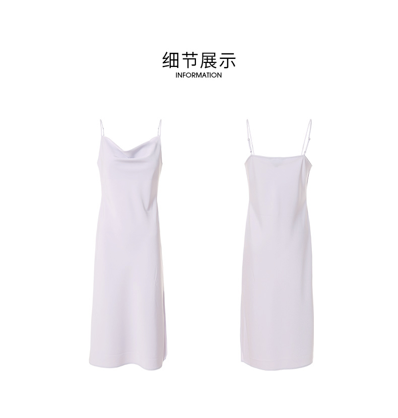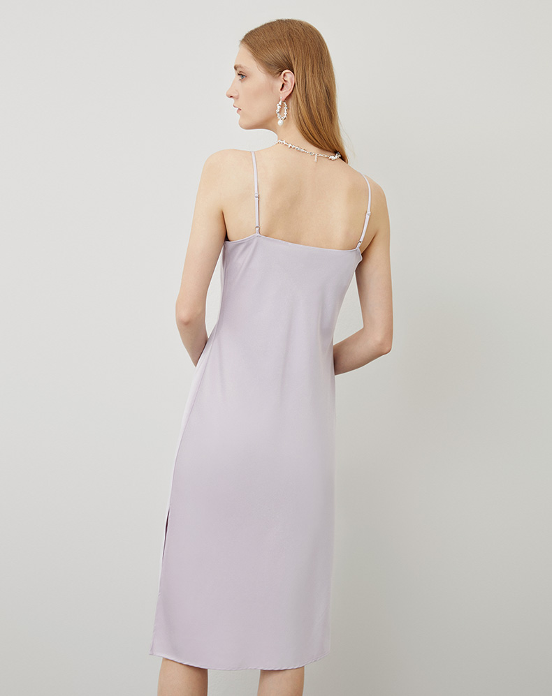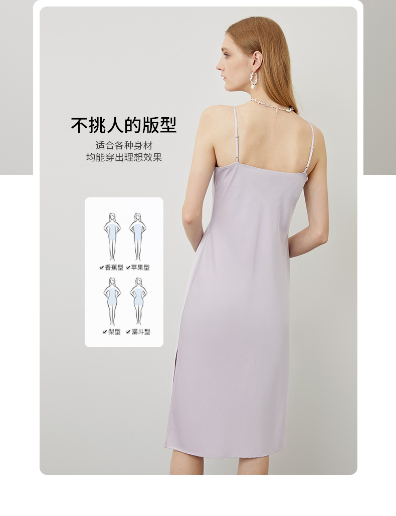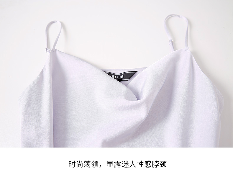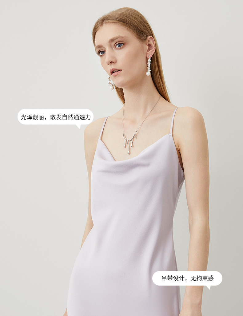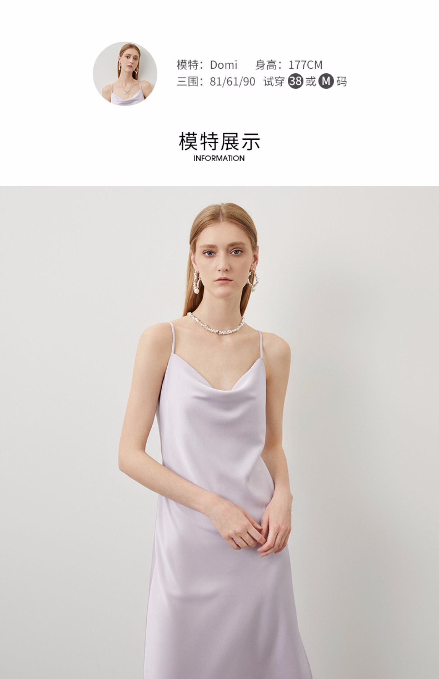 EITIE爱特爱秋季新款气质性感荡领吊带开叉缎面紫色连衣裙C2207032
