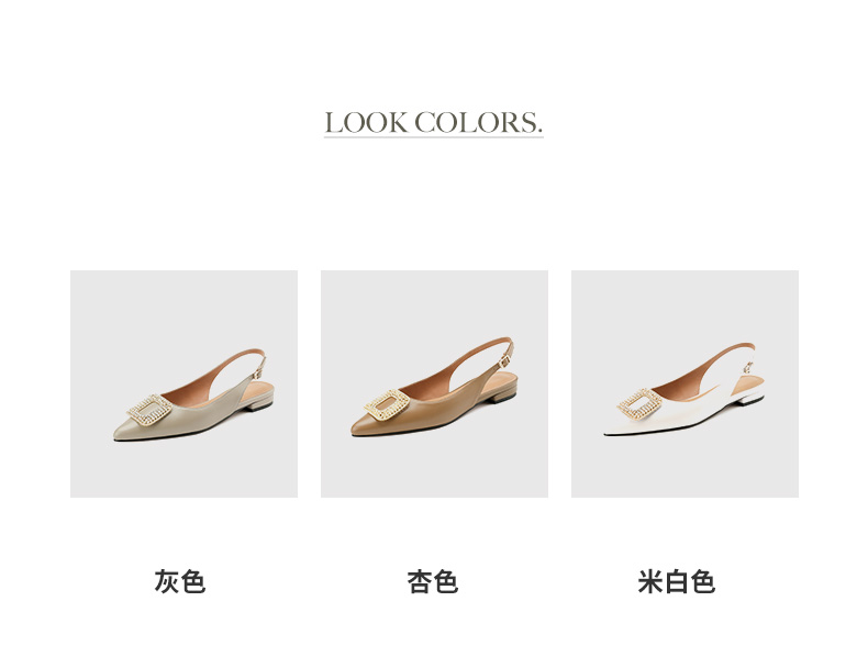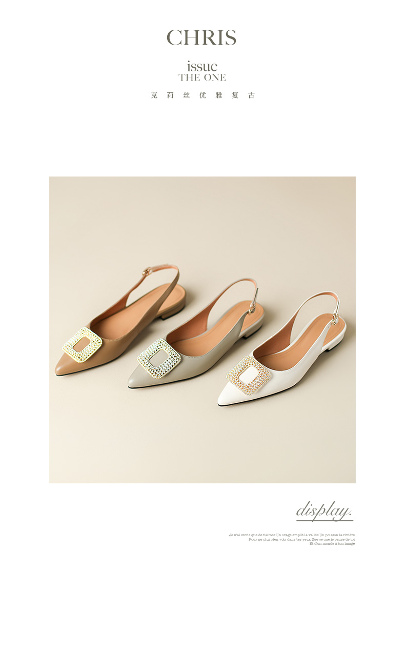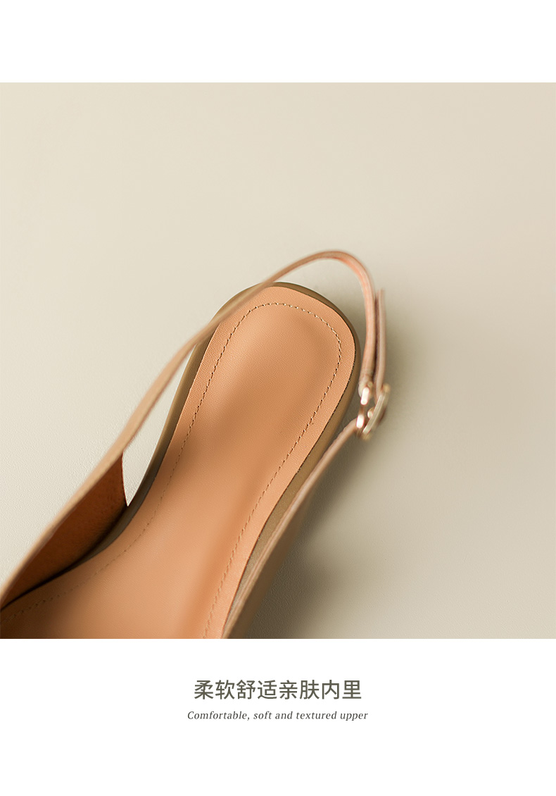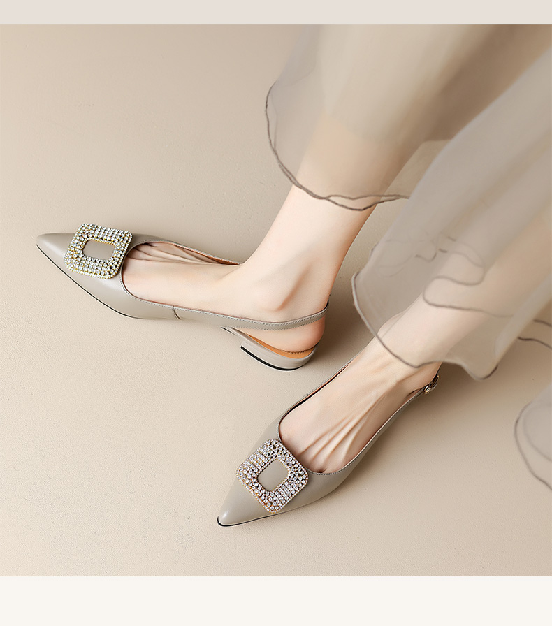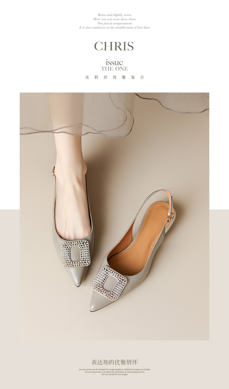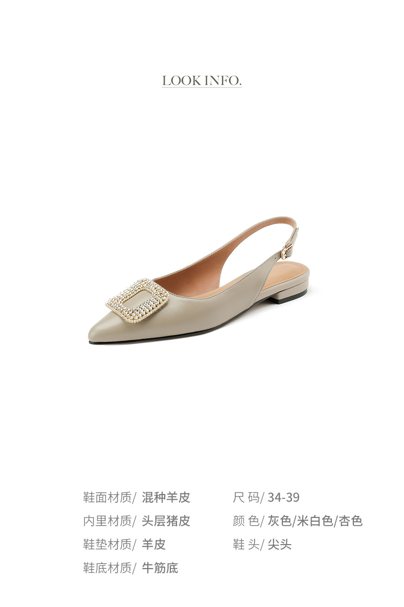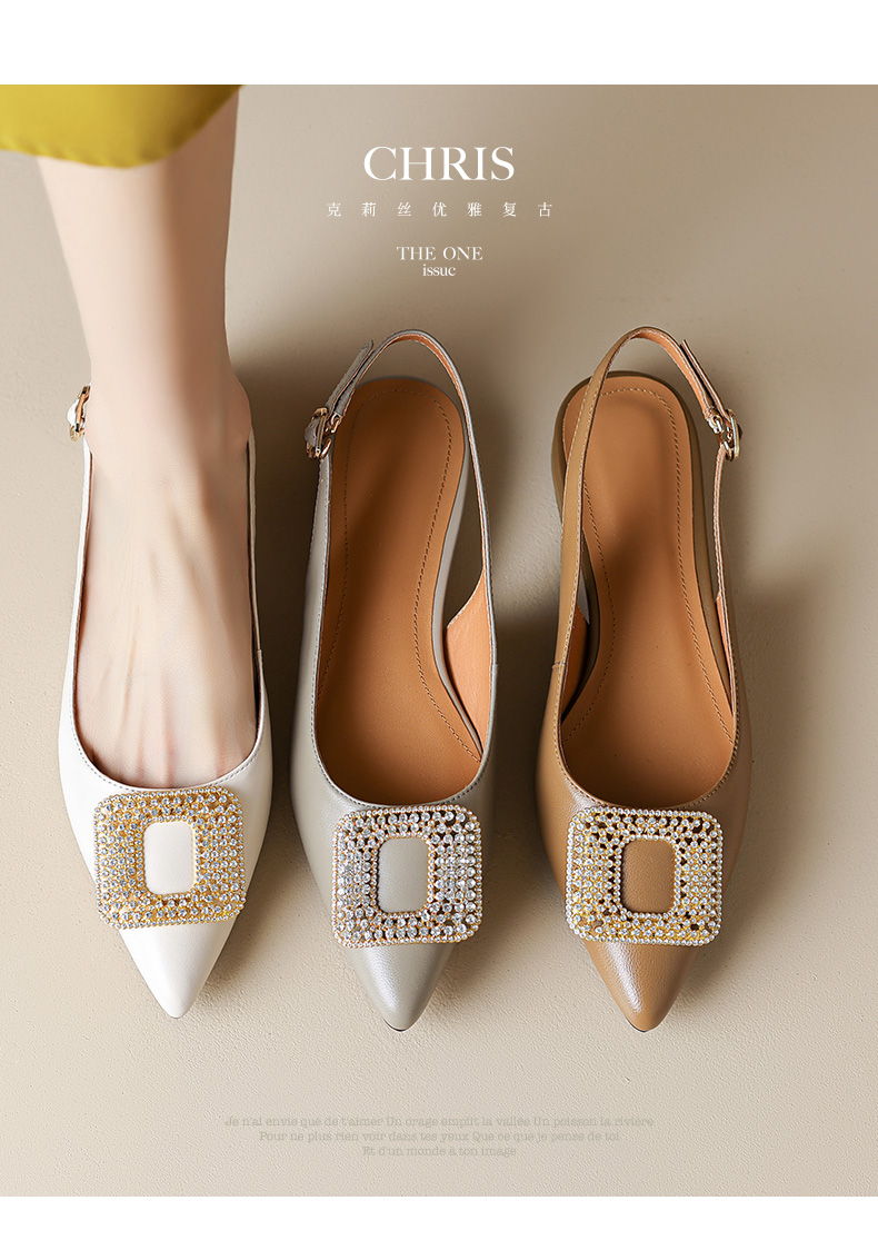 优雅法式,混种羊皮尖头金属装饰后空凉鞋YCJX-HL-1382