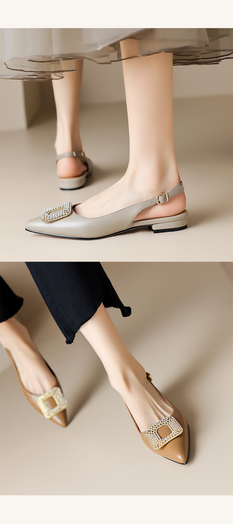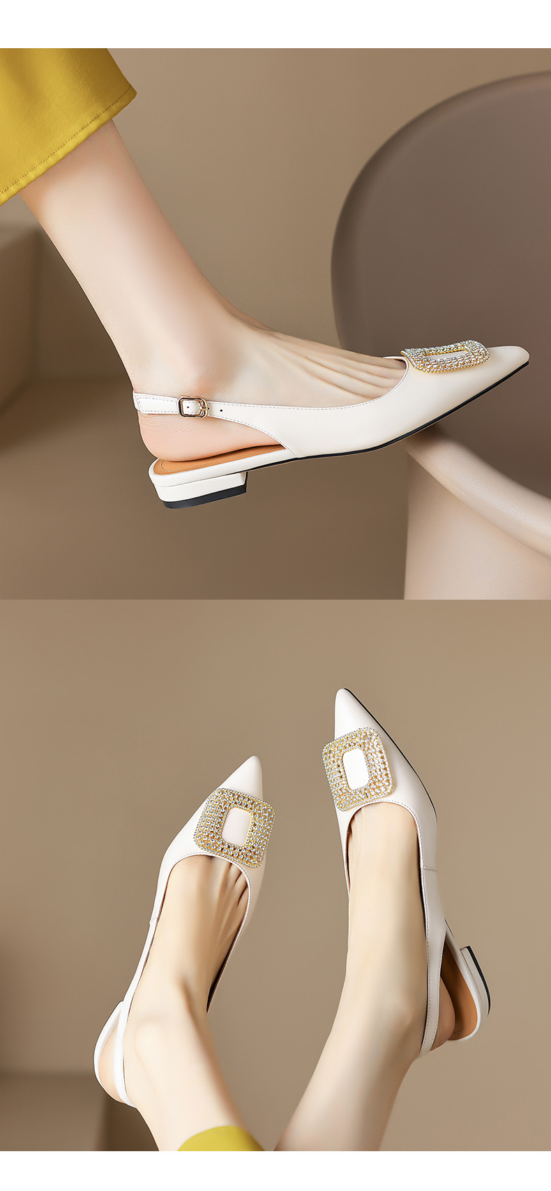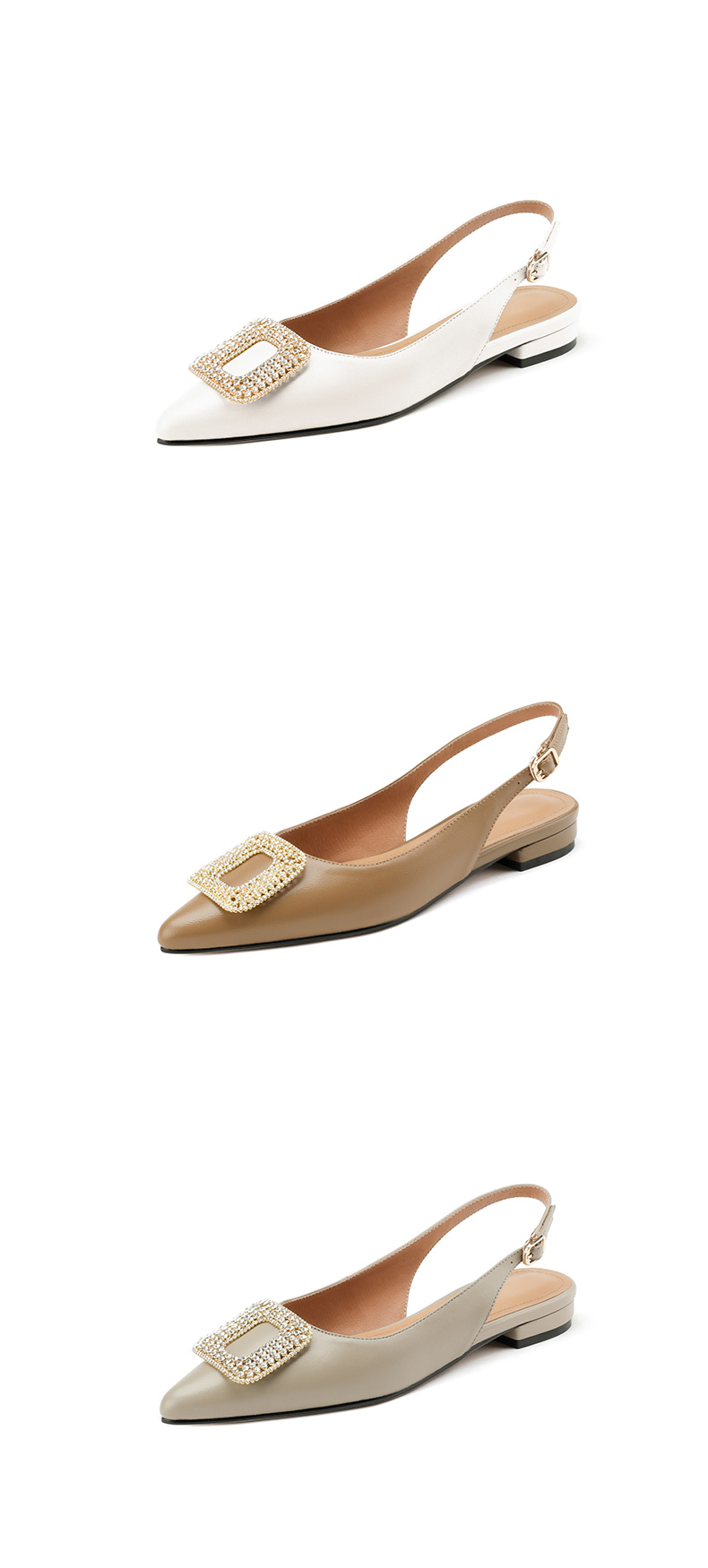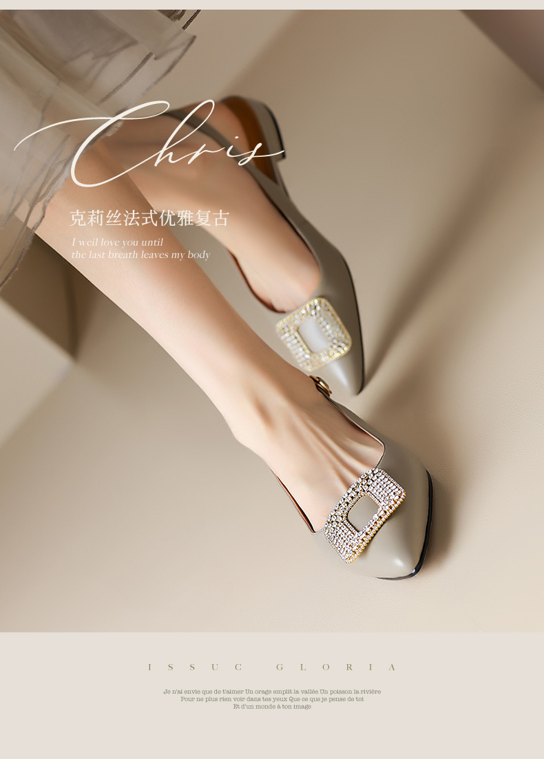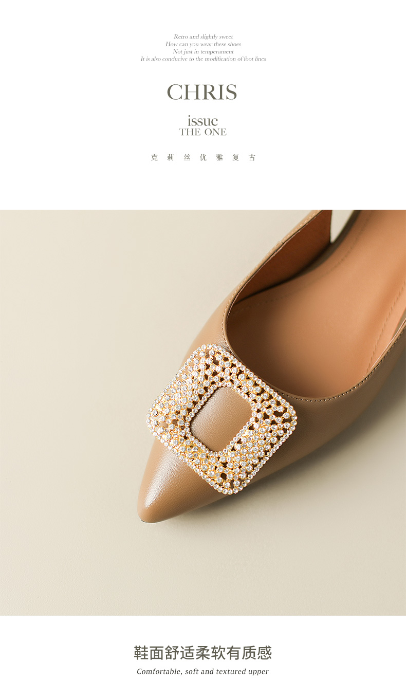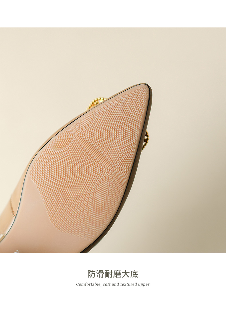 优雅法式,混种羊皮尖头金属装饰后空凉鞋YCJX-HL-1382