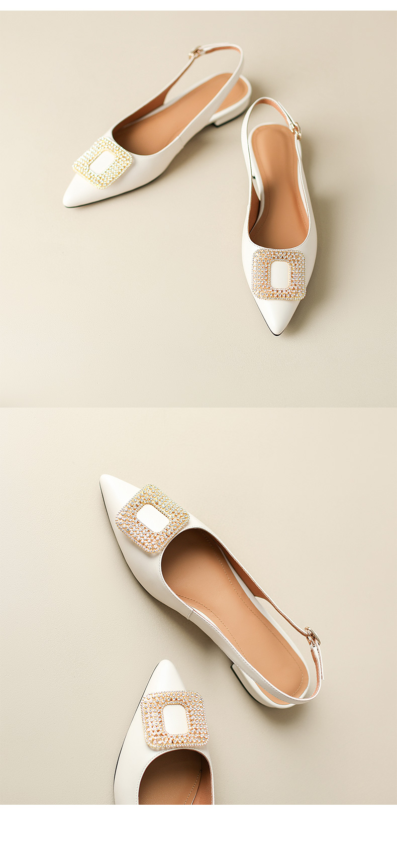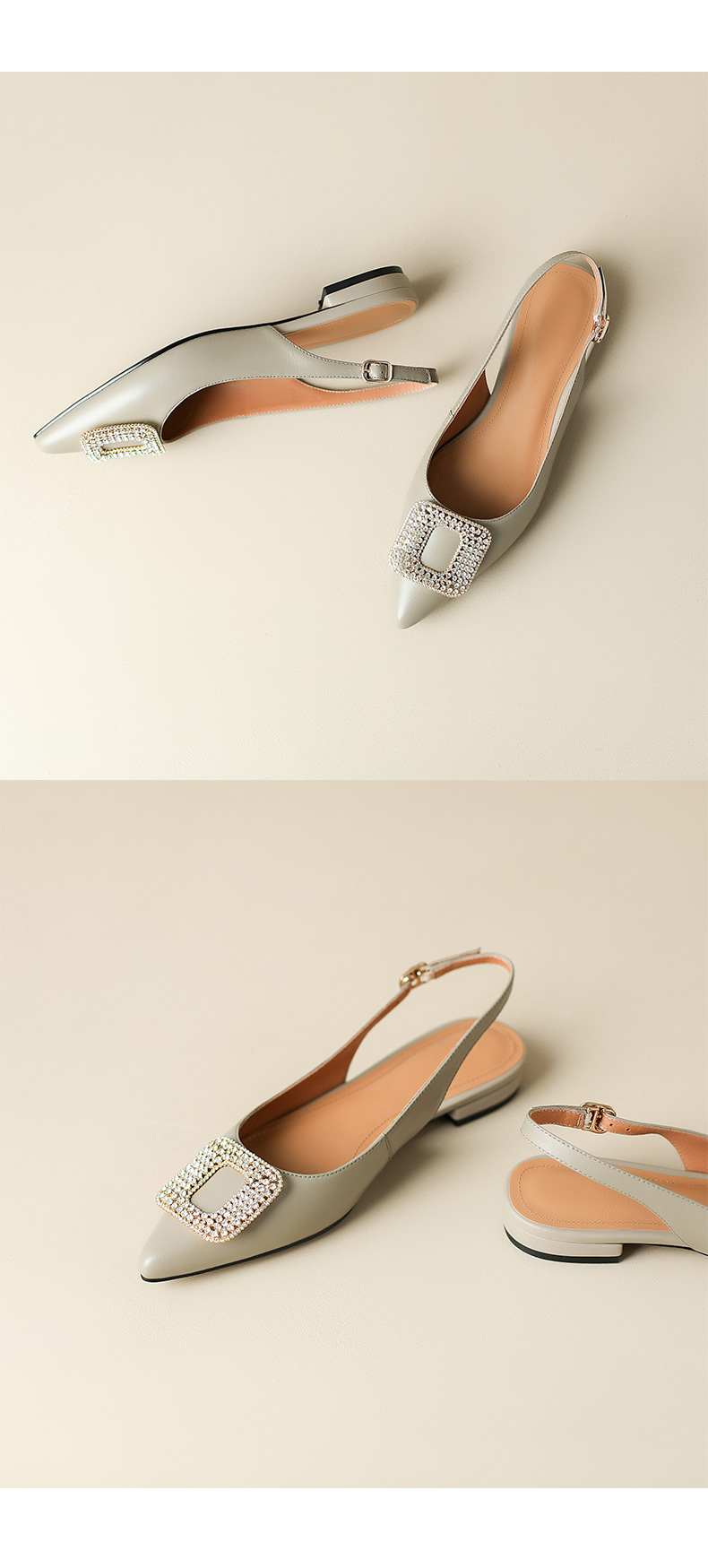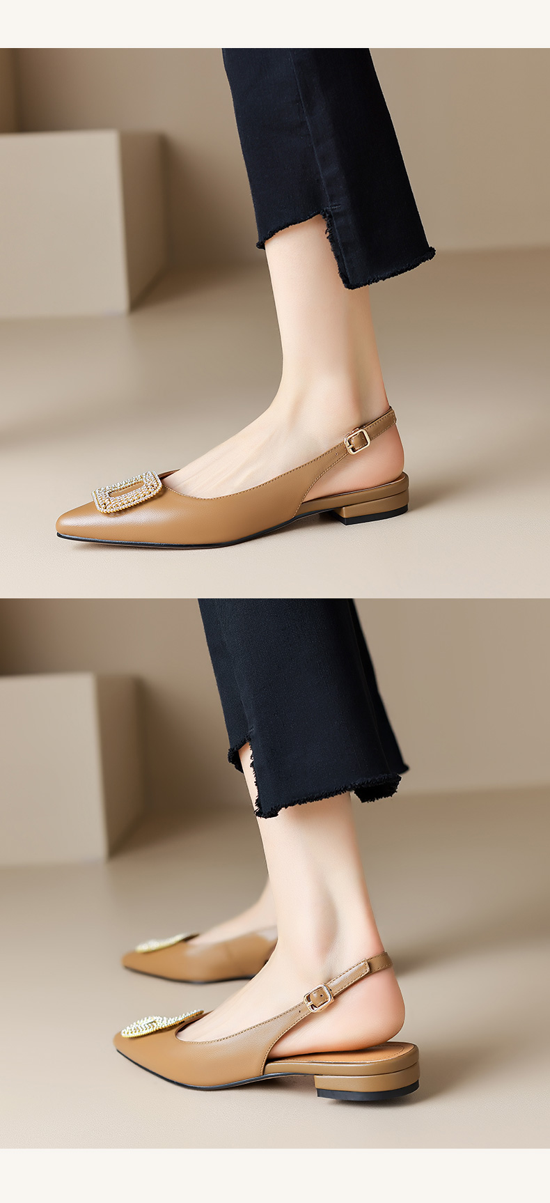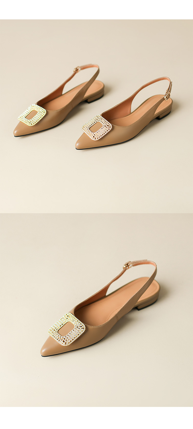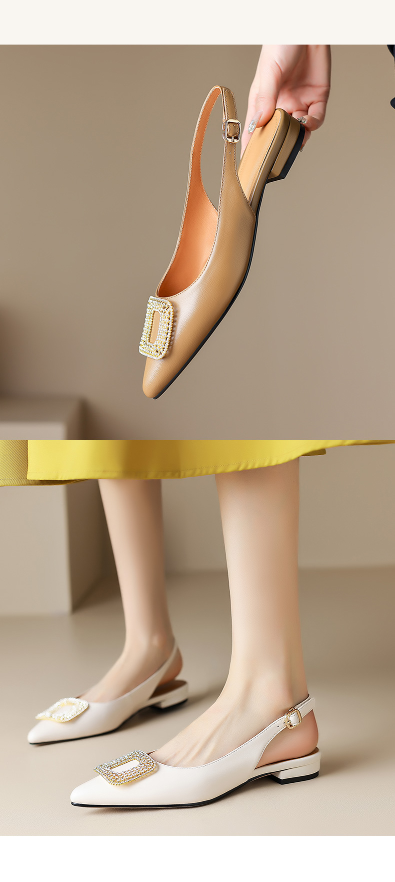 优雅法式,混种羊皮尖头金属装饰后空凉鞋YCJX-HL-1382