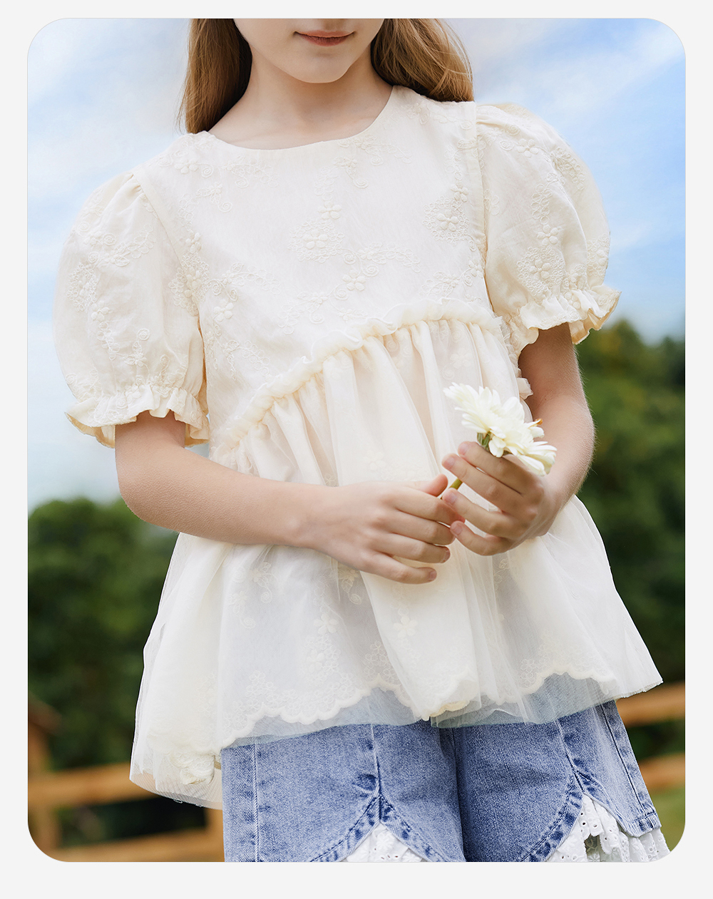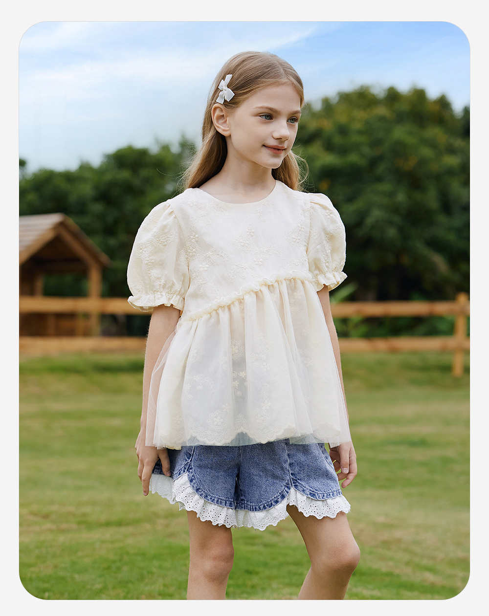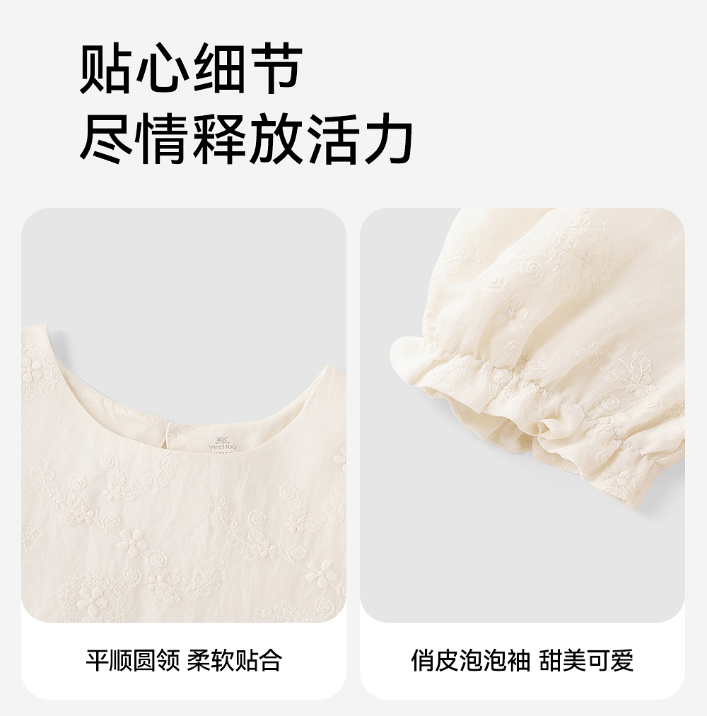 英氏儿童衬衫夏季透气可爱女童短袖上衣泡泡袖衬衫裙2025新款上衣