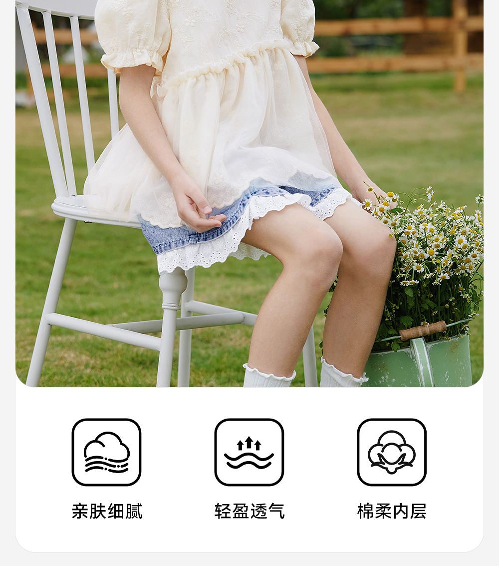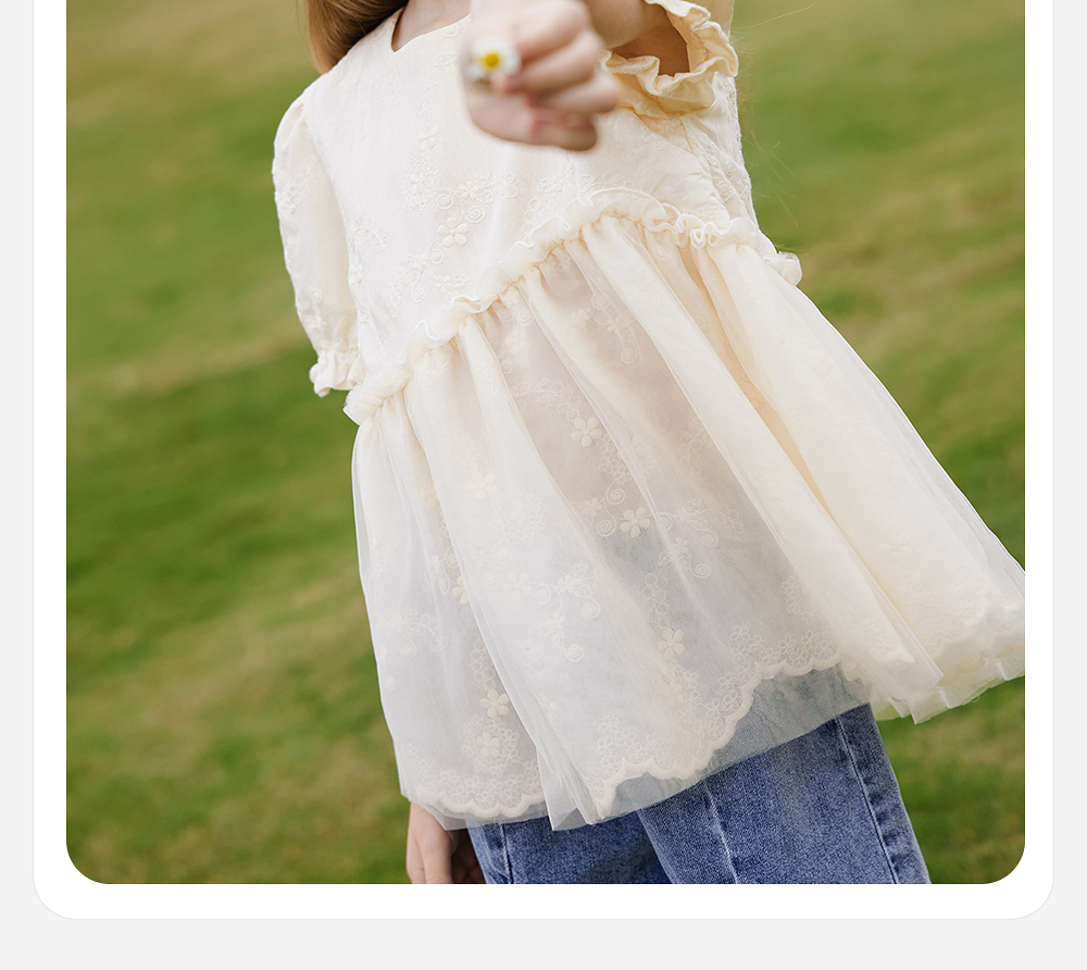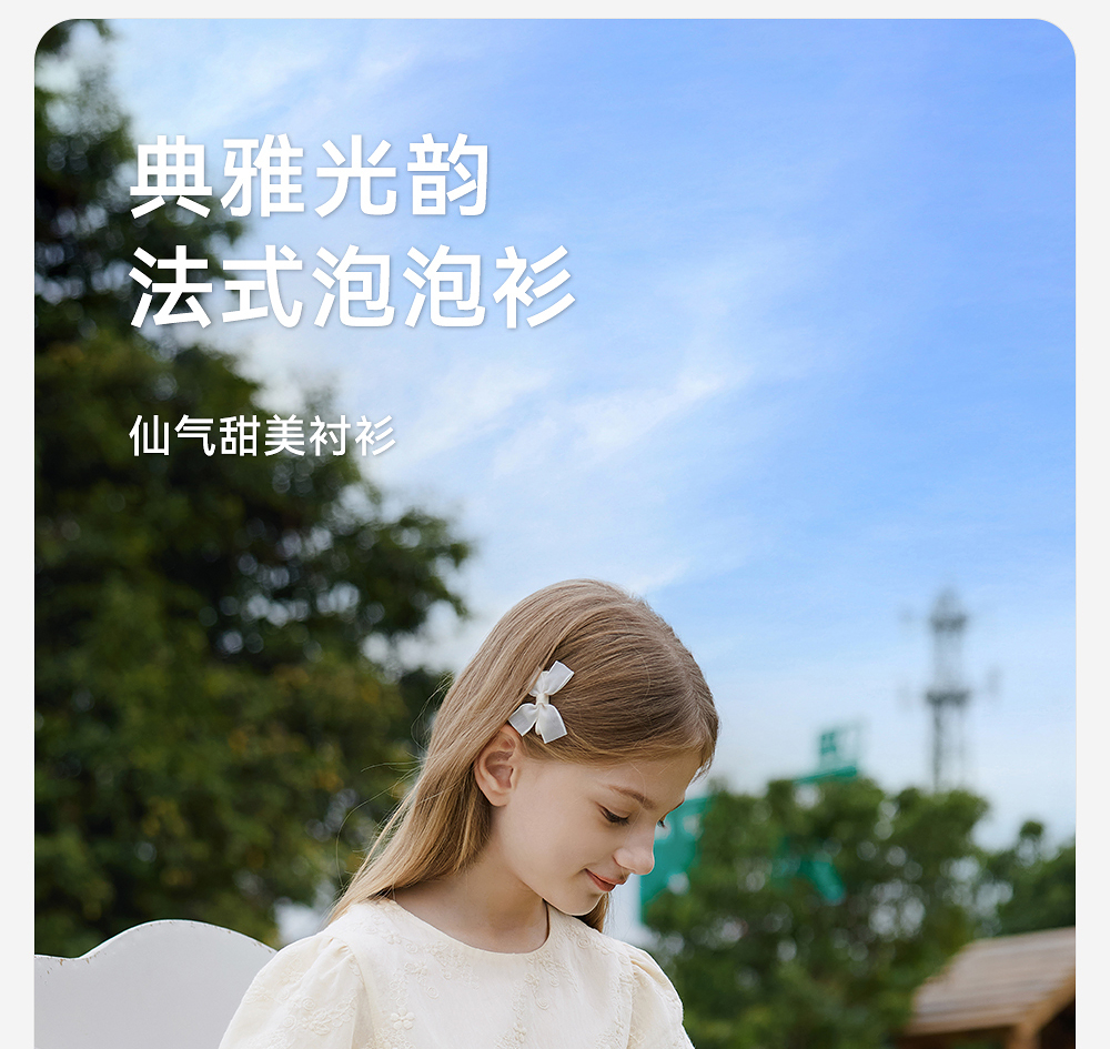 英氏儿童衬衫夏季透气可爱女童短袖上衣泡泡袖衬衫裙2025新款上衣