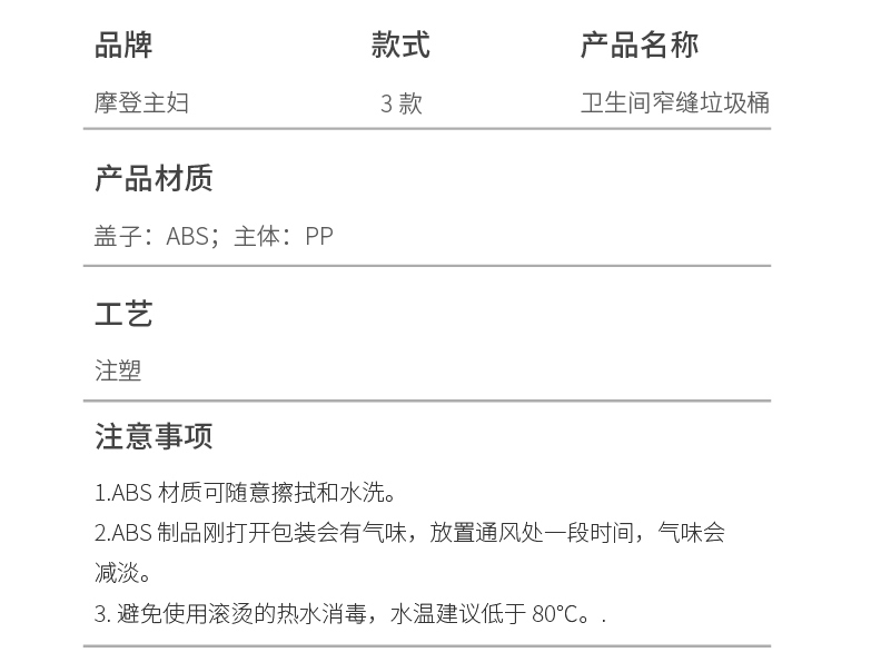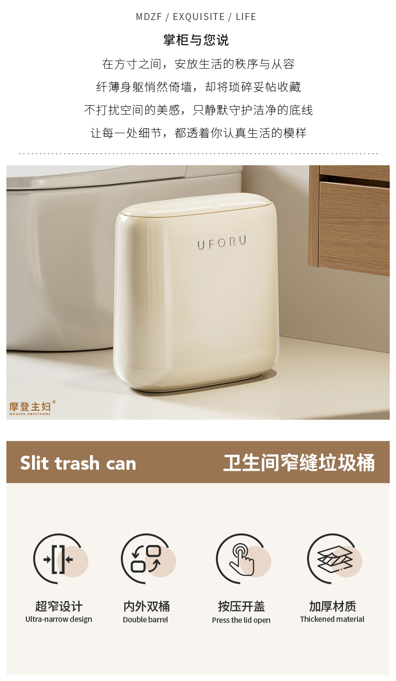 摩登主妇卫生间垃圾桶专用大容量高颜值按压开盖客厅厕所窄缝纸篓