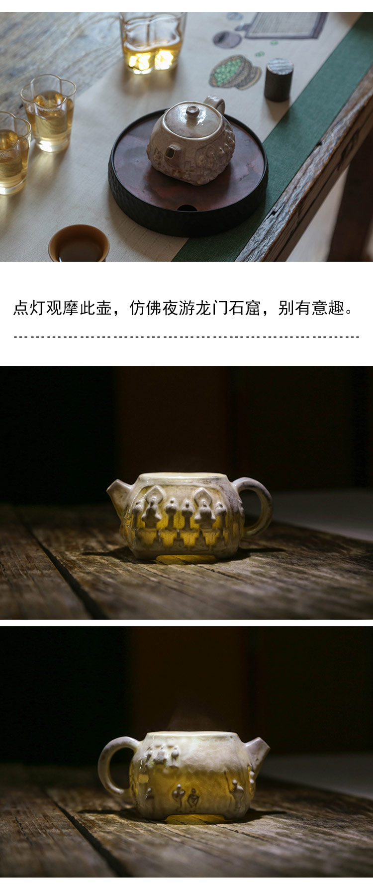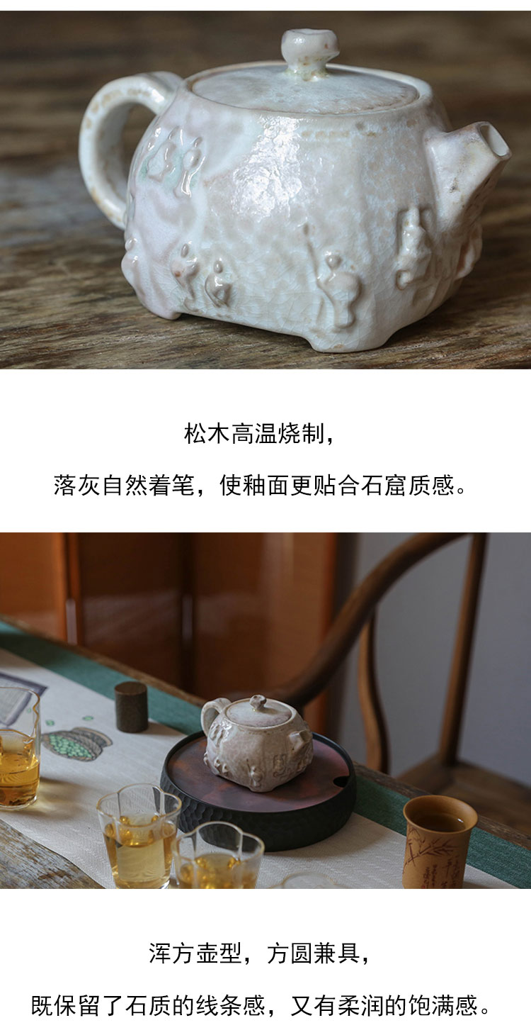 茶香记 李现锋柴烧浑方石窟壶100ml自然落灰斑驳厚重泡茶壶茶具