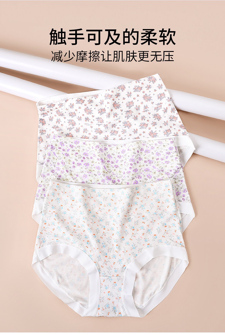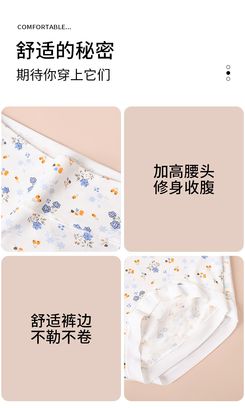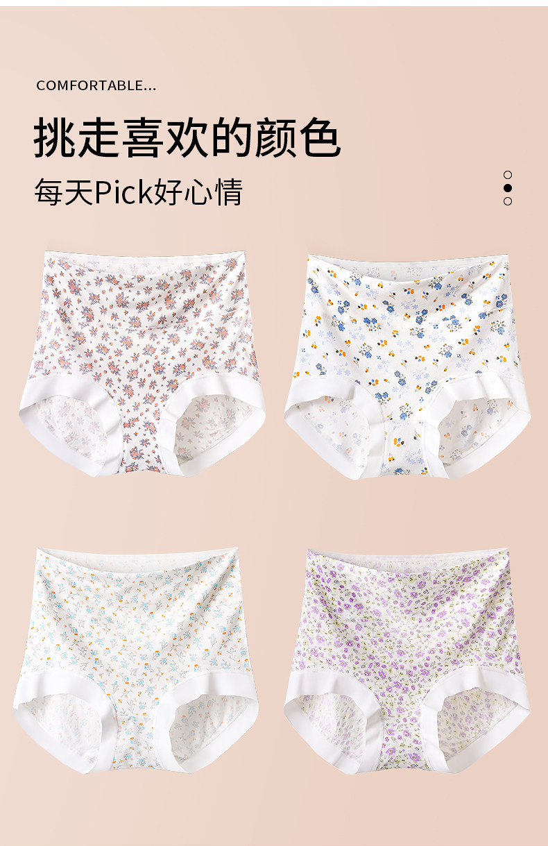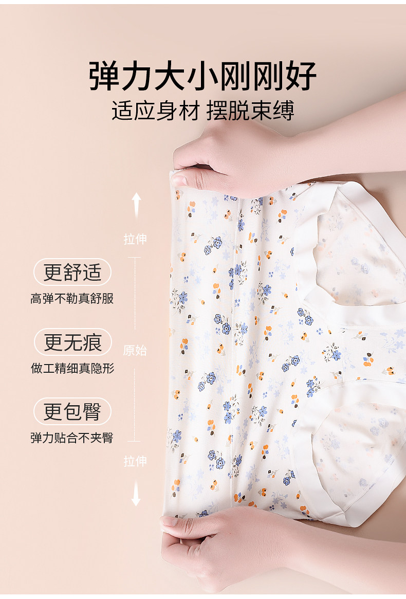 4条装莫代尔高腰女士内裤女大码收腹提臀抗菌新款印花碎花三角裤