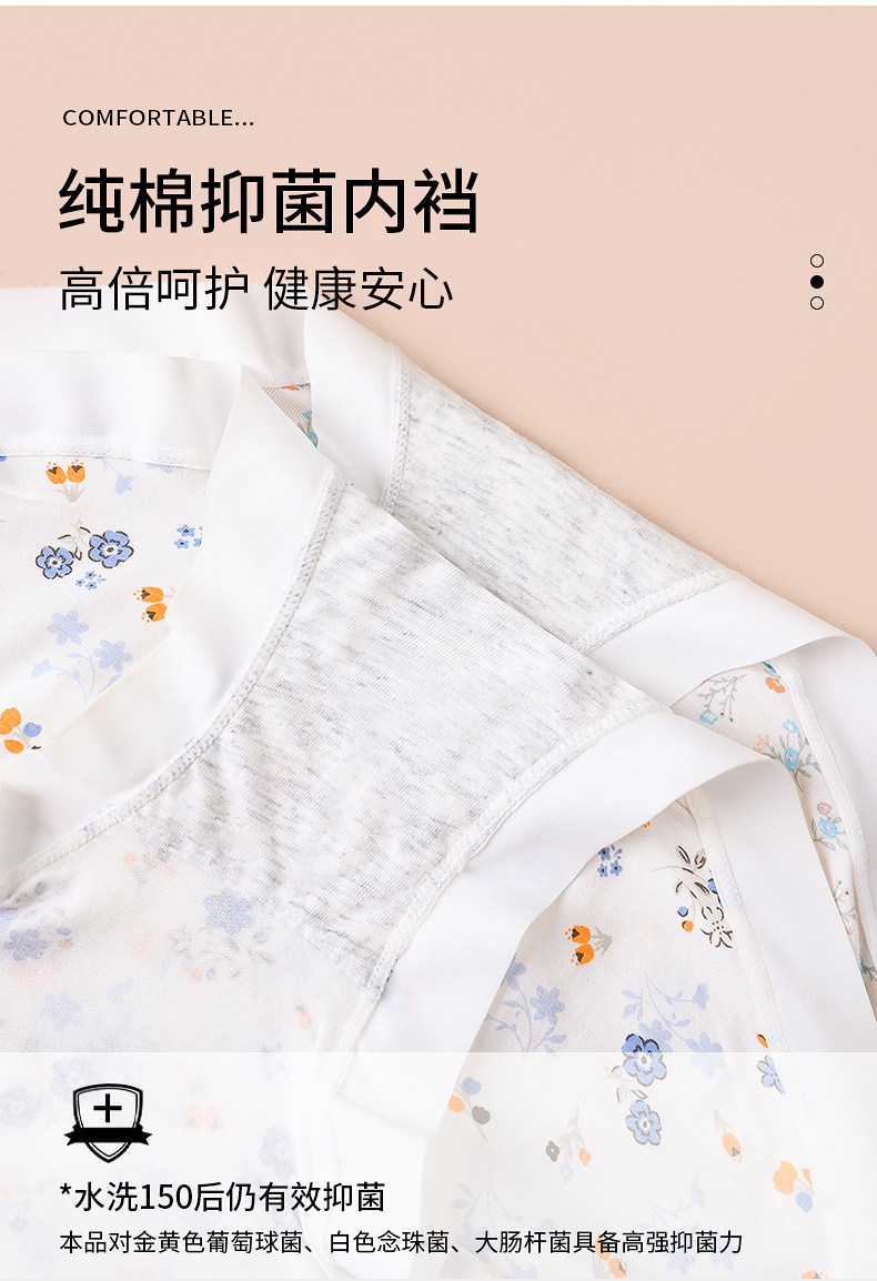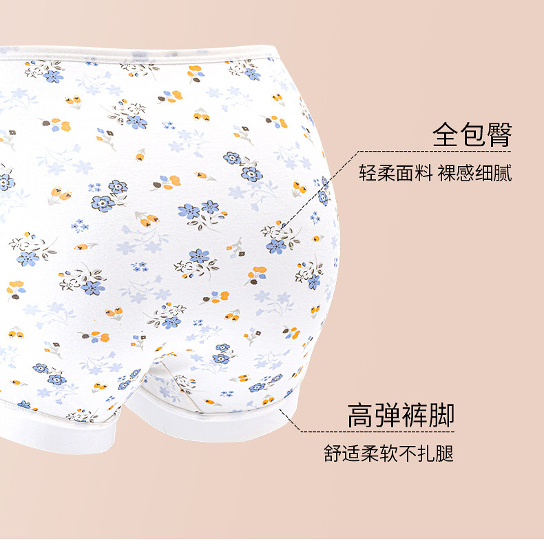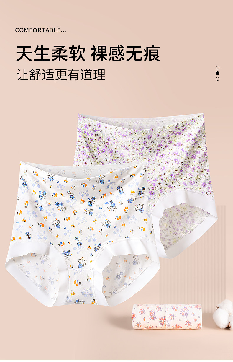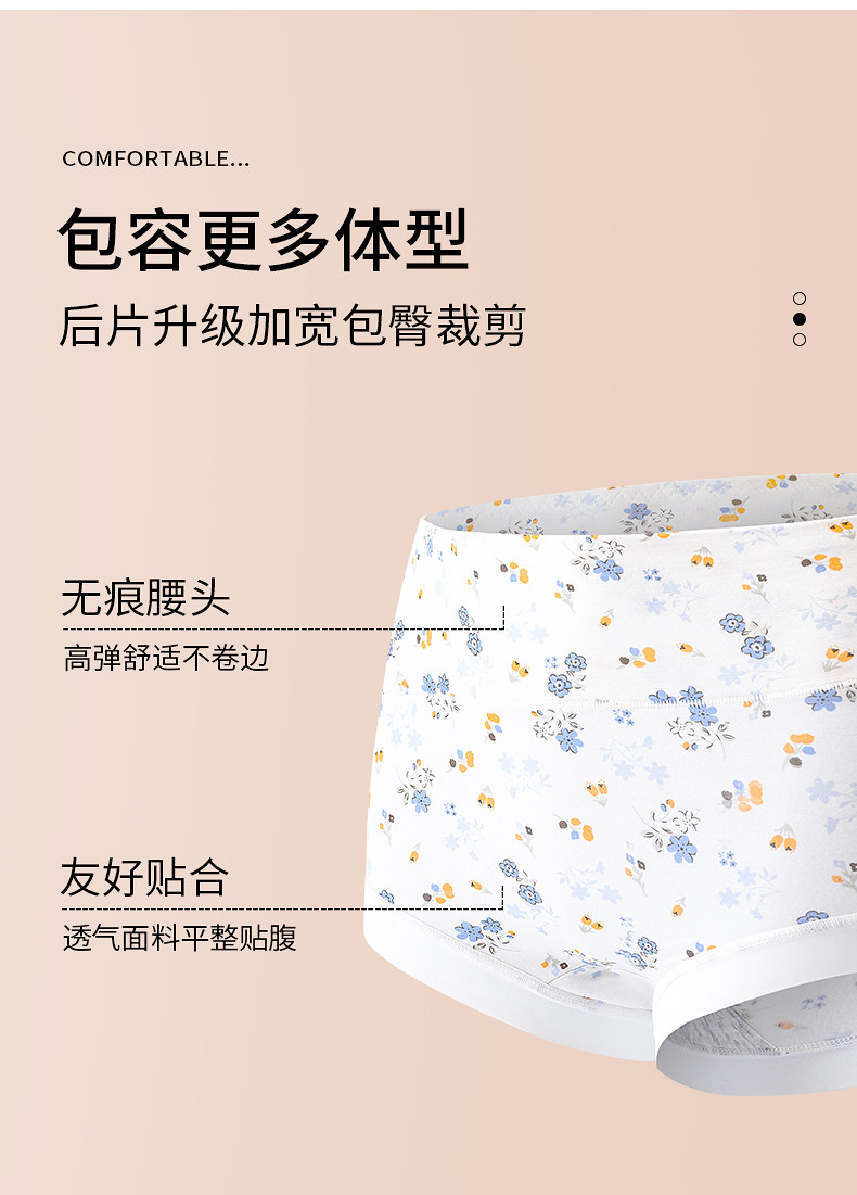 4条装莫代尔高腰女士内裤女大码收腹提臀抗菌新款印花碎花三角裤