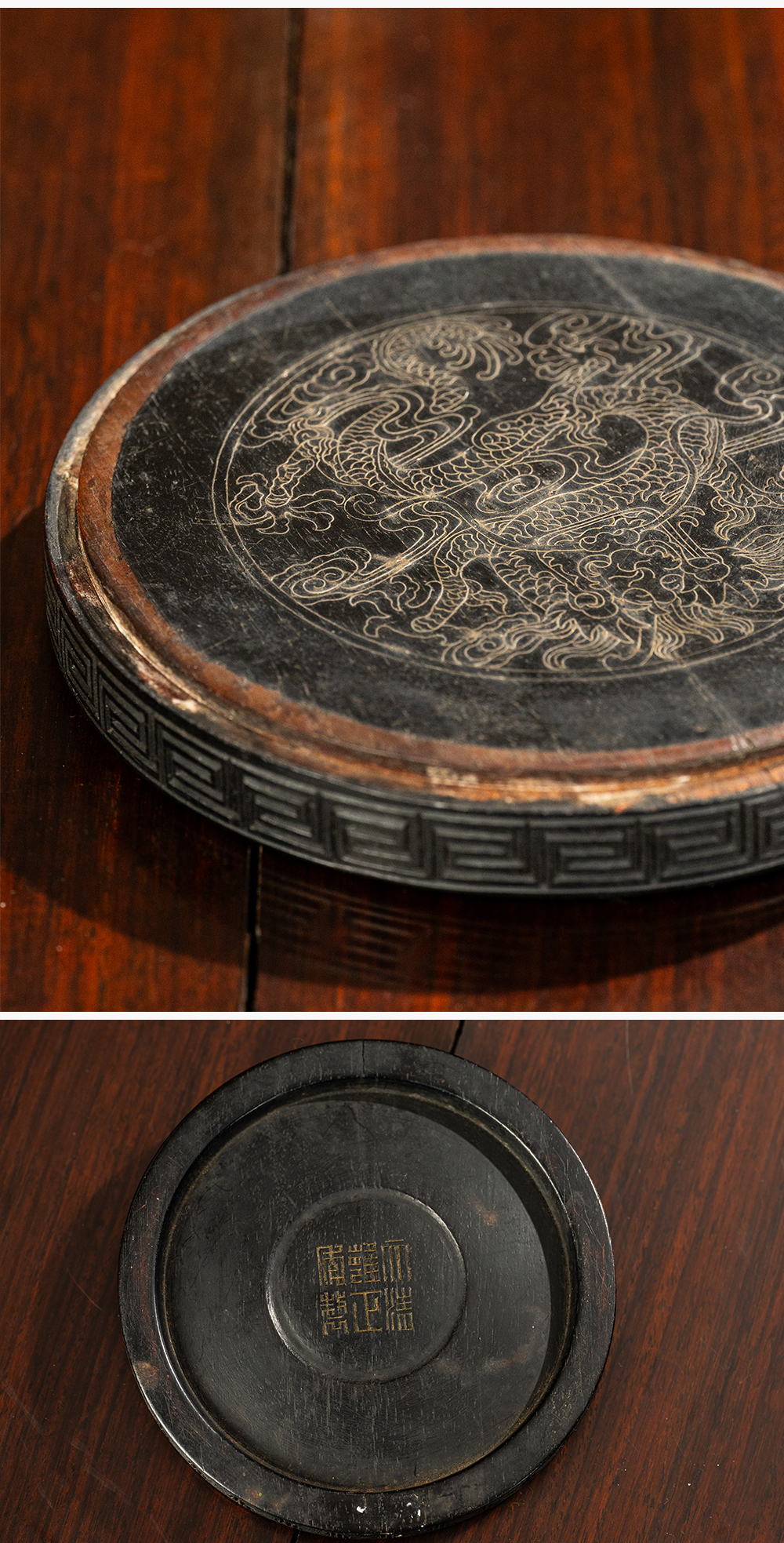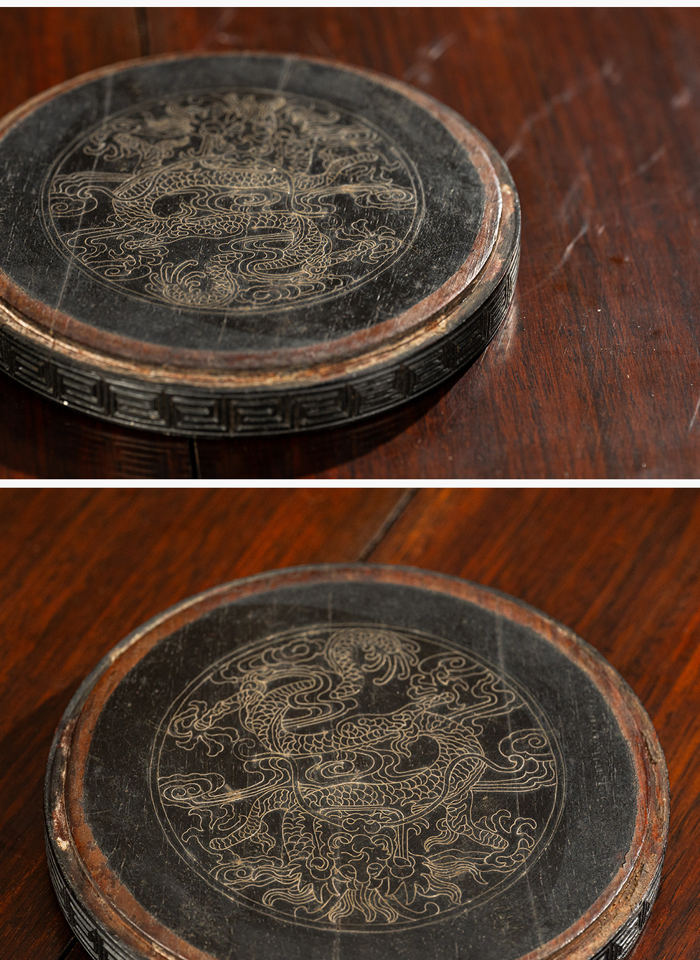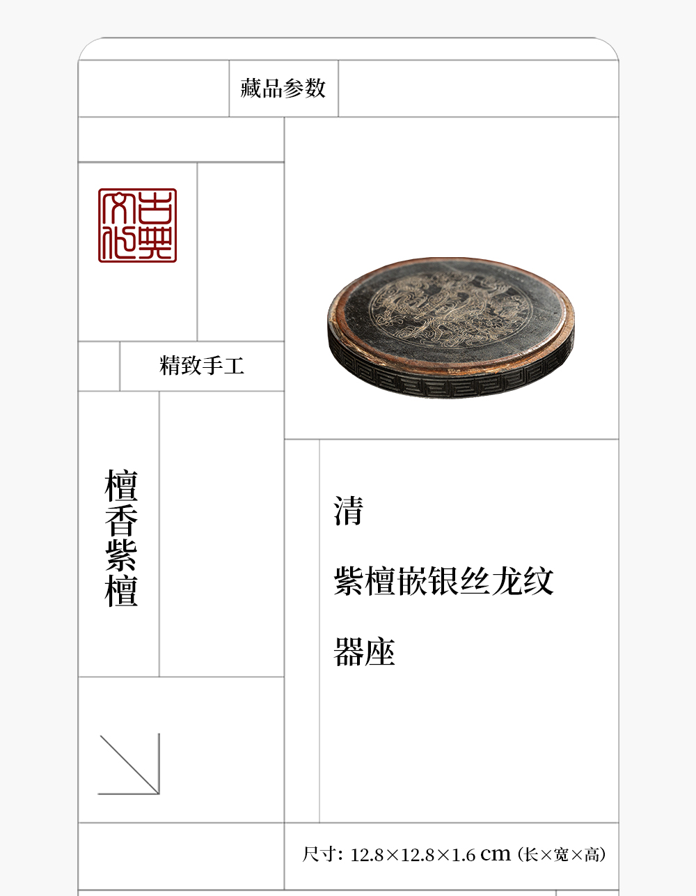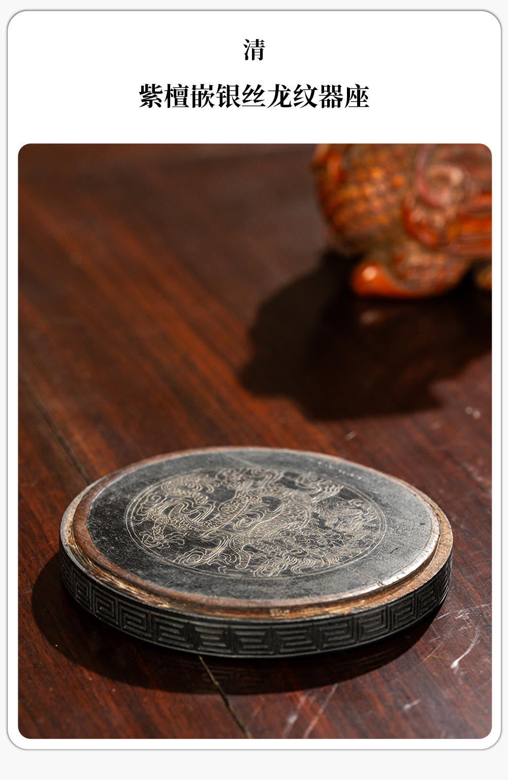 清 紫檀嵌银丝龙纹器座