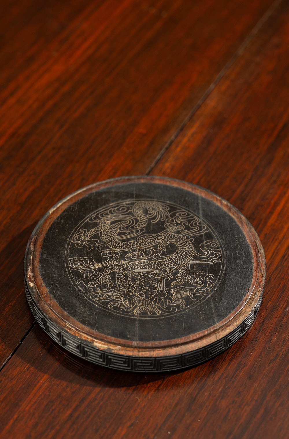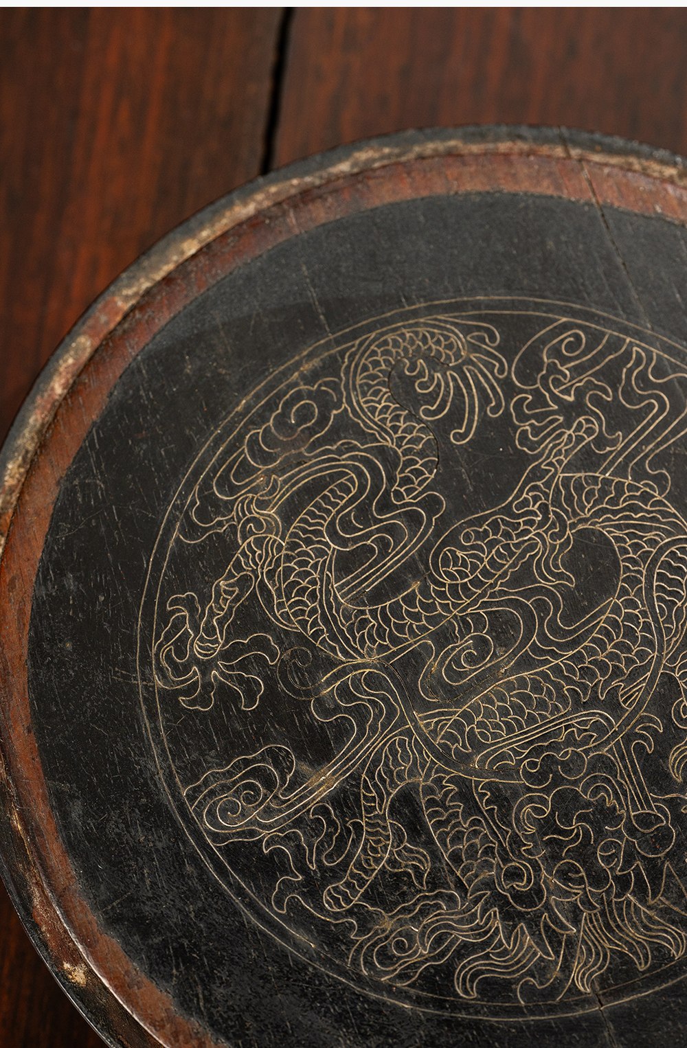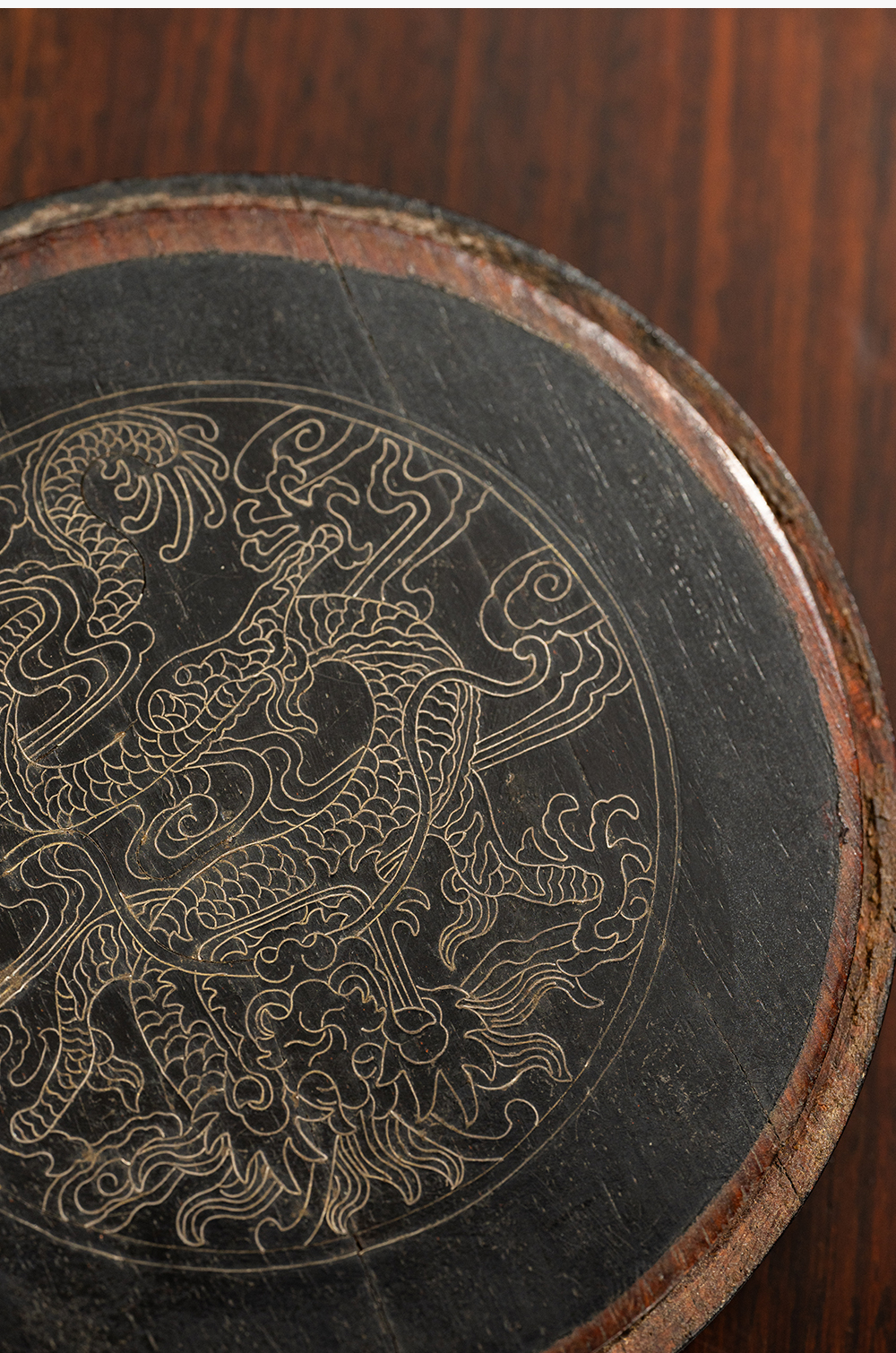 清 紫檀嵌银丝龙纹器座