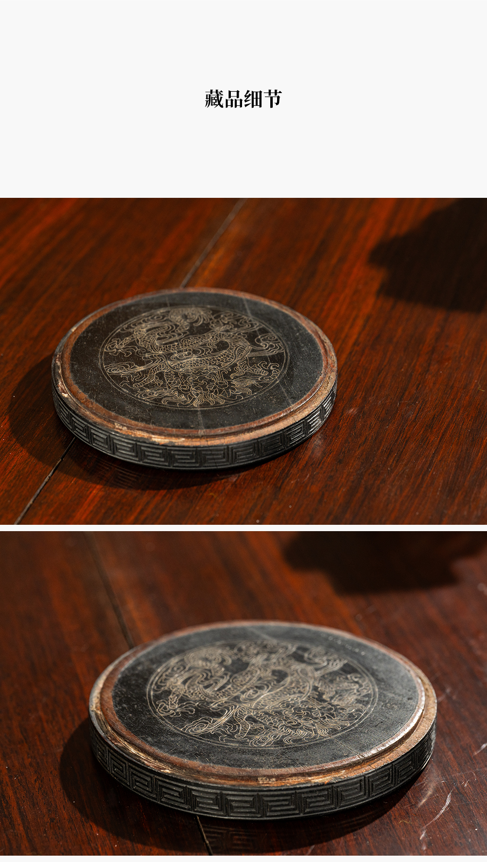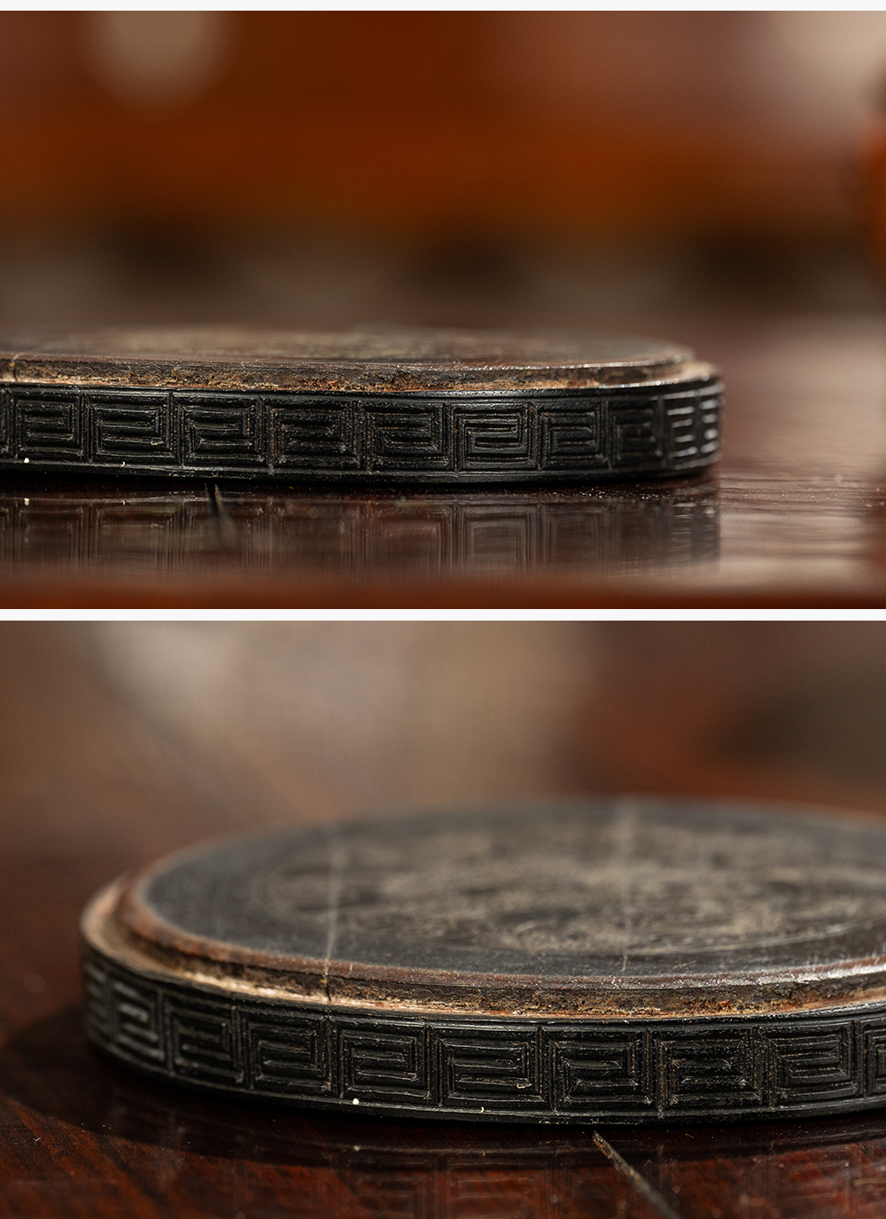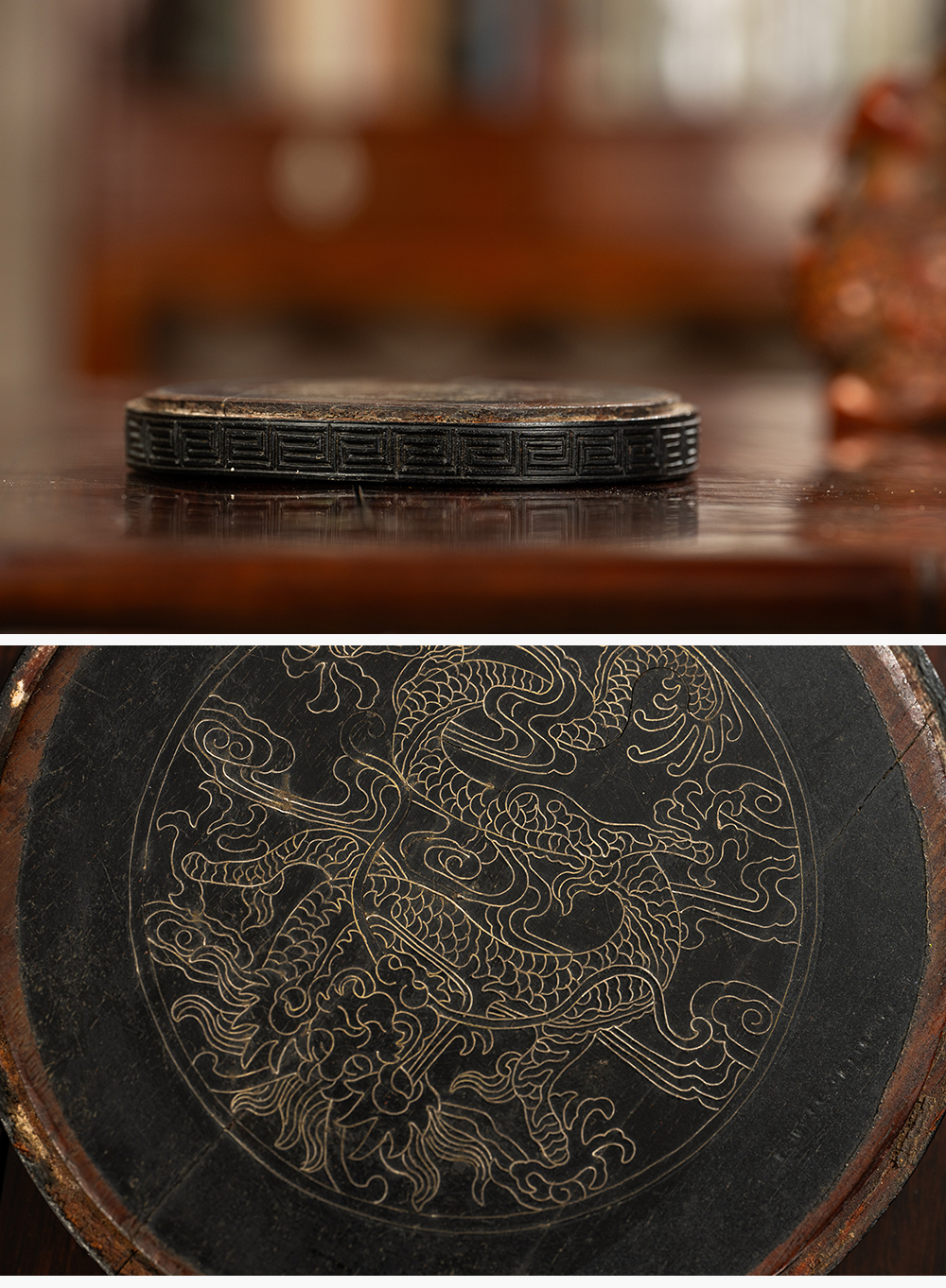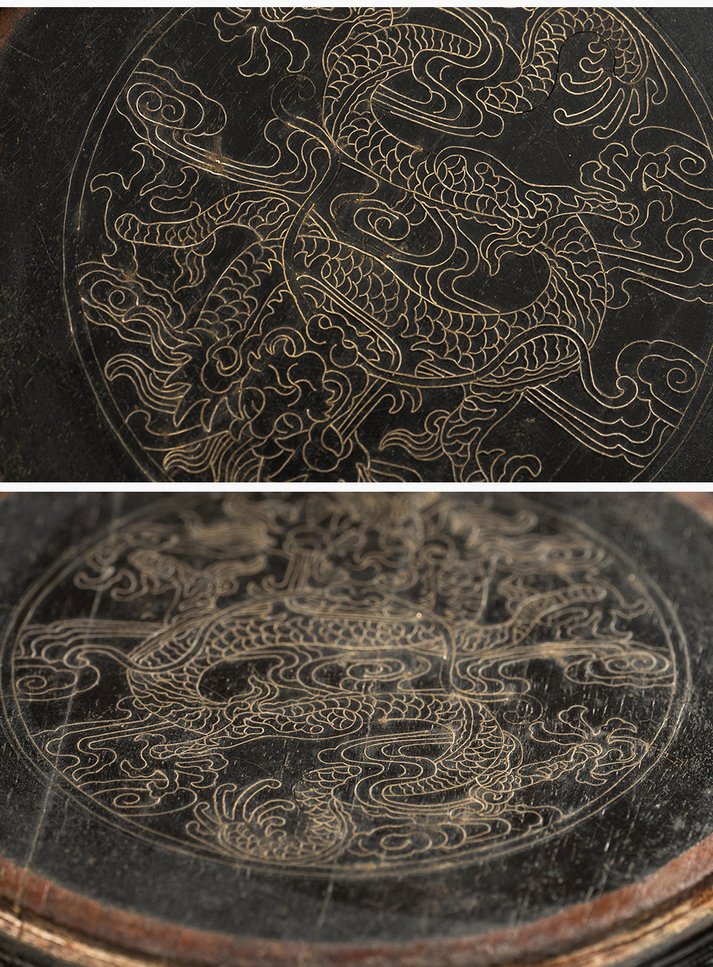 清 紫檀嵌银丝龙纹器座