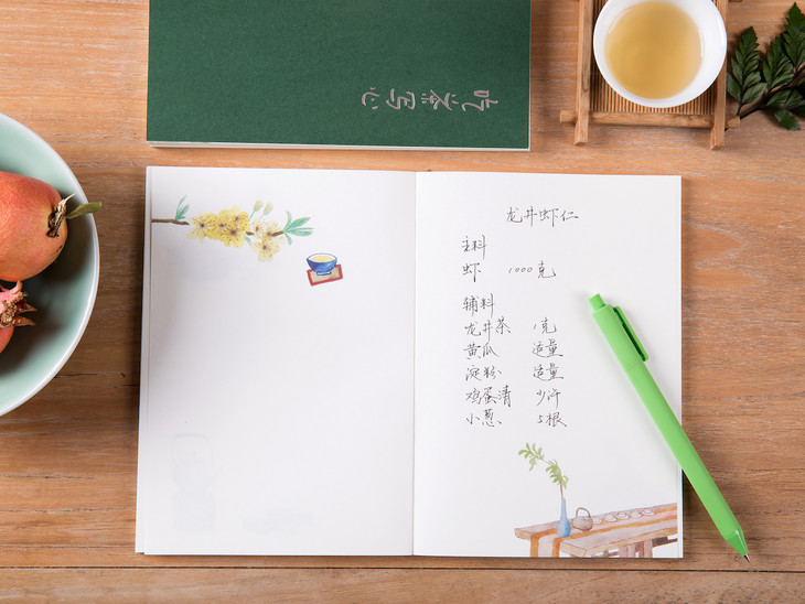 茶元素笔记本大小适中,可180°平摊,无论写到哪一页,都能有沉浸式的书写体验。