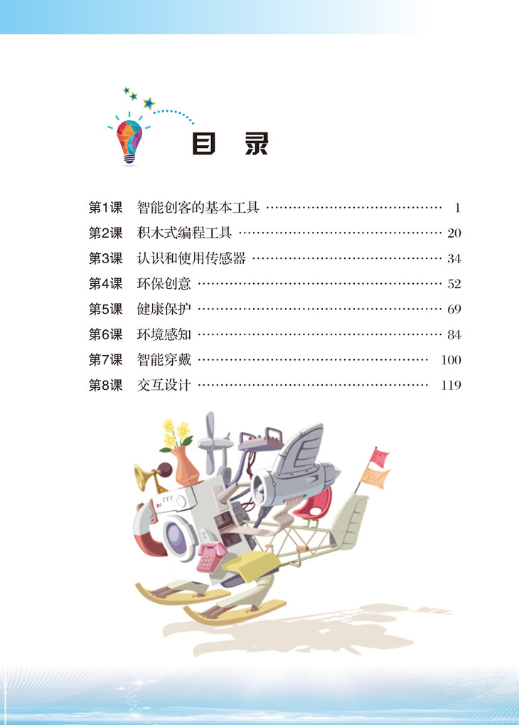 《创客作品设计与制作》以Arduino编程与硬件使用为核心,让学生更深入地学习程序设计原理与传感器的使用,学会联系生活实际需求,利用身边的材料设计并制作创客作品,引导学生成为小创客,体会创客教育的乐趣。