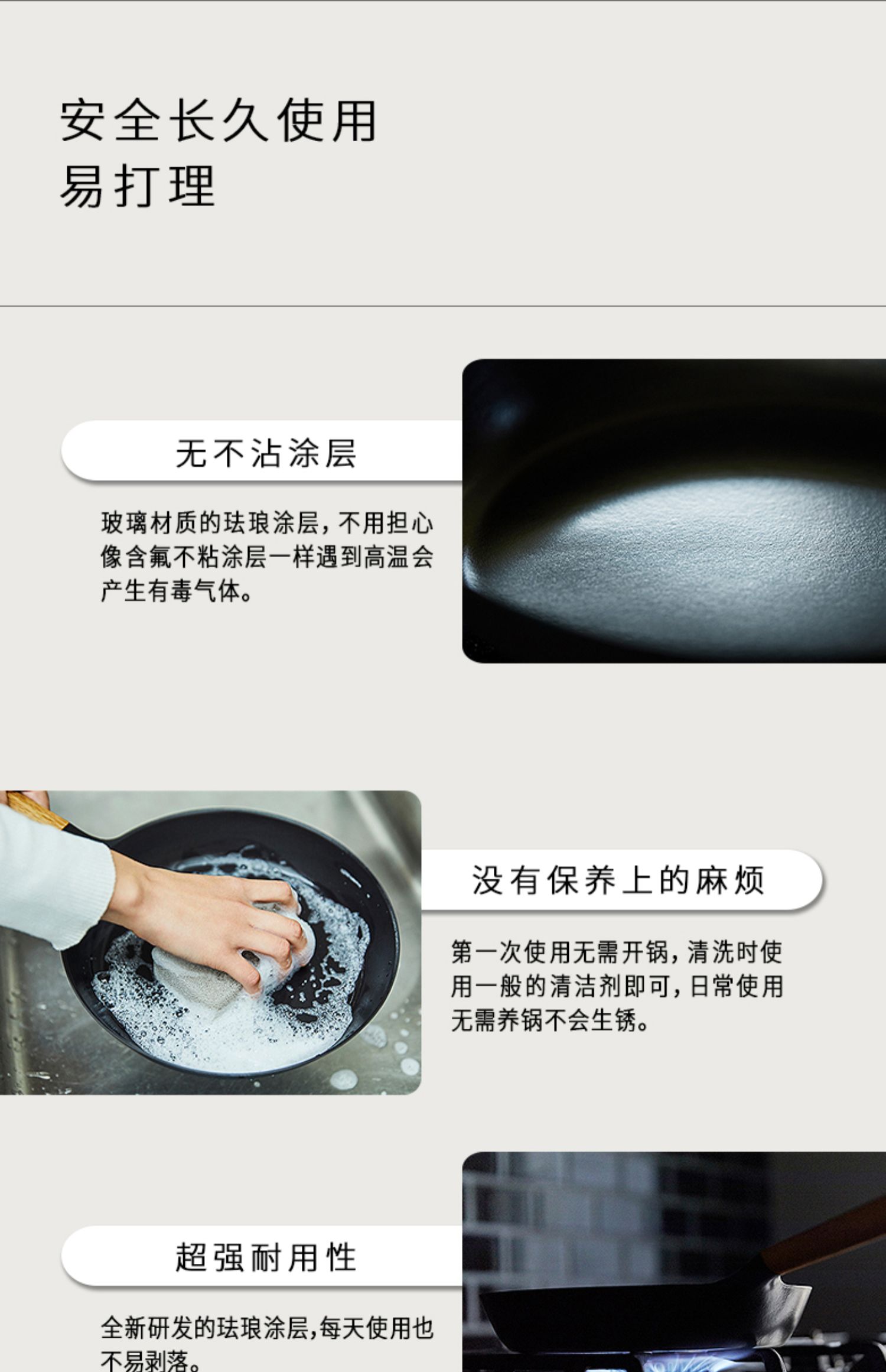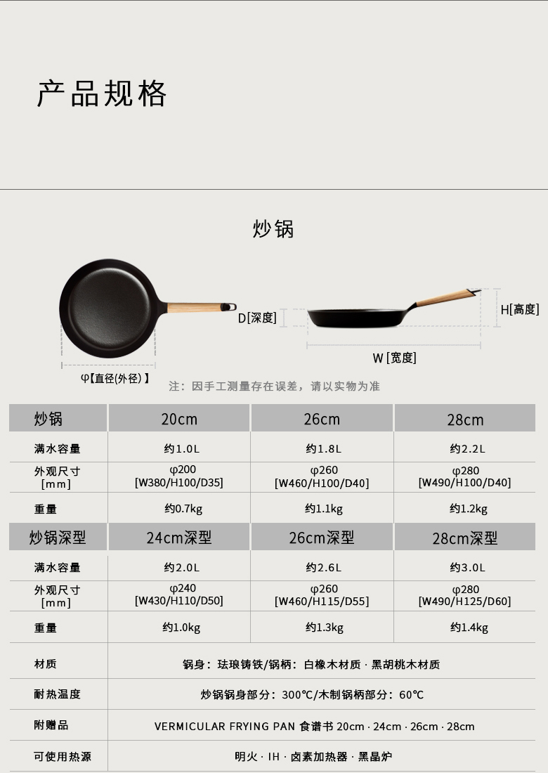 唯米乐 铸铁平底锅进口 导热快超轻无涂层易打理 珐琅铸铁煎锅