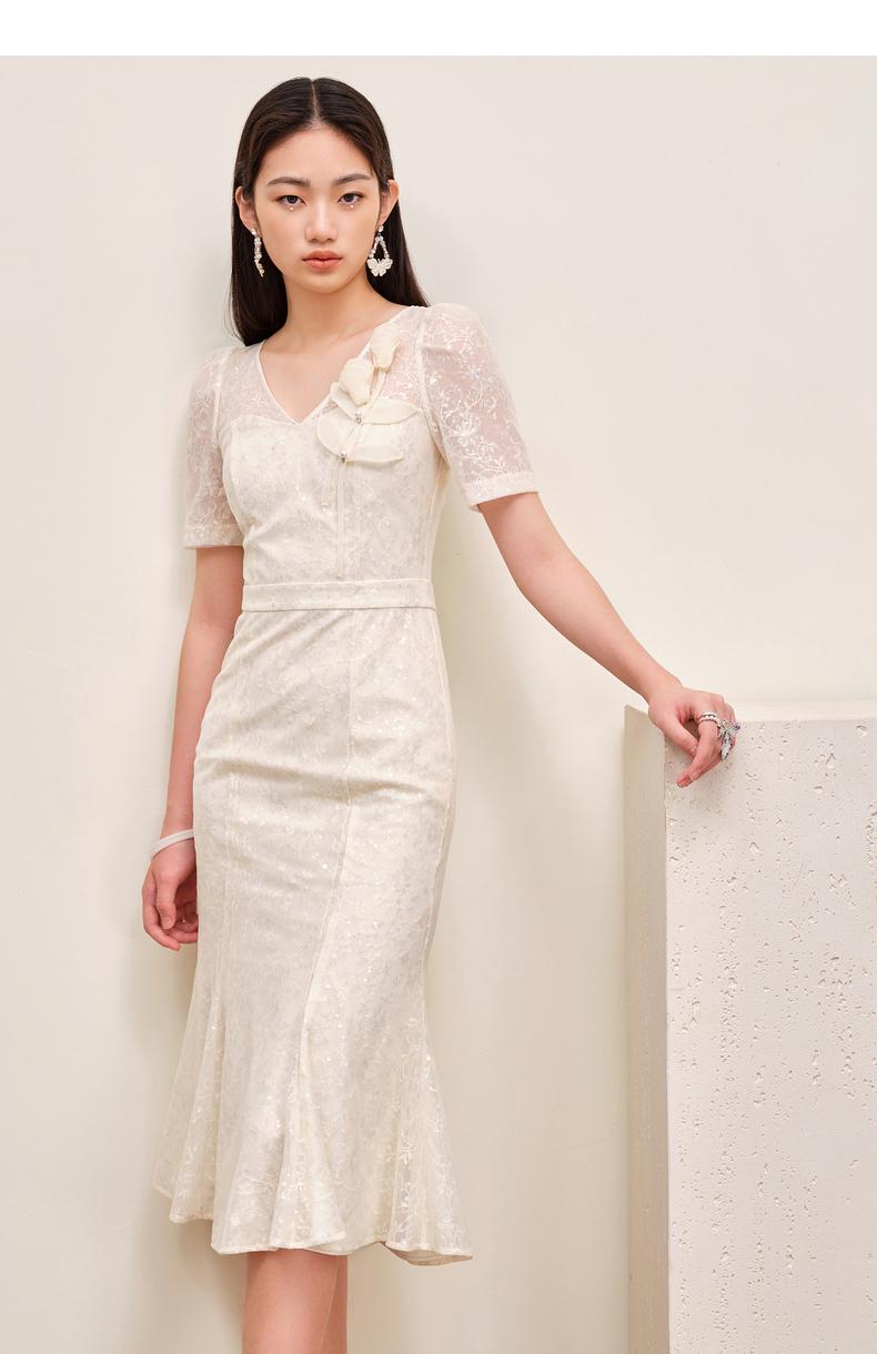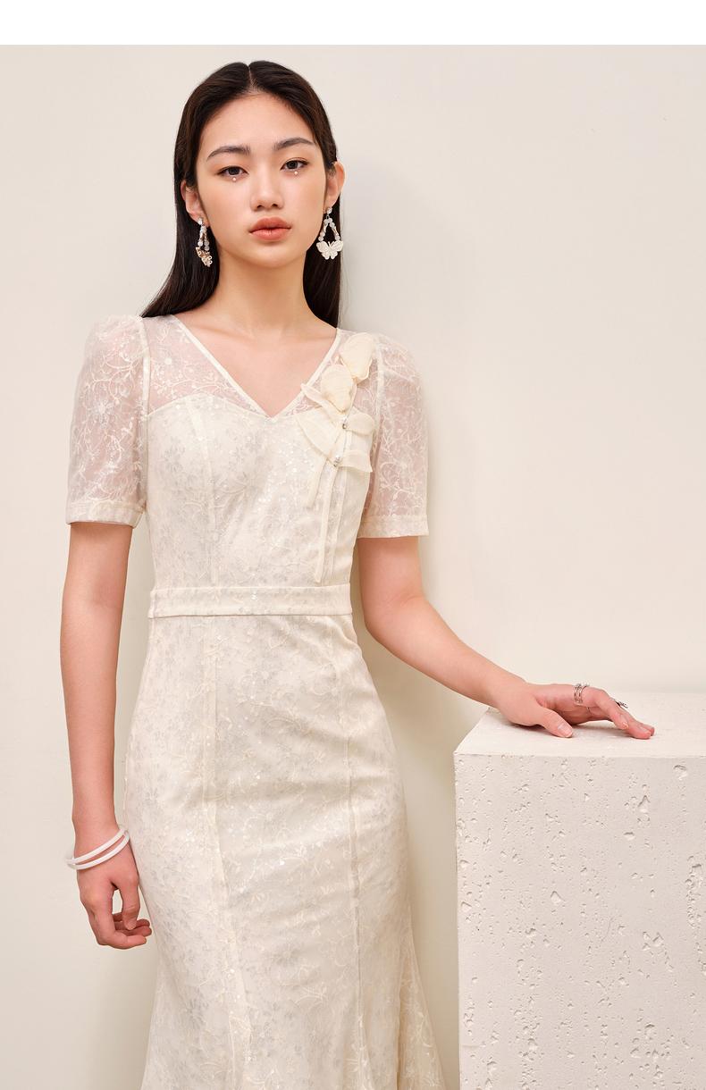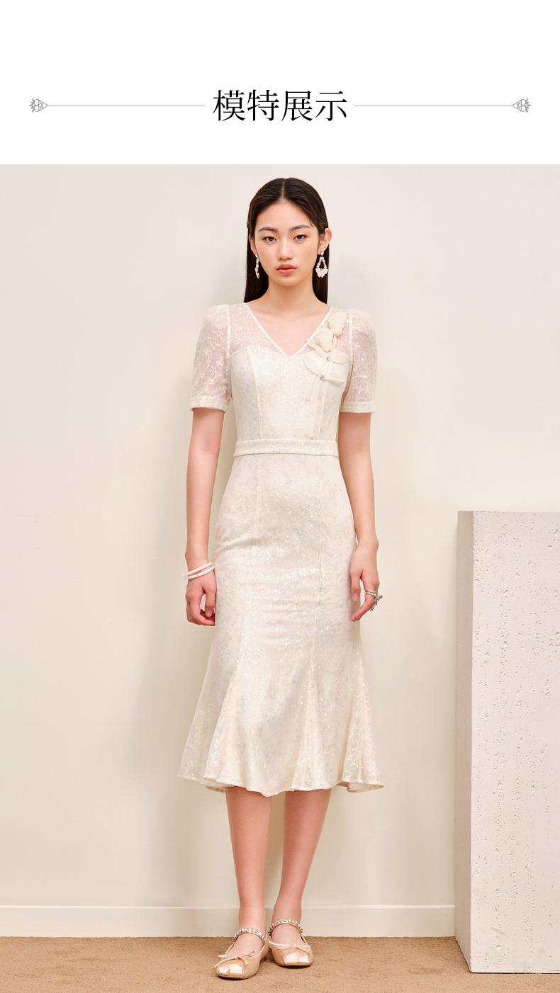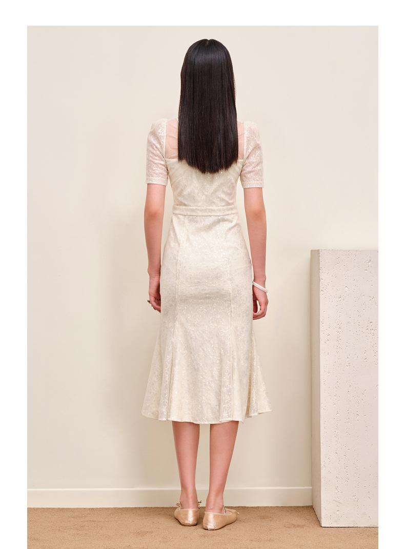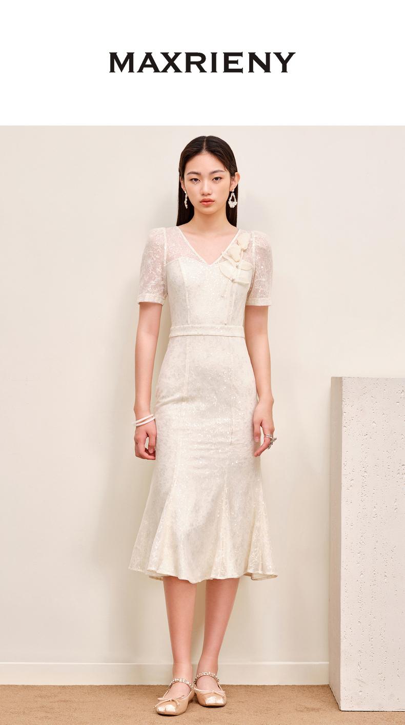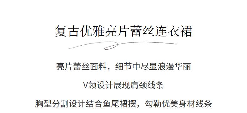 MAXRIENY复古优雅亮片蕾丝连衣裙法式宫廷蕾丝鱼尾裙领证(货号:MS88DR547)