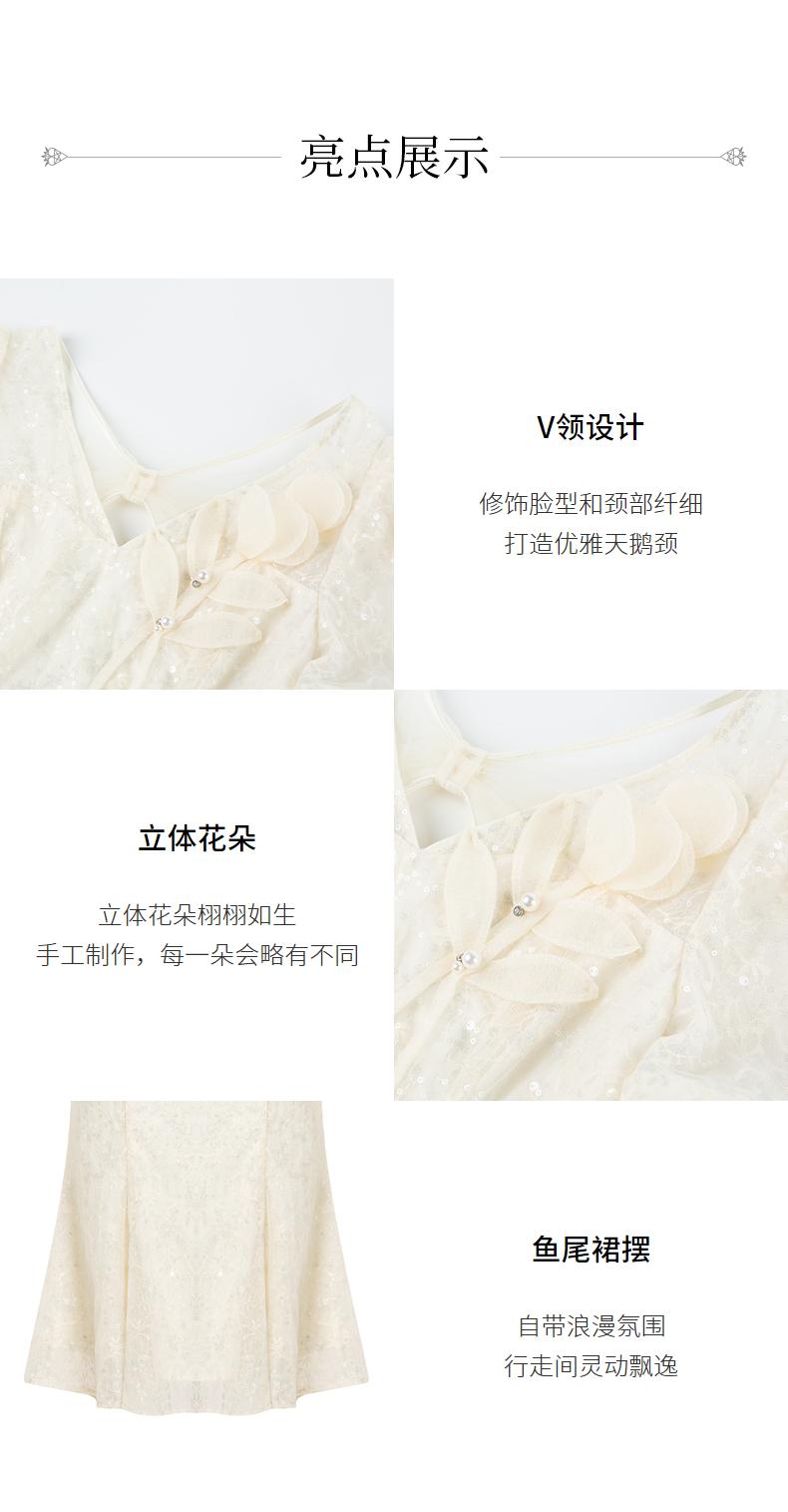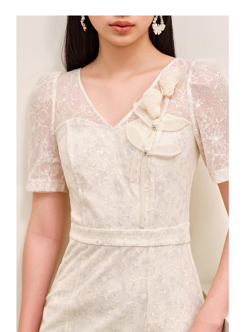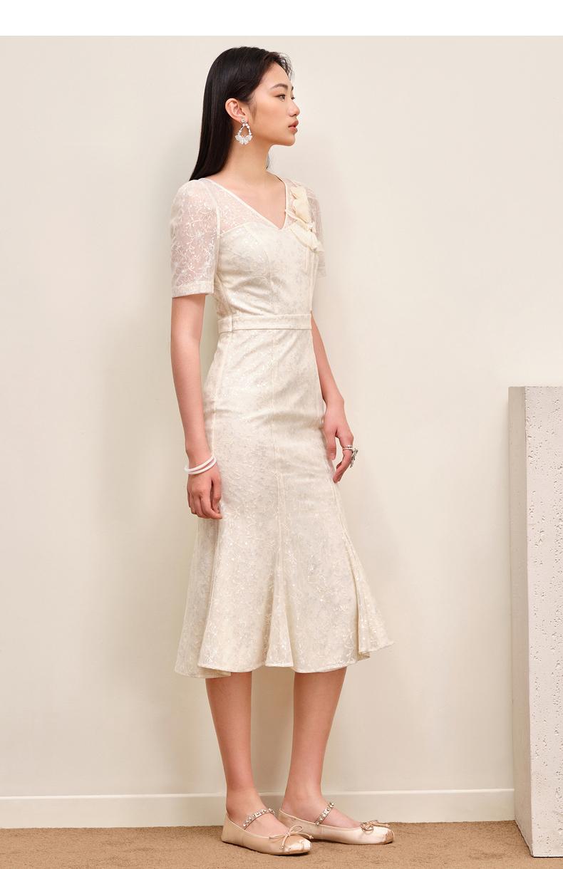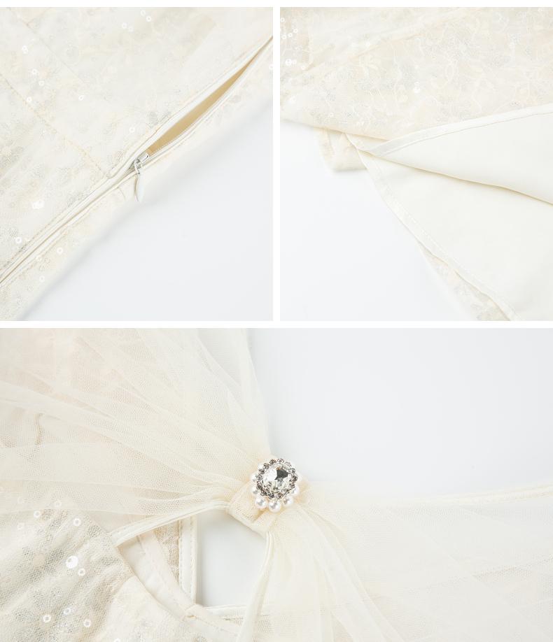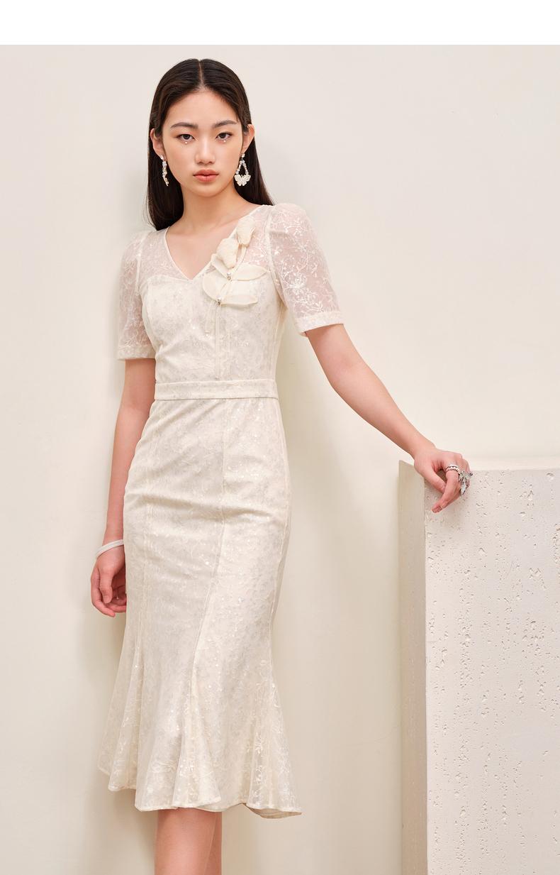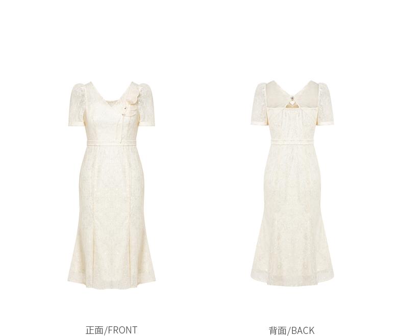 MAXRIENY复古优雅亮片蕾丝连衣裙法式宫廷蕾丝鱼尾裙领证(货号:MS88DR547)