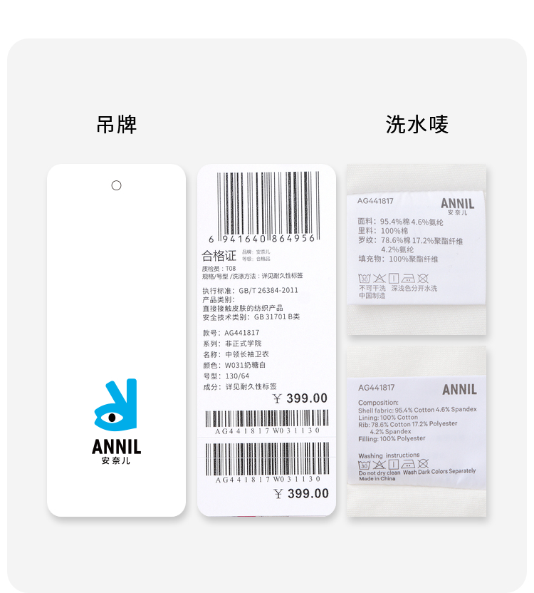 女童中领夹棉卫衣长袖冬季新款安奈儿童装实体店同款AG441817