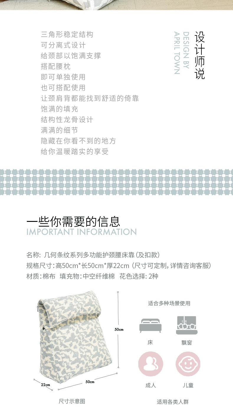几何及扣多功能三角腰靠沙发床头飘窗靠背