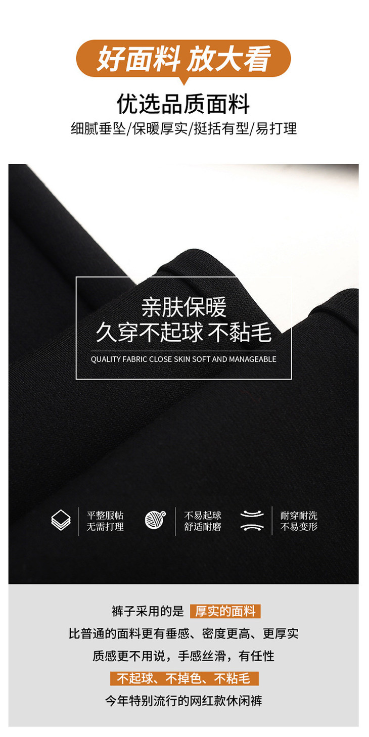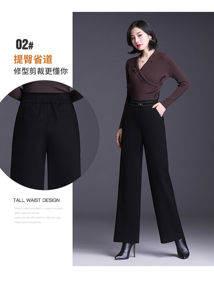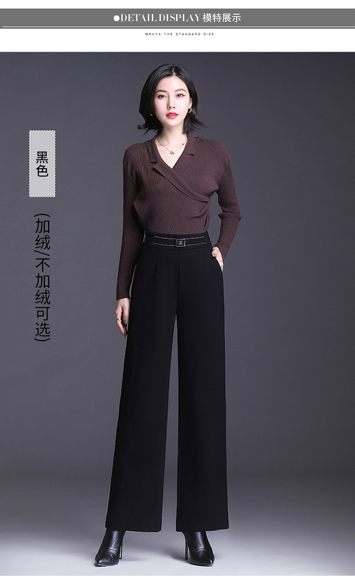 高腰宽松加绒直筒裤韩版弹力坠感休闲裤阔腿裤MYX8021