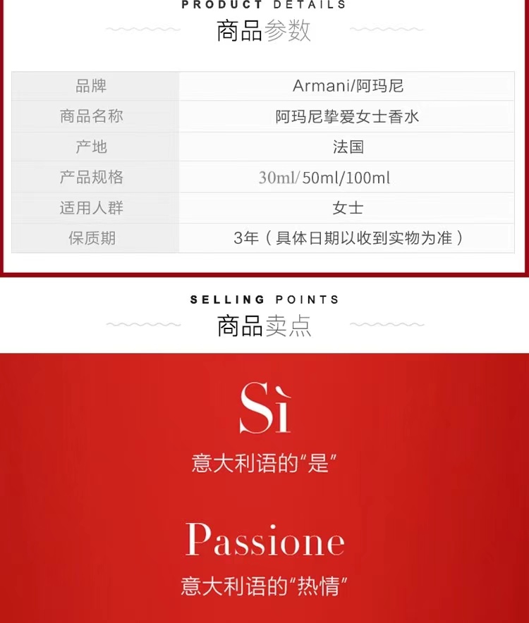 意大利阿玛尼Armani挚爱女士真情流露红瓶限量香水EDP