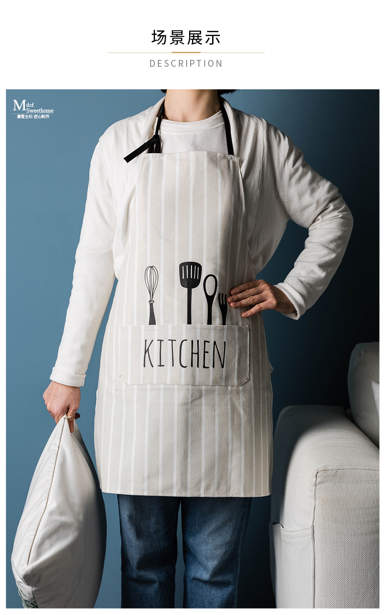摩登主妇韩版时尚厨房布艺围裙防油罩衣情侣家用创意做饭围裙围腰