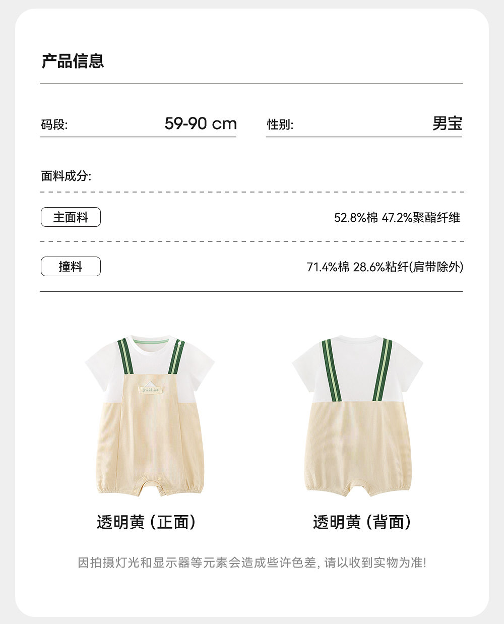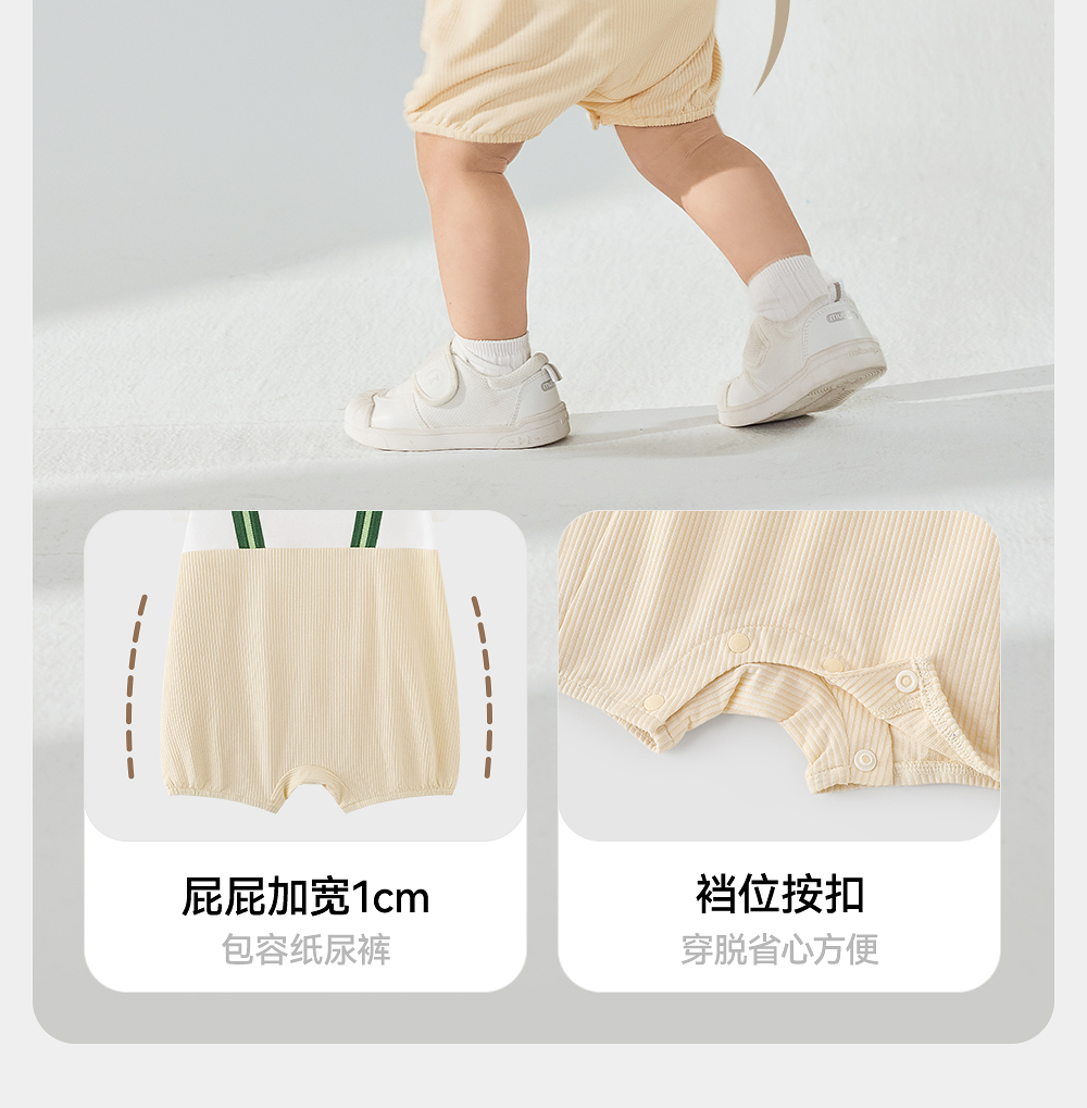 【商场同款】英氏婴儿衣服夏季透气抗菌男宝连体衣假两件包屁衣