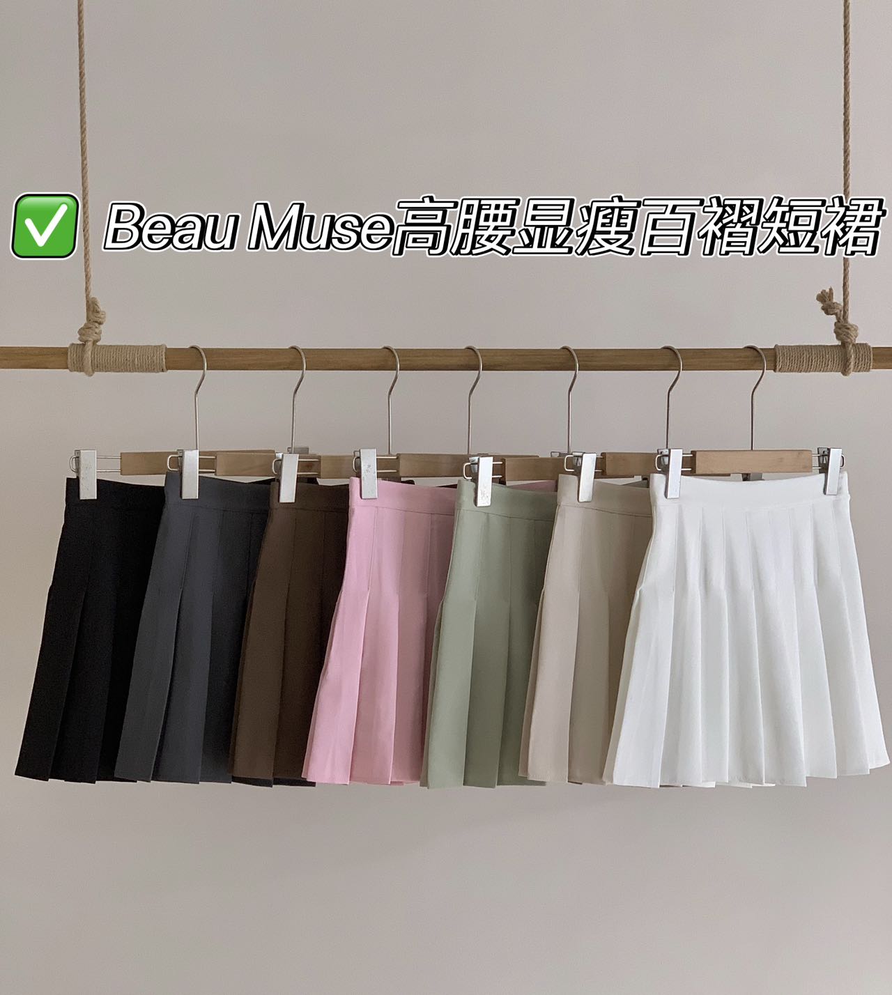 Beau Muse高腰显瘦百褶短裙 I 显腿长显高 立体百褶视觉显瘦 7款春夏百搭色可选 包容体重65-140斤(爆单3-5天发货)
