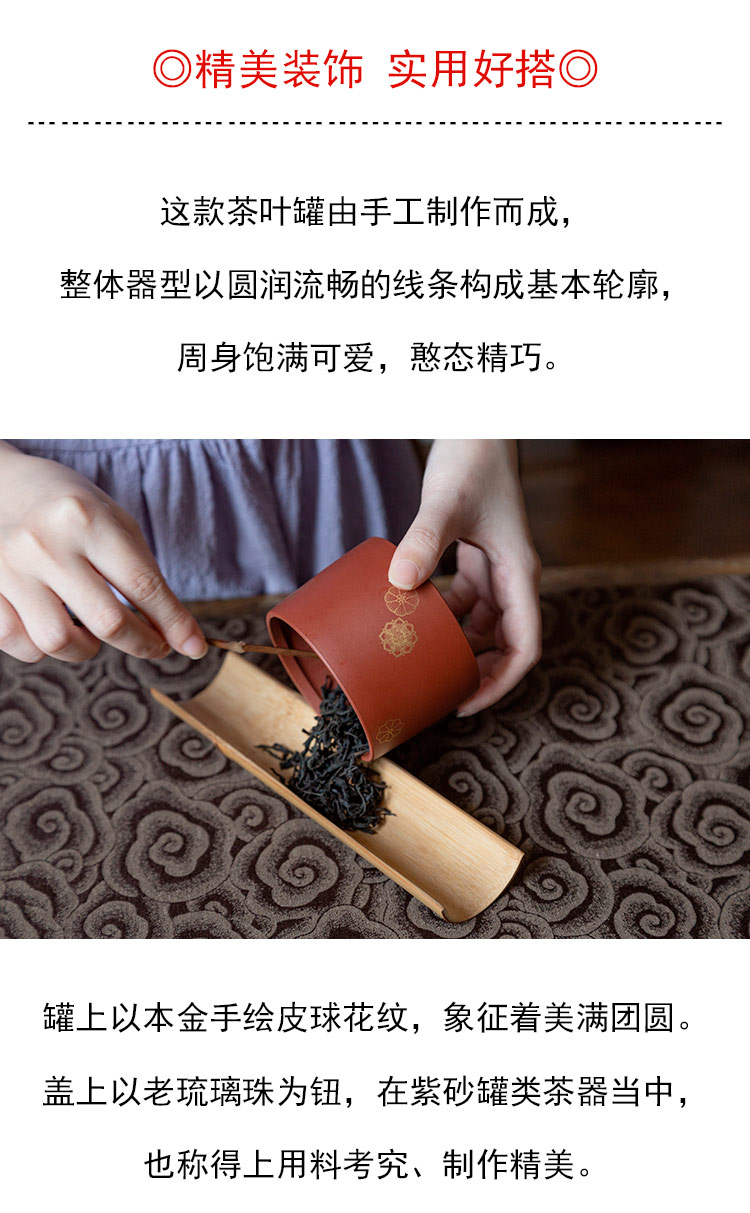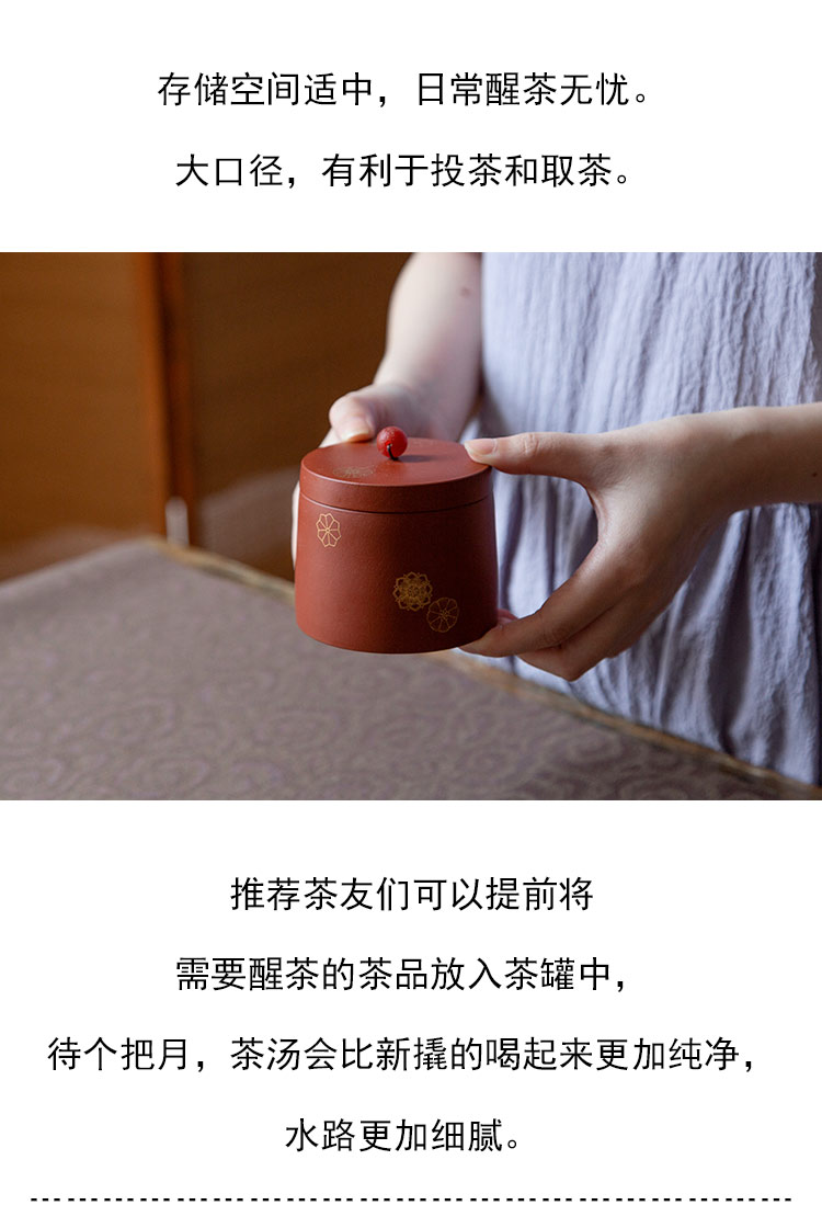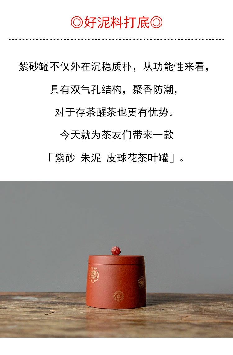 茶香记 紫砂 朱泥 皮球花茶叶罐 透气醒茶 精美手绘 实用好搭