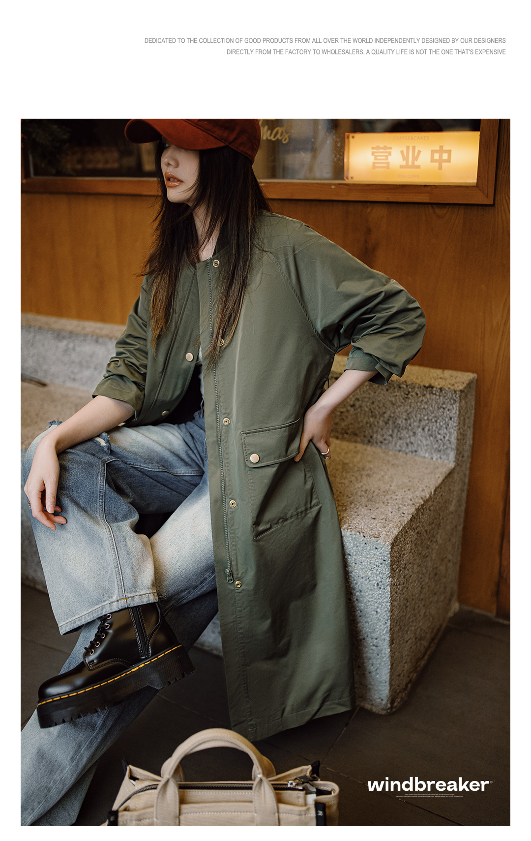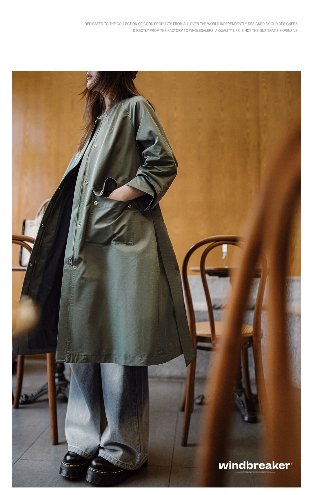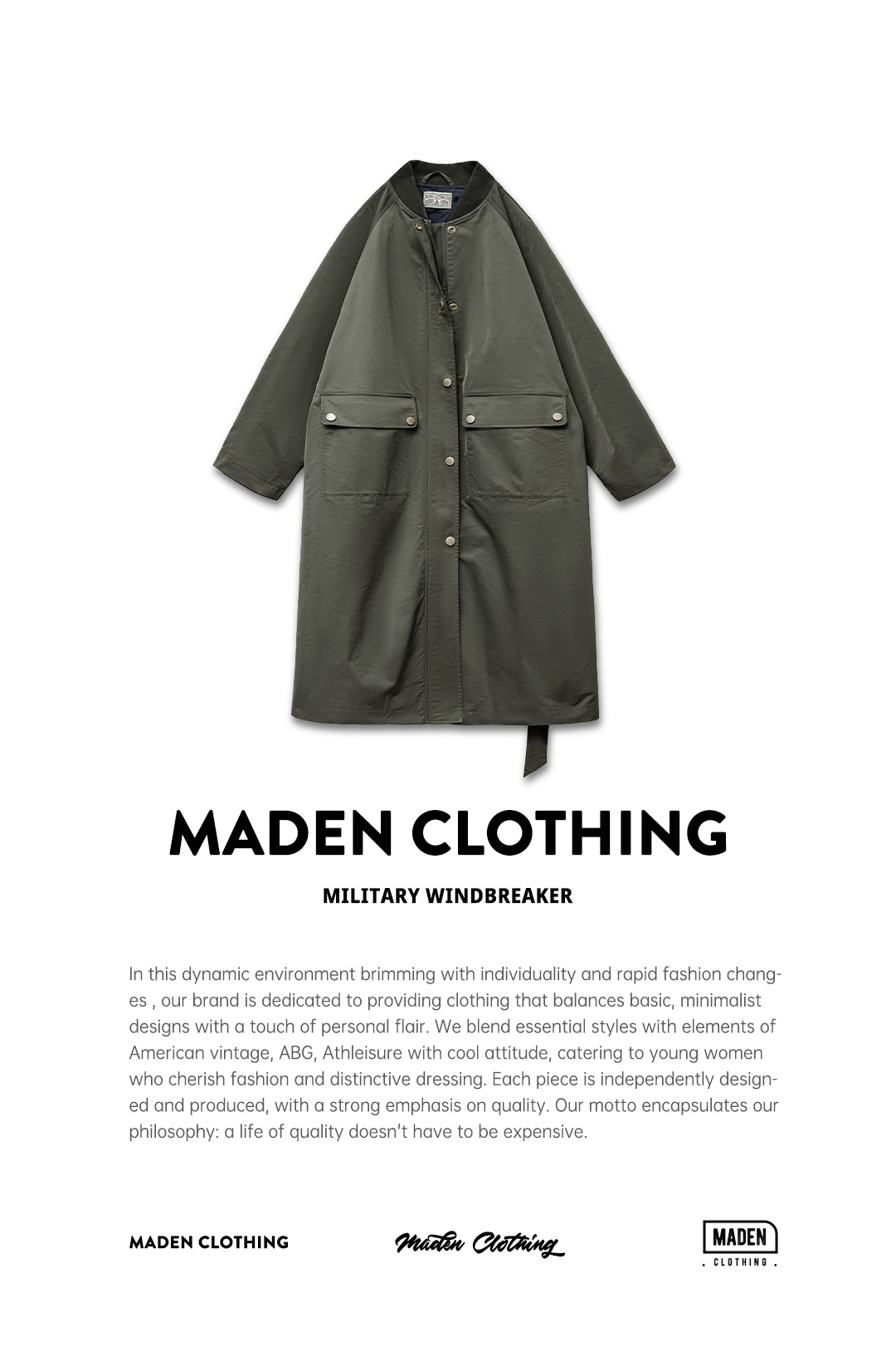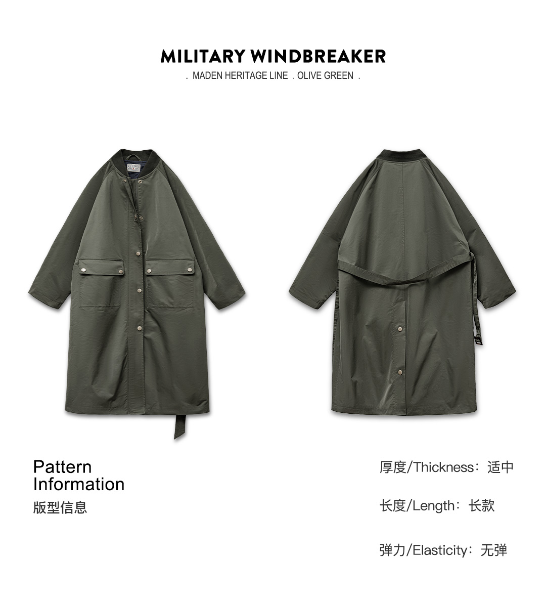 马登复古橄榄绿风衣中长款巴恩风大衣宽松翻盖口袋工装外套秋季女