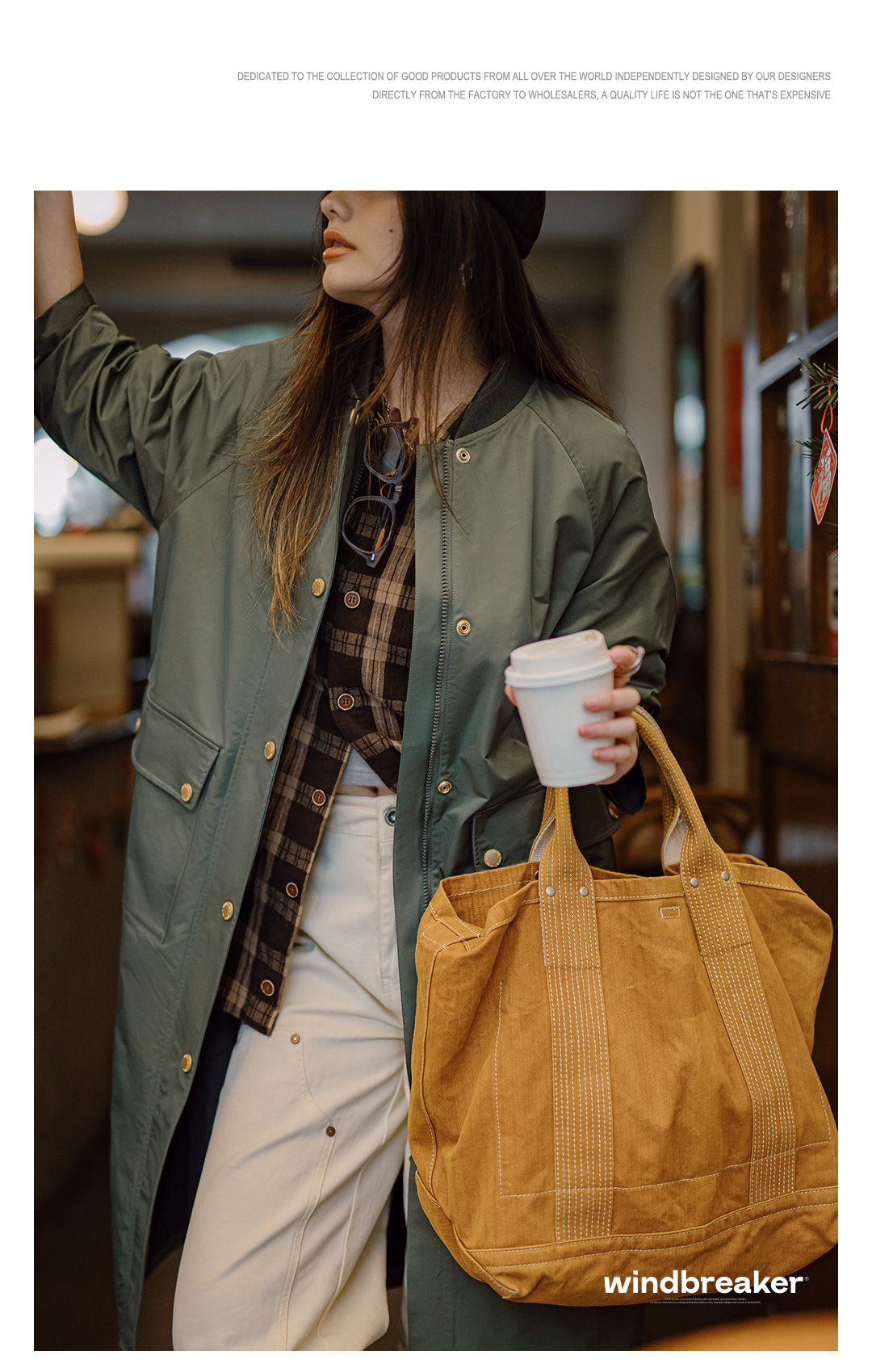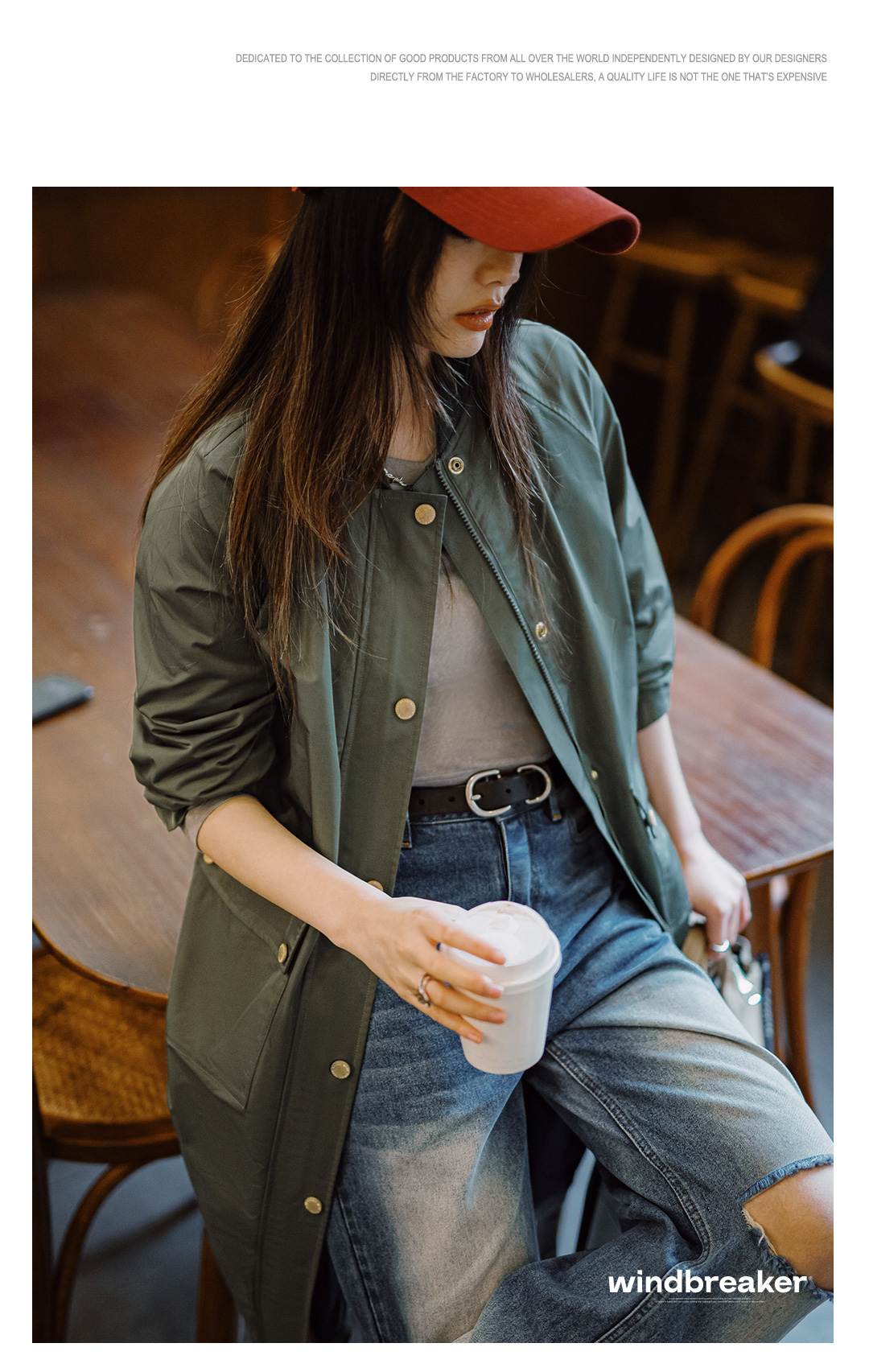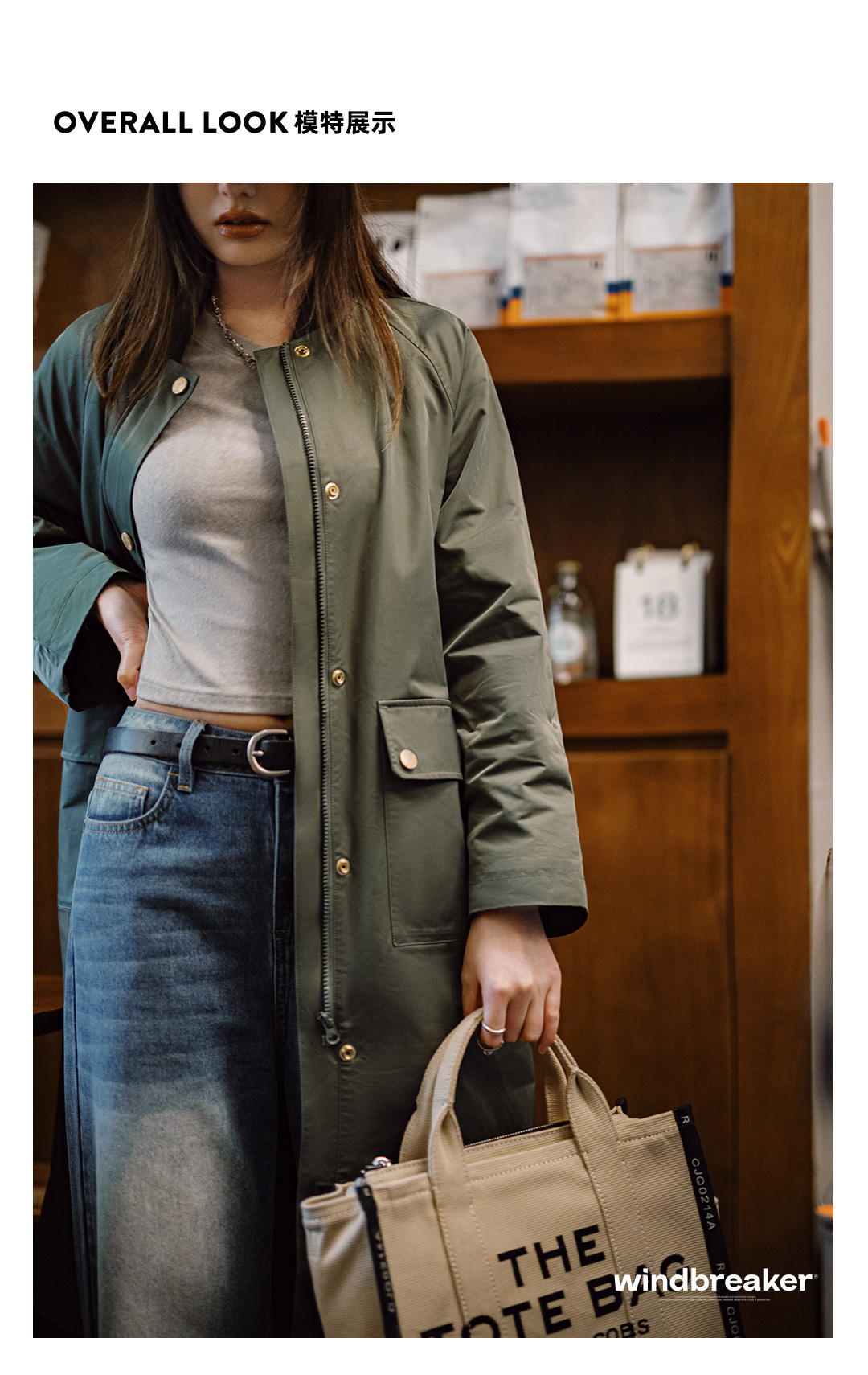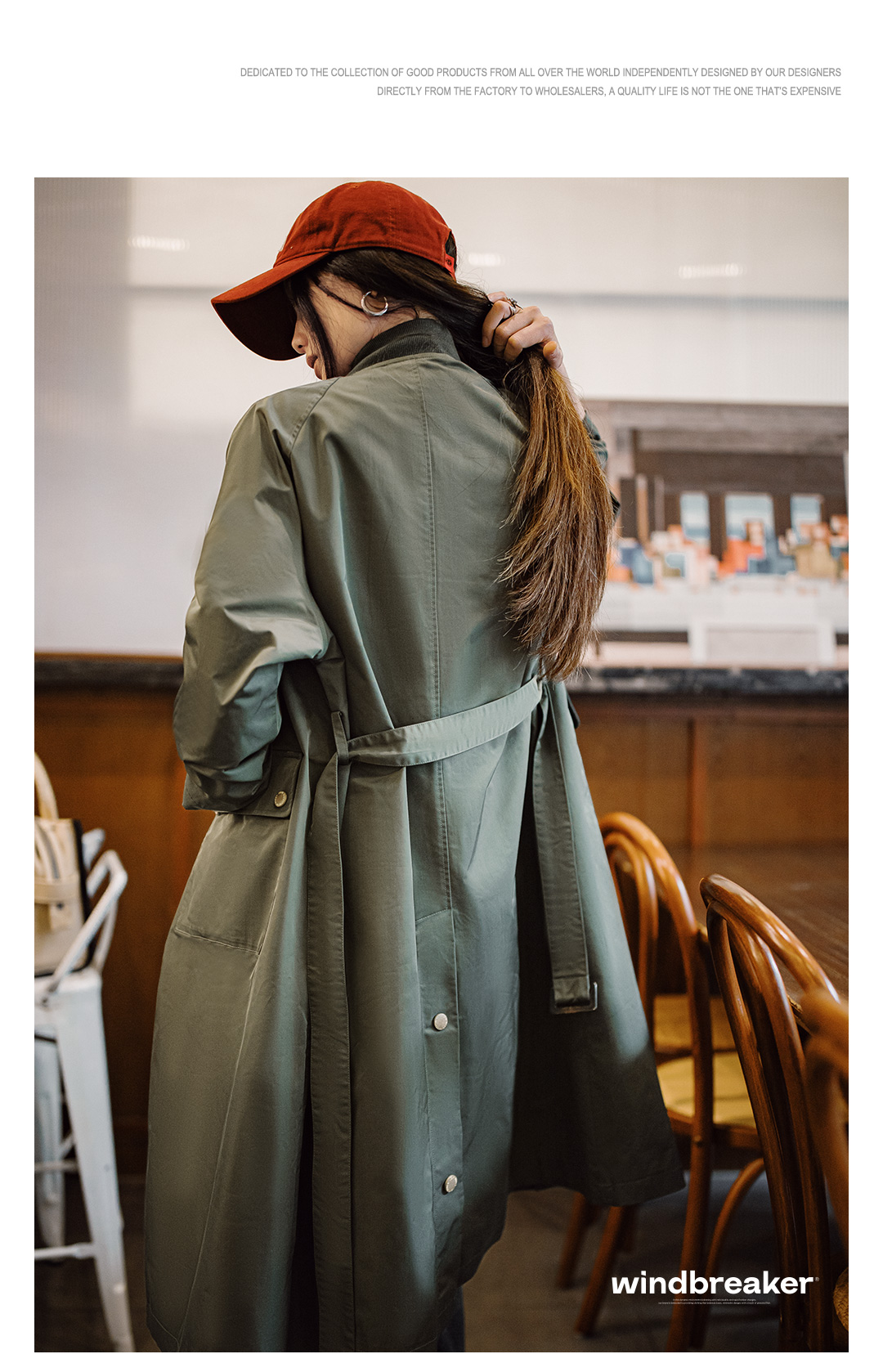 马登复古橄榄绿风衣中长款巴恩风大衣宽松翻盖口袋工装外套秋季女