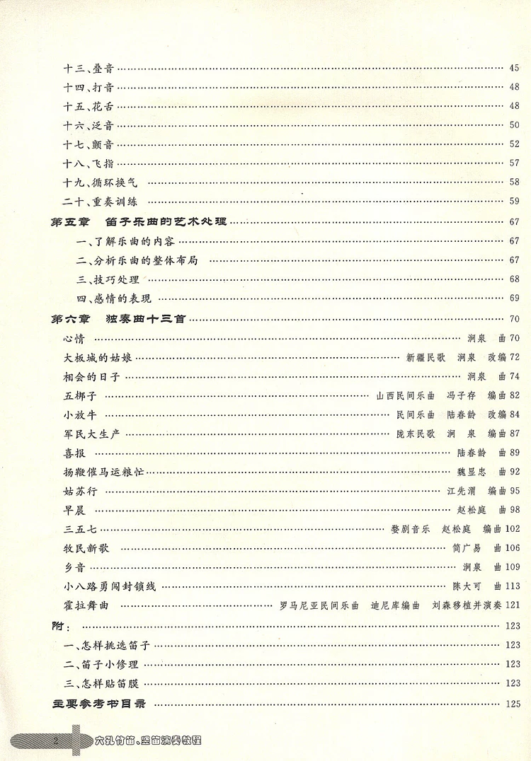 本书根据中小学音乐教学的需要,并结合师范院校器乐课的教学特点,将竖笛的演奏和竹笛的演奏结合起来,使学生在演奏竖笛的基础上逐步向演奏竹笛过渡,达到掌握演奏竹笛的目的。本书由浅入深、通俗易懂,注重基础知识的掌握和基本技巧的训练,对六孔竹笛、竖笛的“呼吸换气”“震音”“舌起音”“单吐”“双吐”“轻吐”“滑音”等技巧都安排了分类练习,最后精选了13首独奏曲,并对如何处理乐曲作了简单的介绍,力求使学习者正确地、科学地掌握运用竹笛和竖笛的演奏。