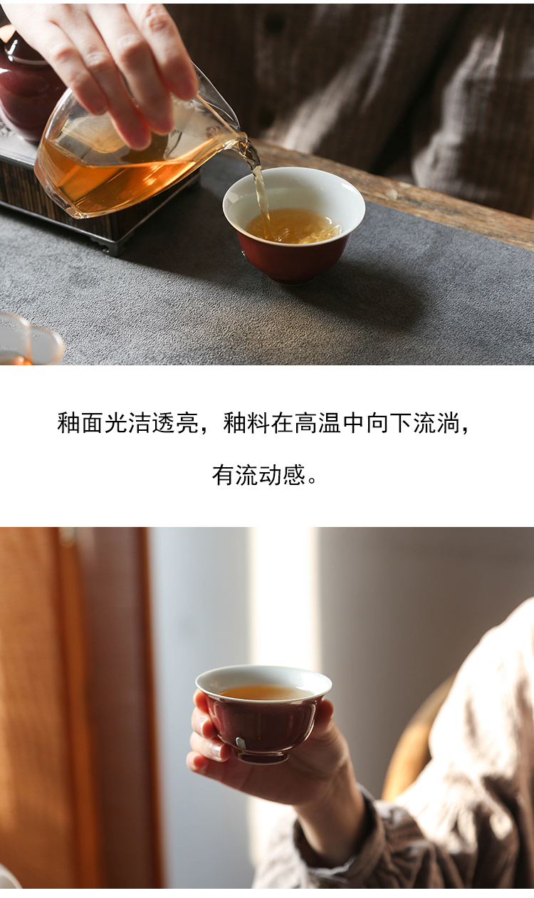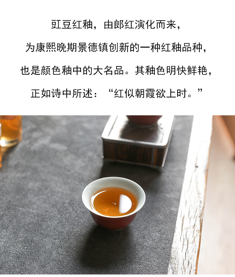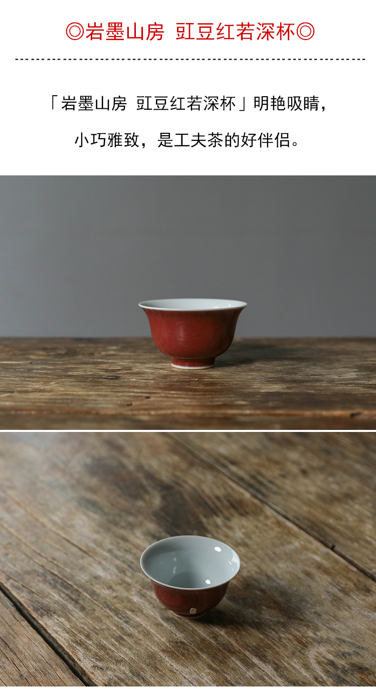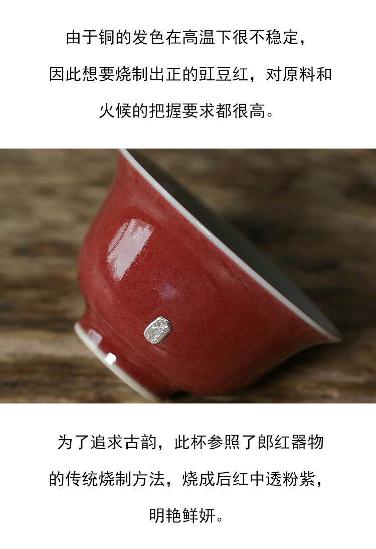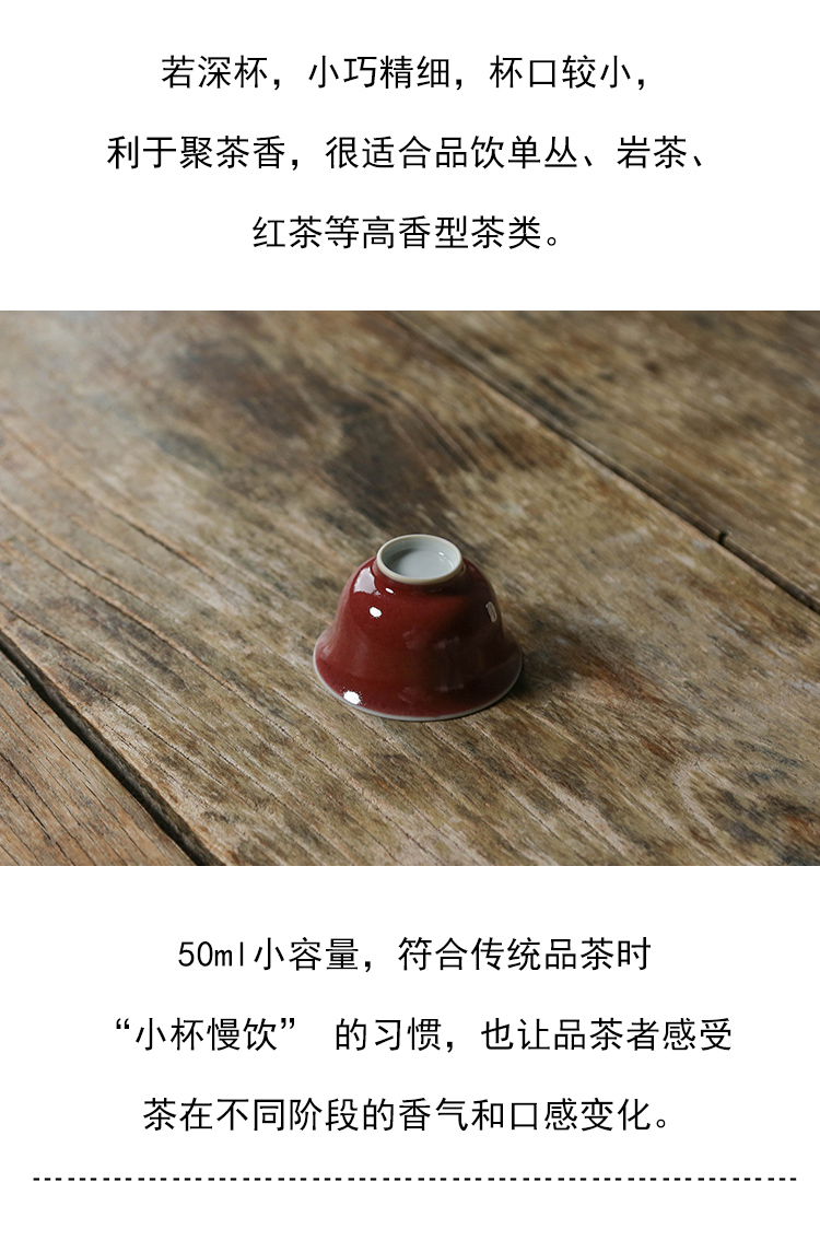 茶香记 景德镇岩墨山房豇豆红若深杯50ml颜色釉陶瓷茶杯红艳品杯