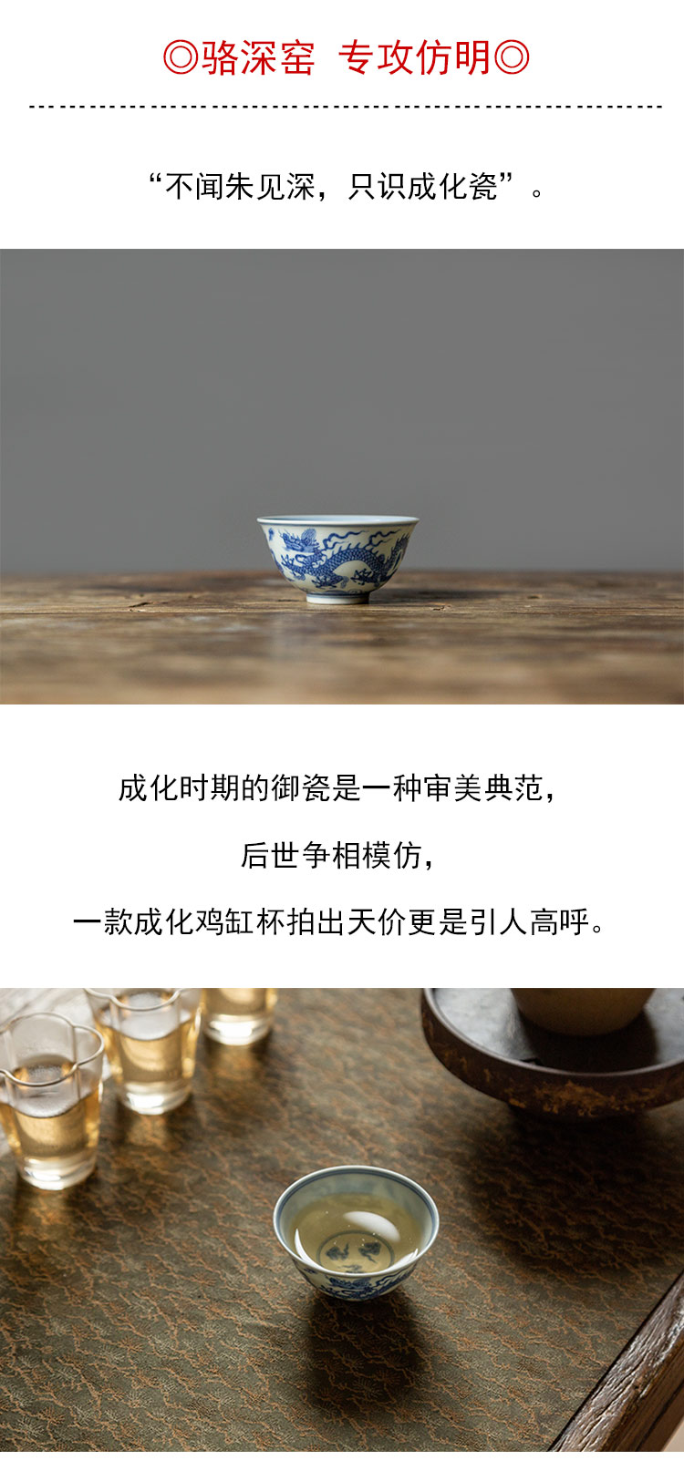 茶香记 骆深窑 仿明青花 成化云龙纹品杯 古典淡雅 浑厚古朴