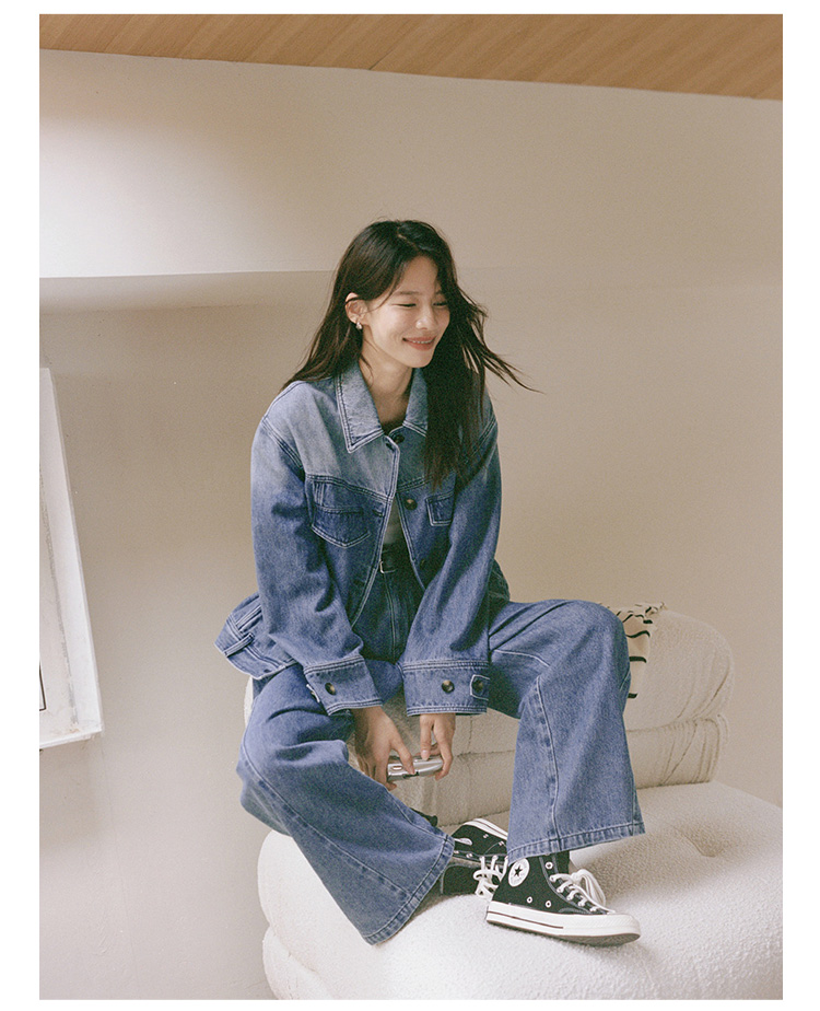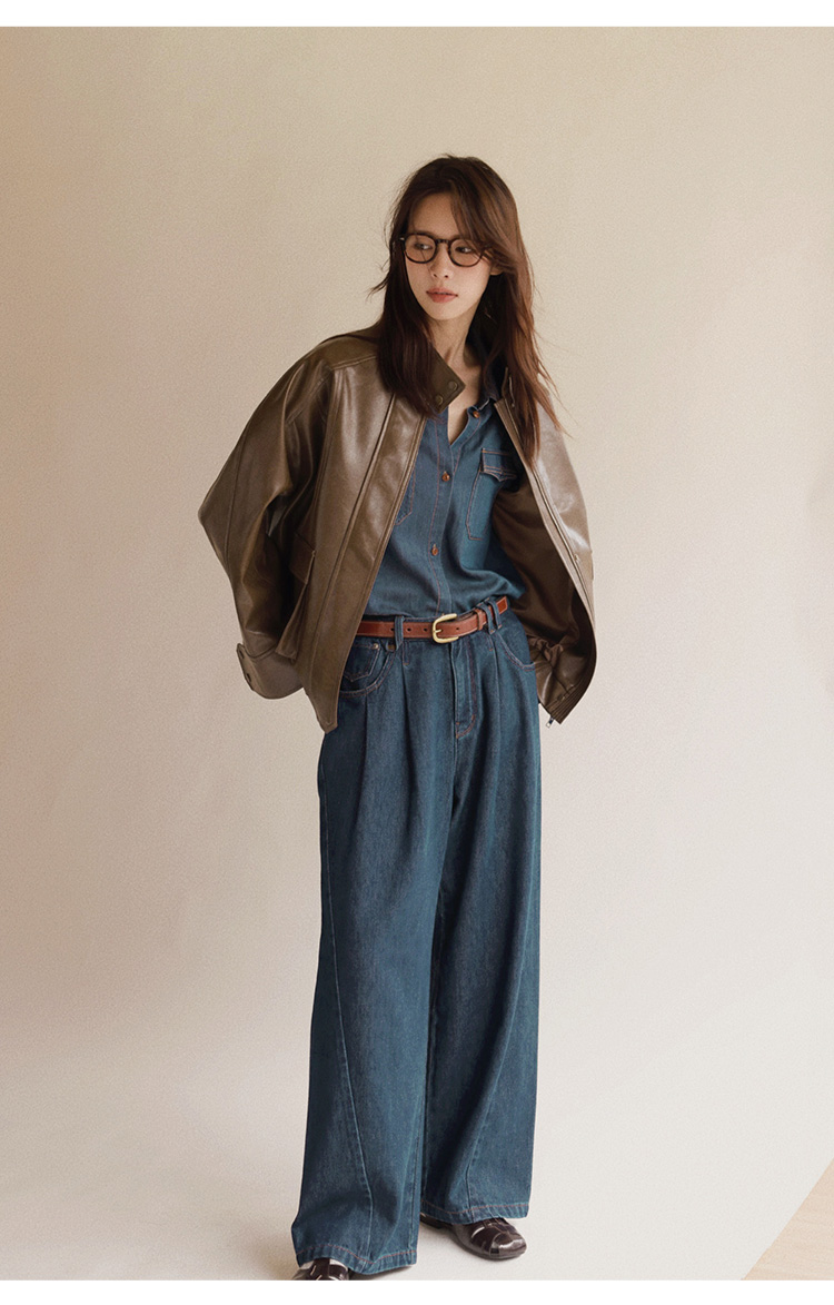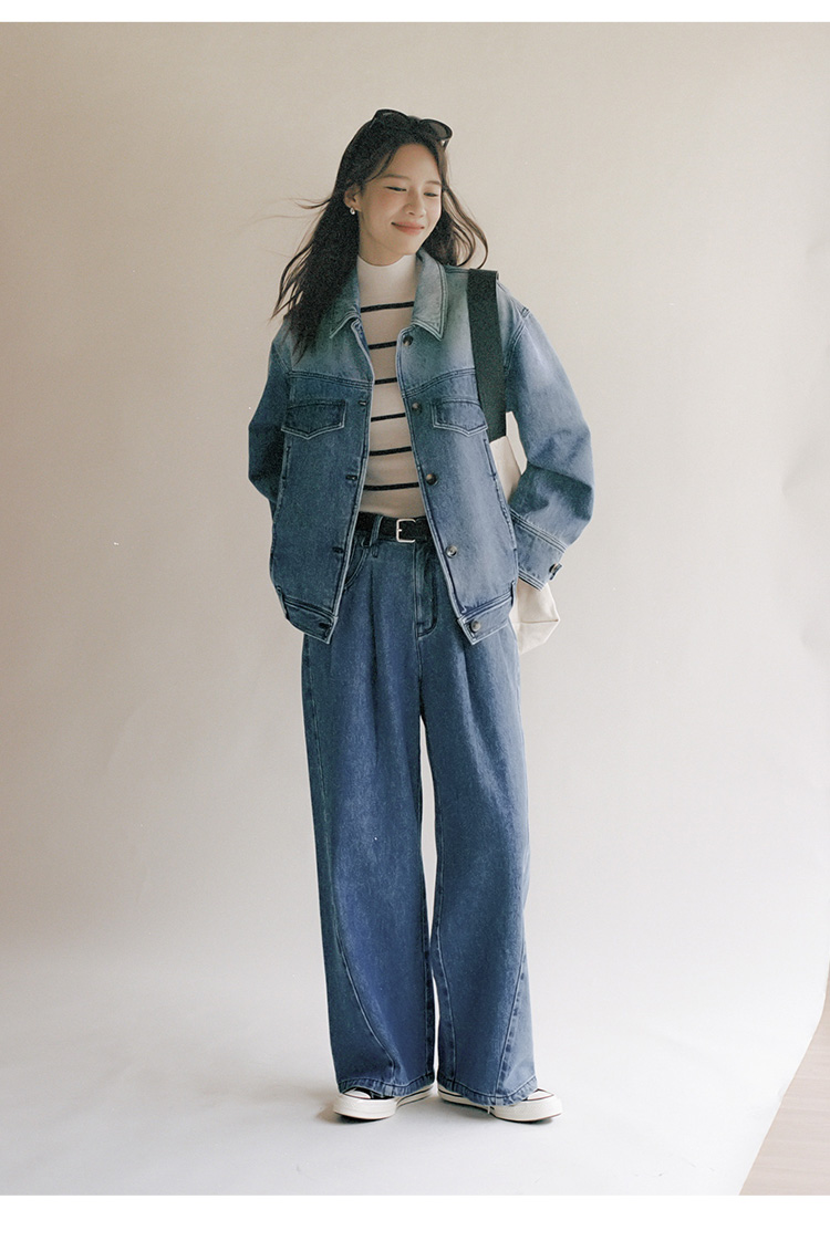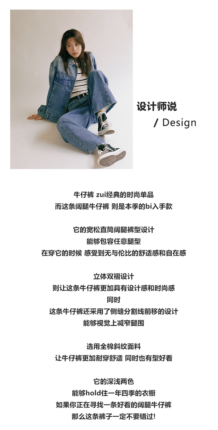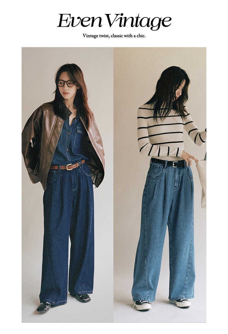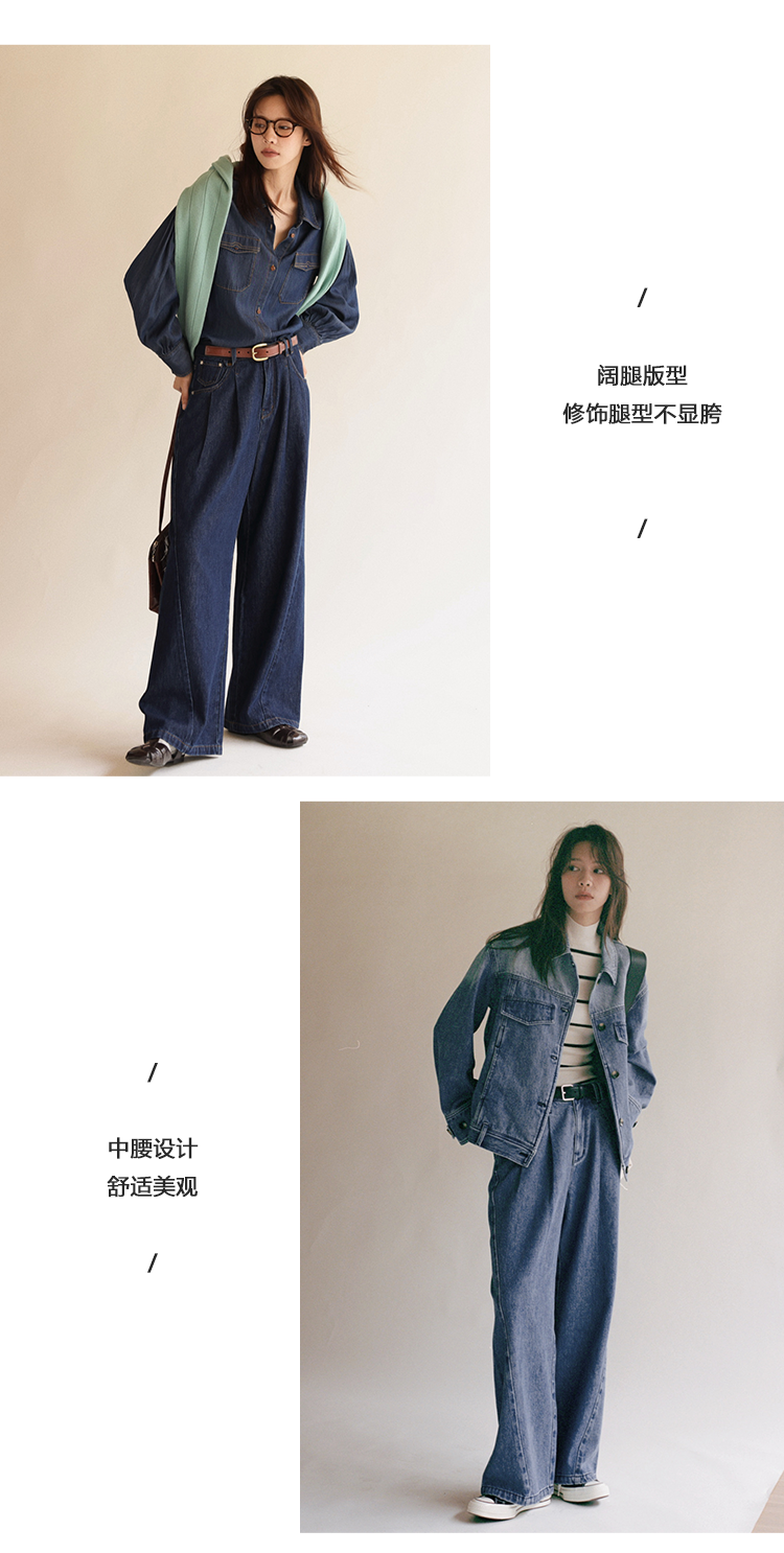 Even Vintage | 版型好 四季百搭休闲分割线阔腿牛仔裤女长裤