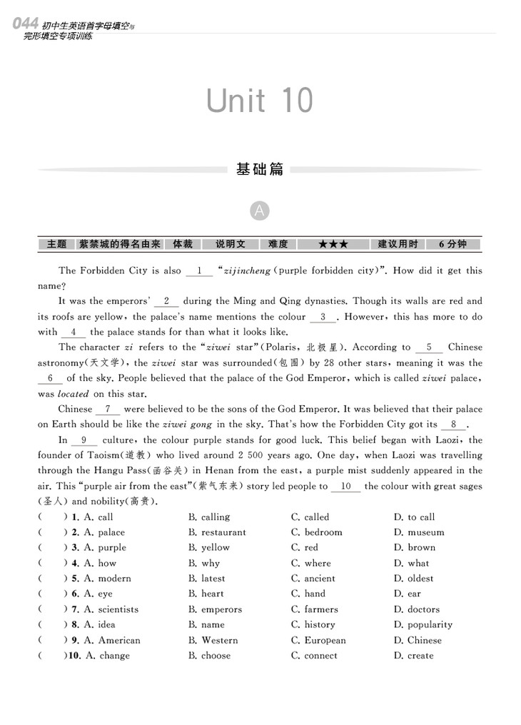 南大励学 初中生英语首字母填空与完形填空专项训练 中考版 第4版