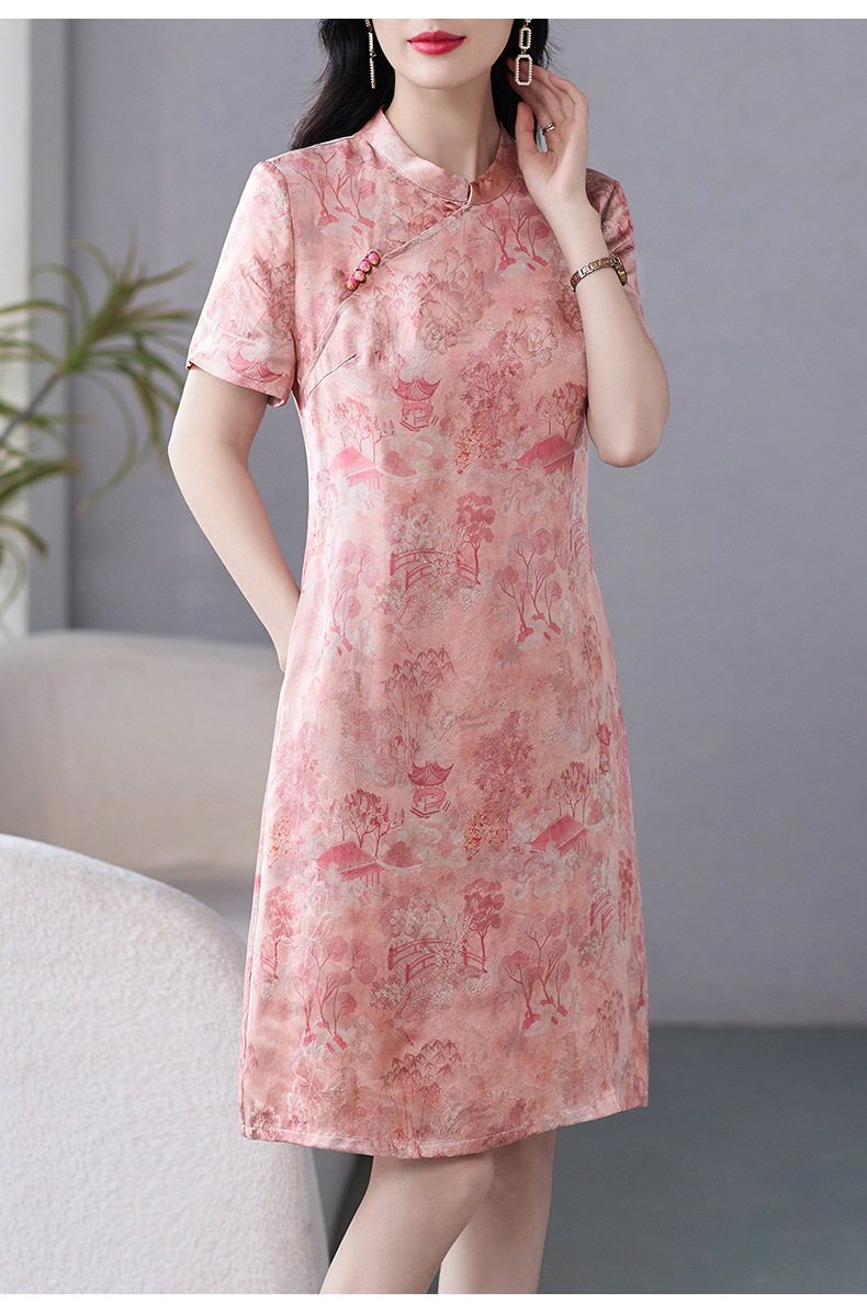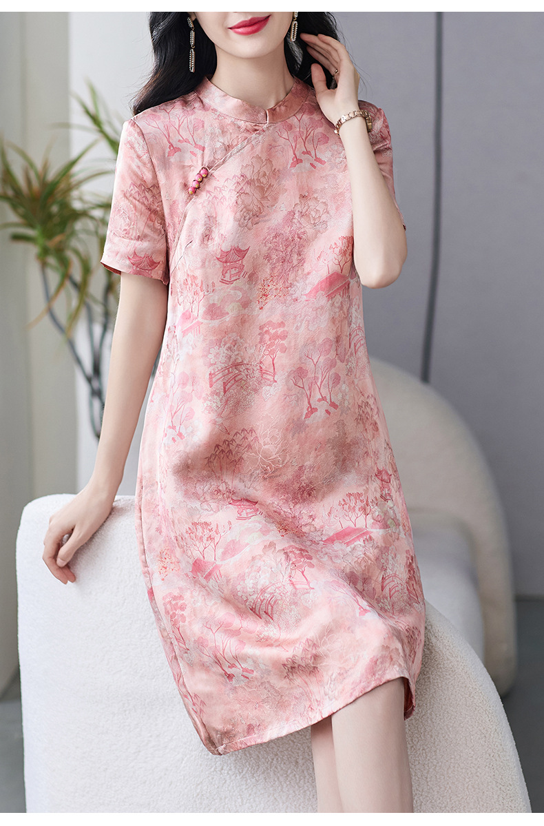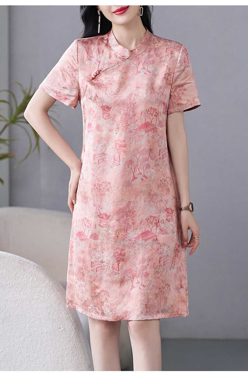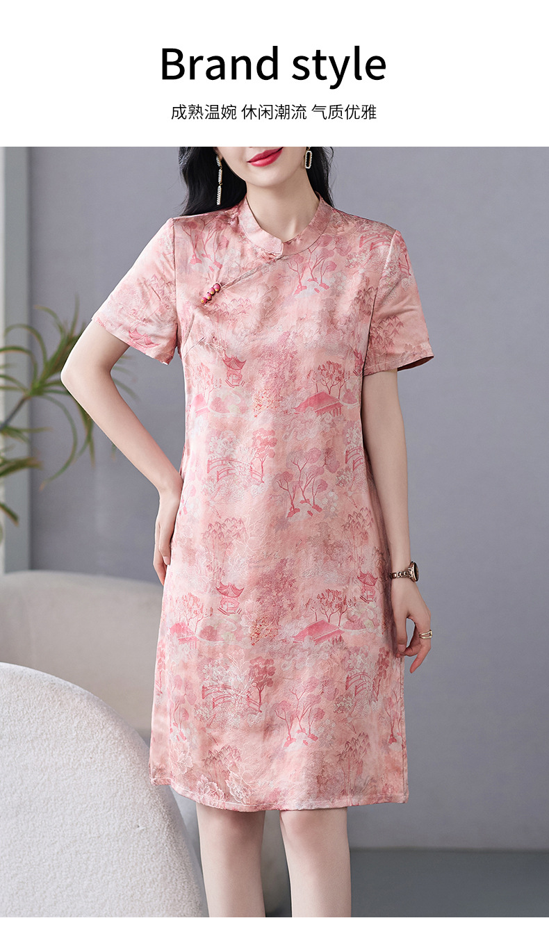 WWM69573 新款中国风小个子人丝香云纱连衣裙显瘦女装夏高级感旗袍