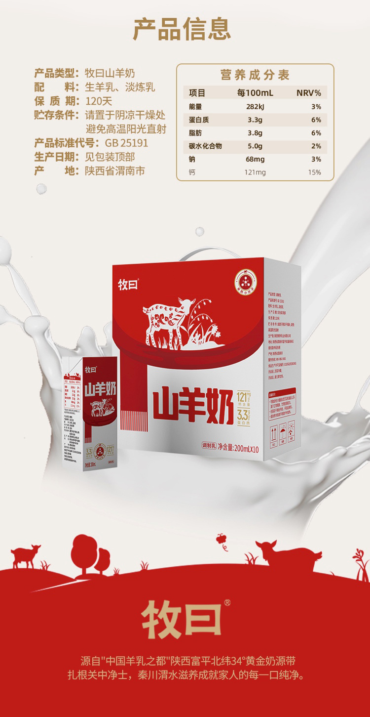 牧曰山羊奶/1箱(200g*10瓶)生产日期:12月2日左右补单专用