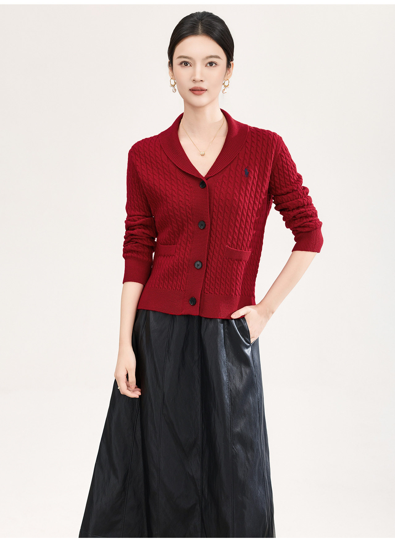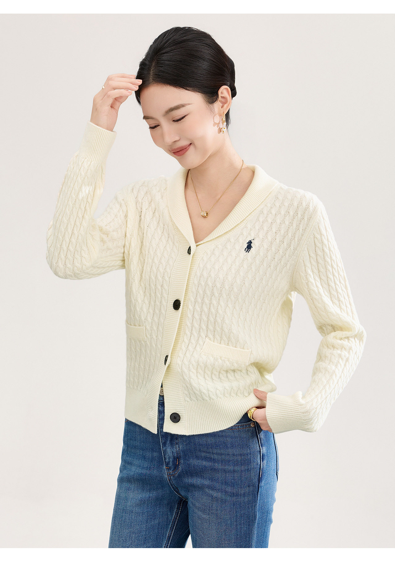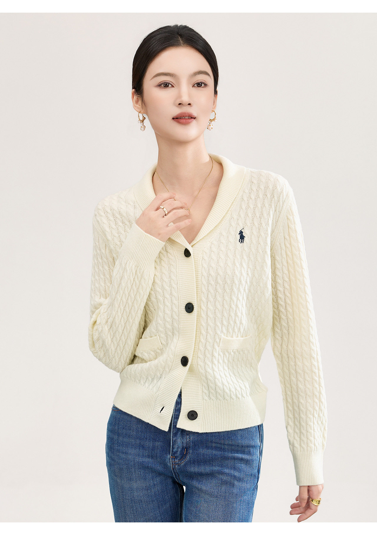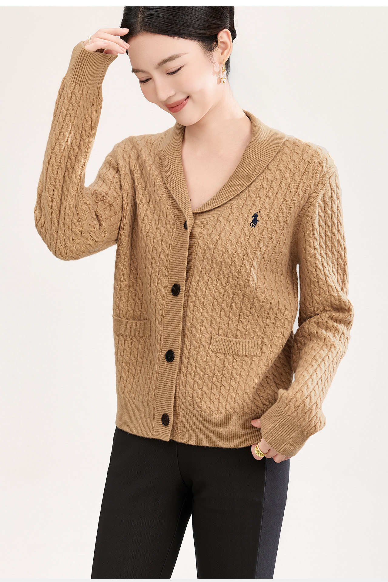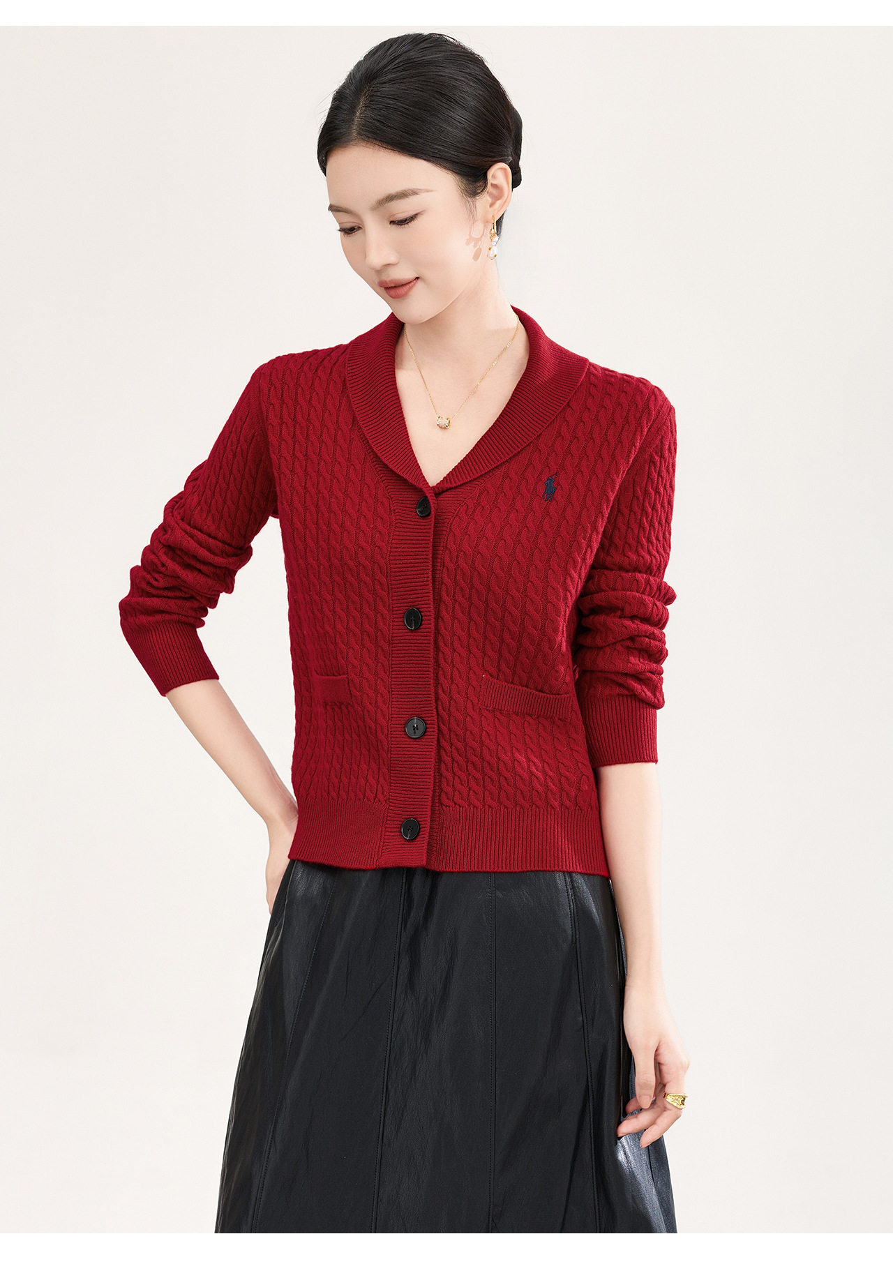 「高货wl」全新升级【铂金会员330/天猫439/差价109】(93616)洛诗琳气质减龄纽花羊毛开衫2026春季青果领刺绣毛衣外套