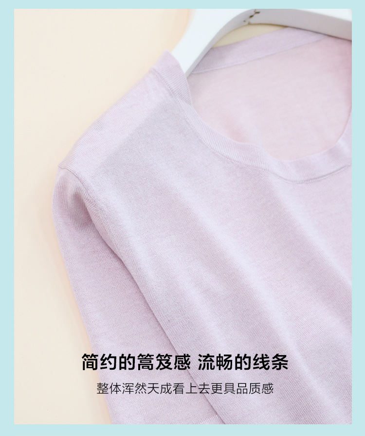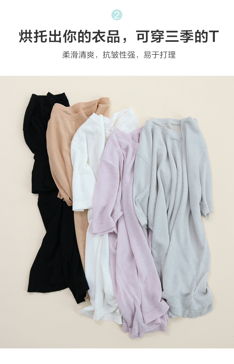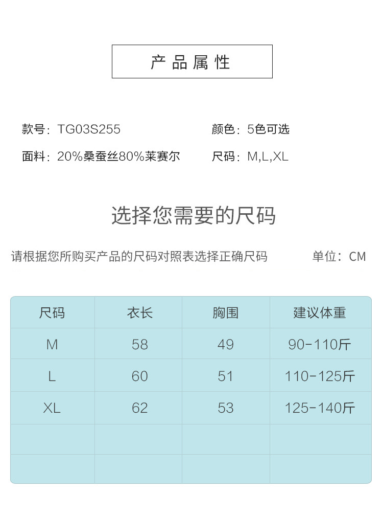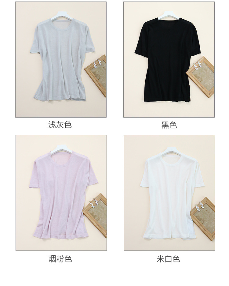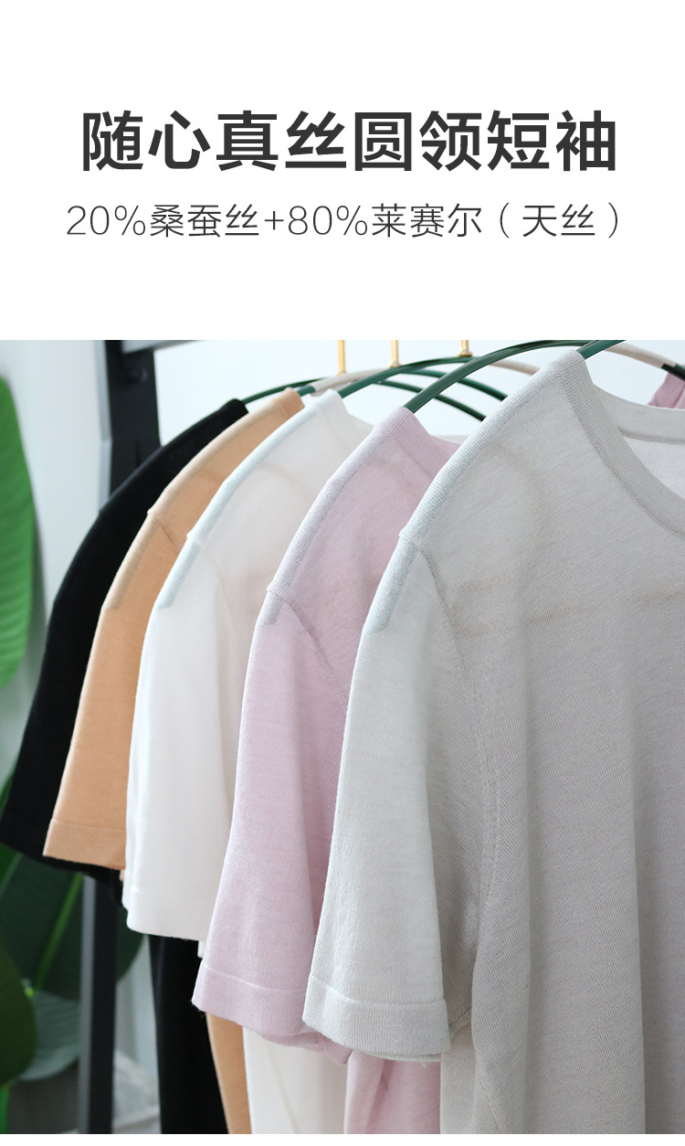 TG-TG03S255夏季轻薄桑蚕丝圆领打底衫女 针织真丝莱赛尔纯色短袖上衣