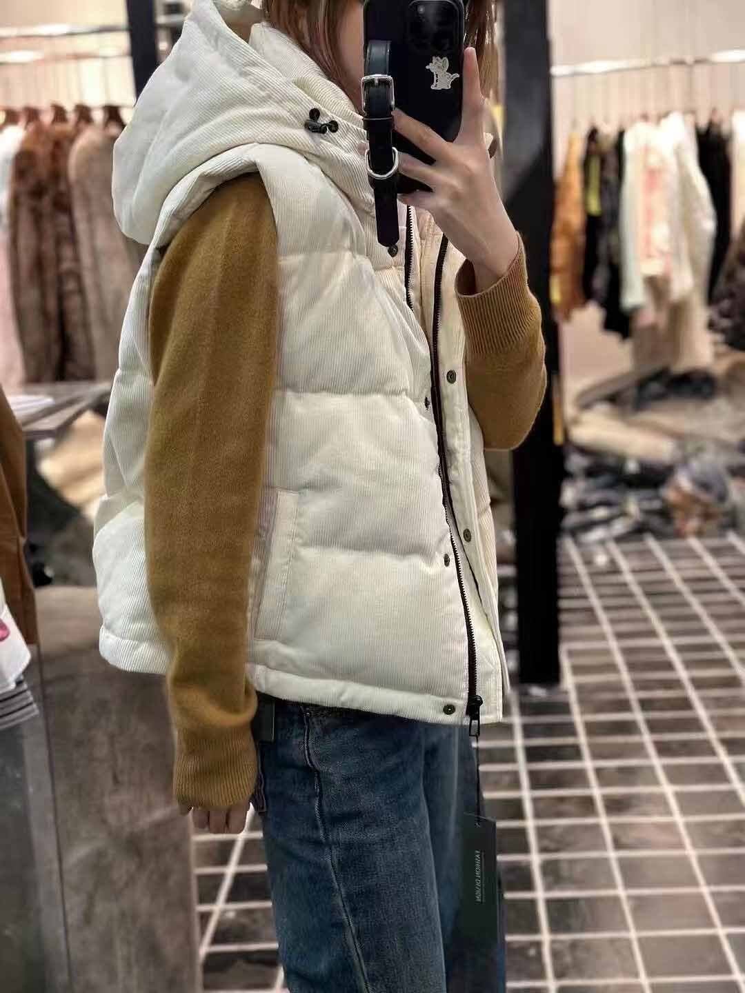 顺丰包邮洛诗琳35658软糯保暖宽松连帽鹅绒马甲羽绒服3191