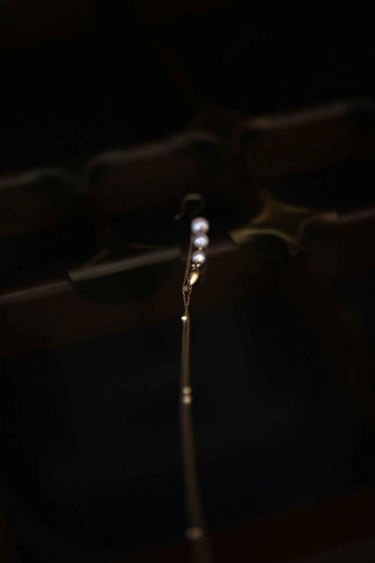 立体的3d黄金小鱼,配合三颗排列的akoya海珠,一正一反,但同样的长度,不对称中透出俏皮与和谐;