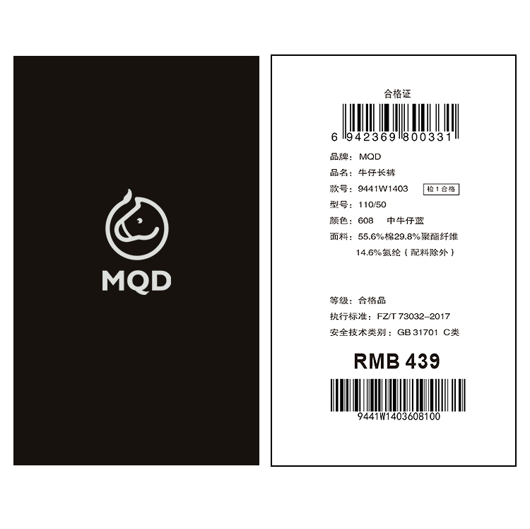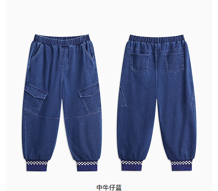 【MQD】【170】【超软】童装男大童学院风针织牛仔裤春新款大口袋束脚长裤