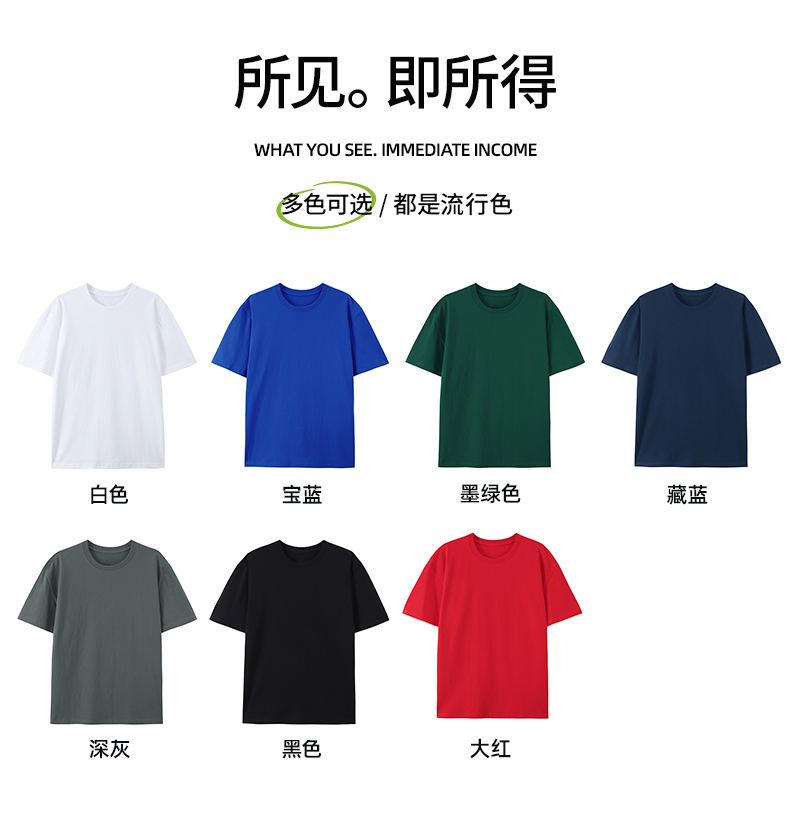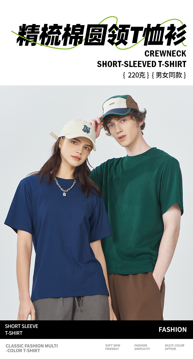 自由基地夏季新款220克精梳紧密赛罗纺T恤团队定制男女同款全棉半袖光板队服 NMT-2132