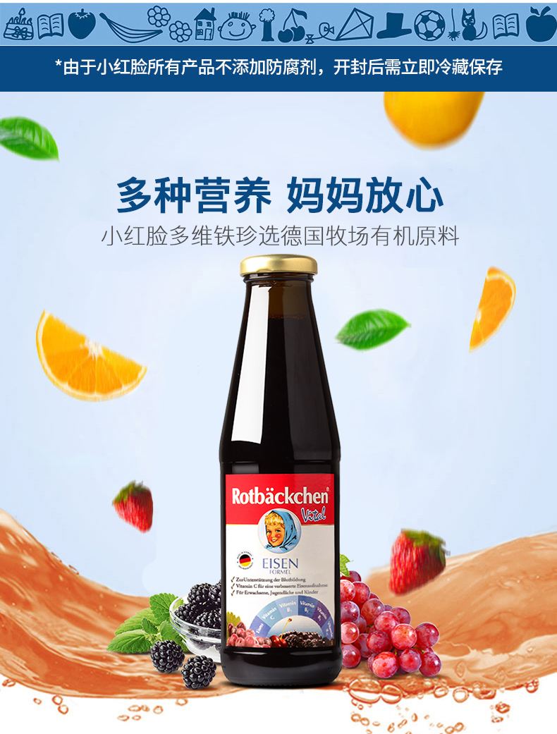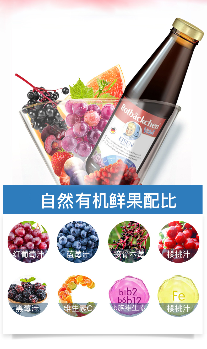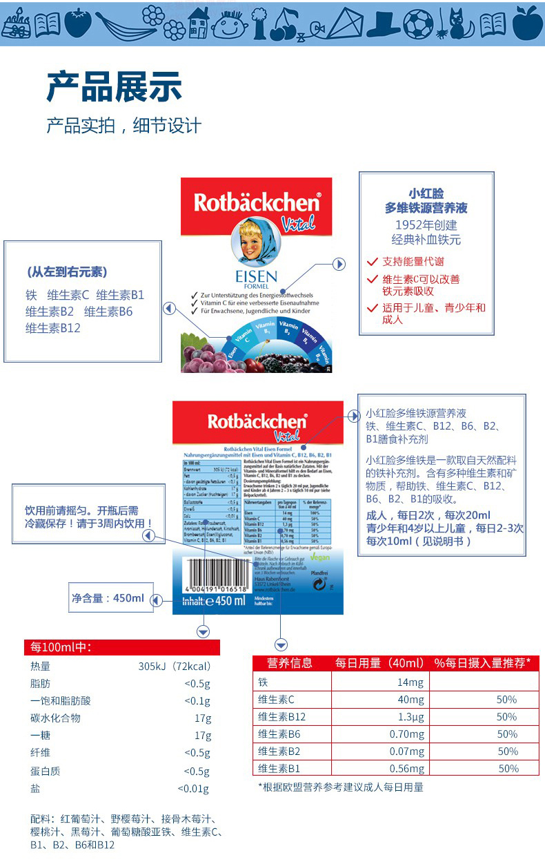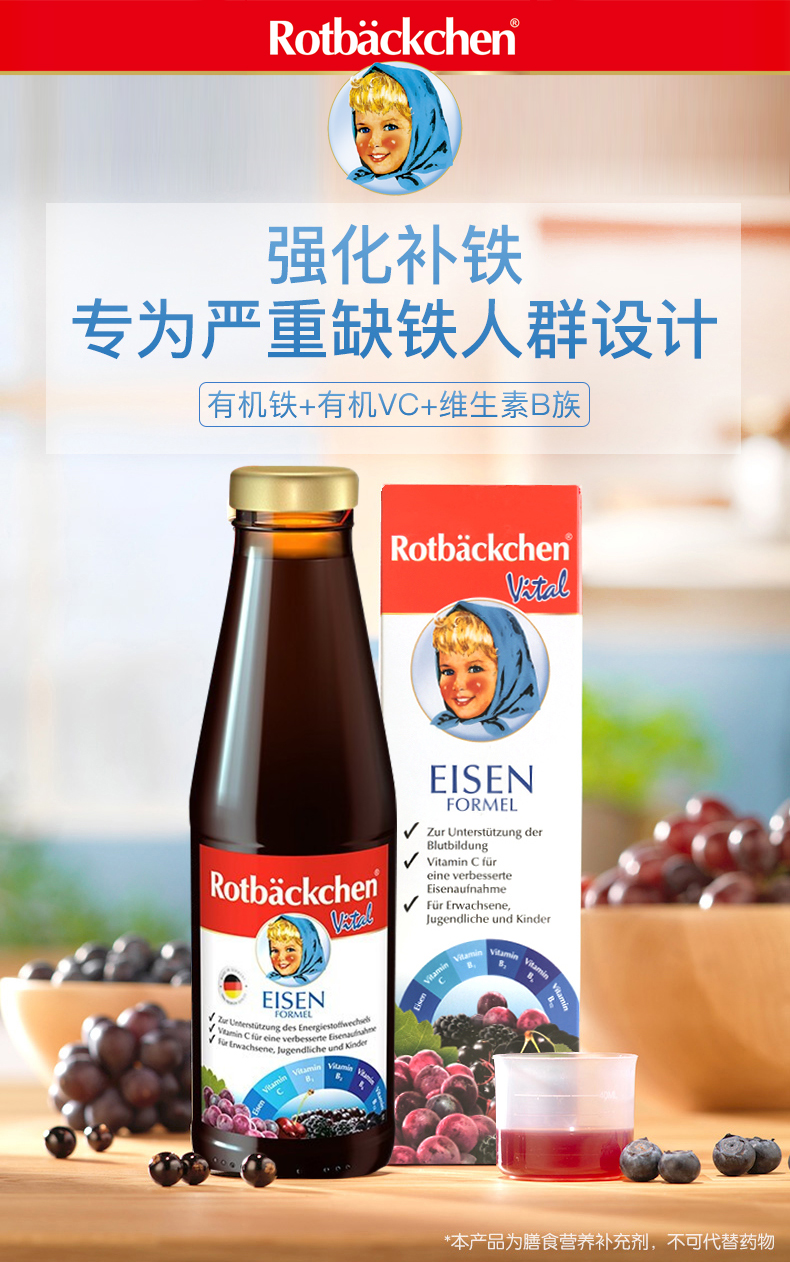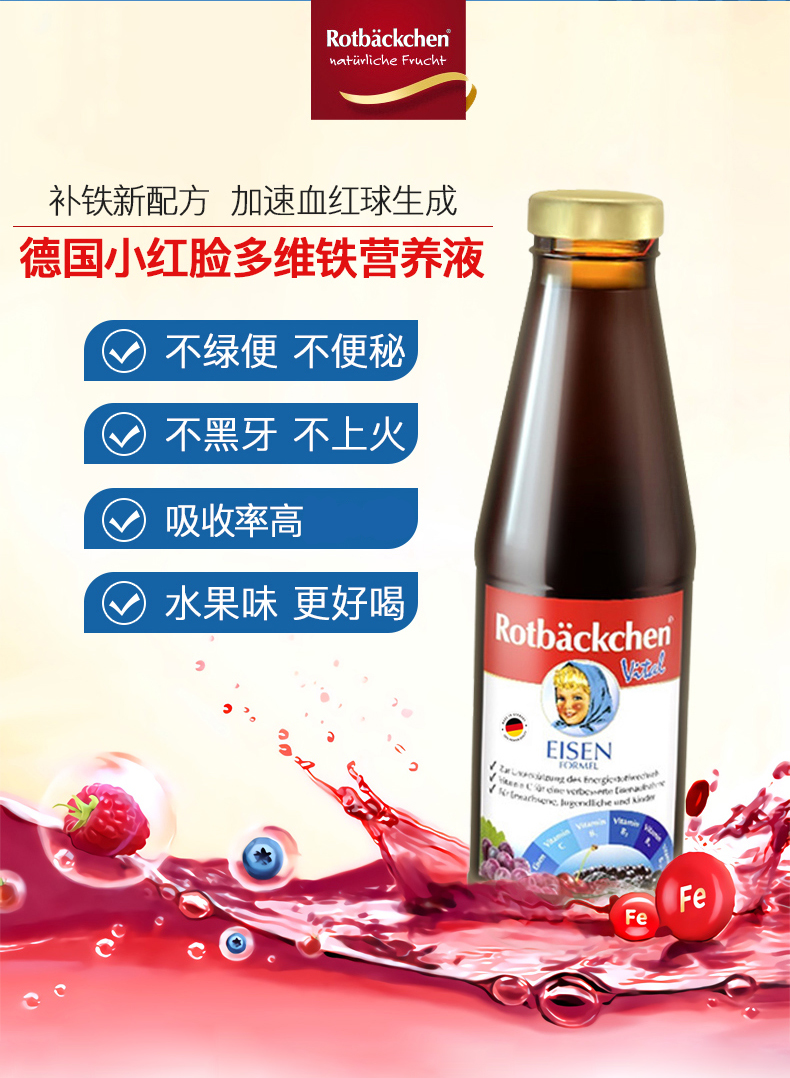 德国进口RBH 百年小红脸全家多维铁 450ml 全家营养充电宝 科学配比防互斥 抗疲劳力Max