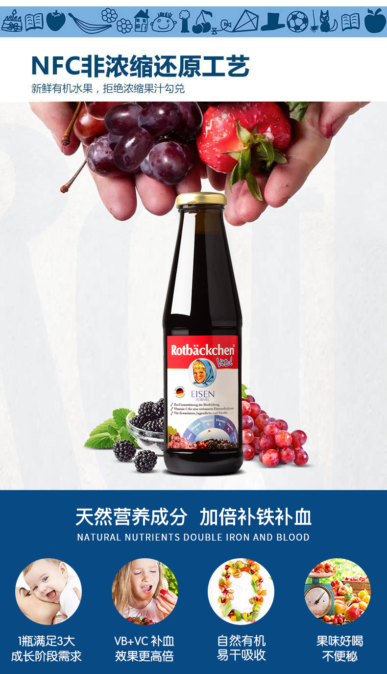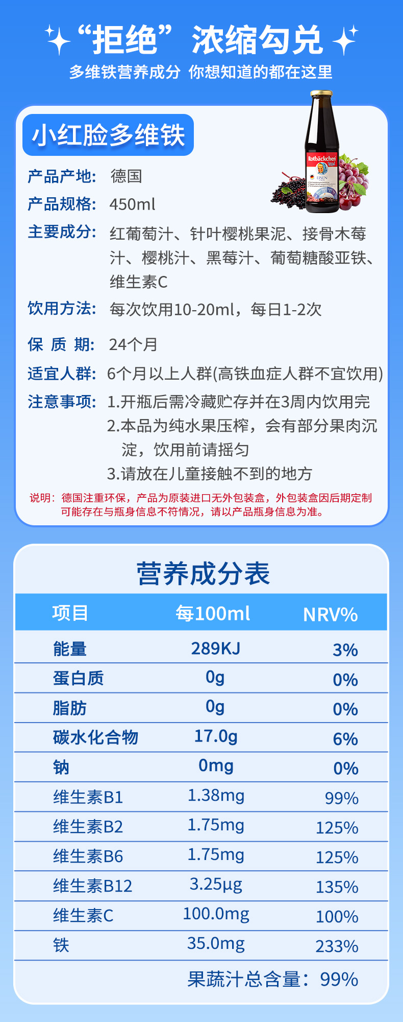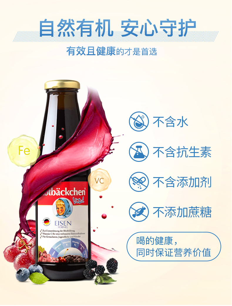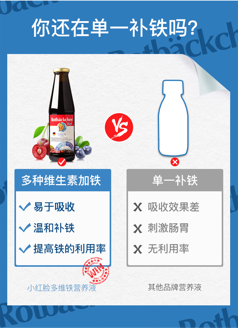德国进口RBH 百年小红脸全家多维铁 450ml 全家营养充电宝 科学配比防互斥 抗疲劳力Max