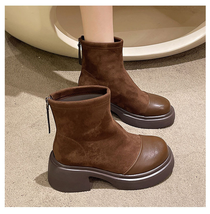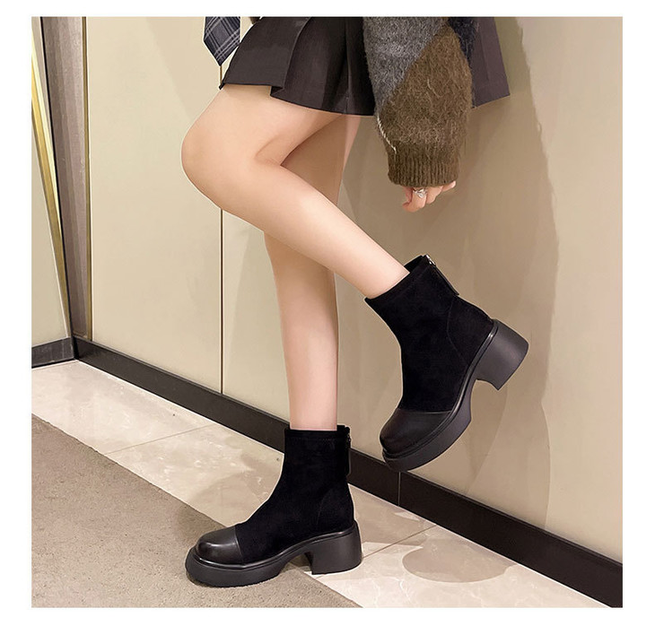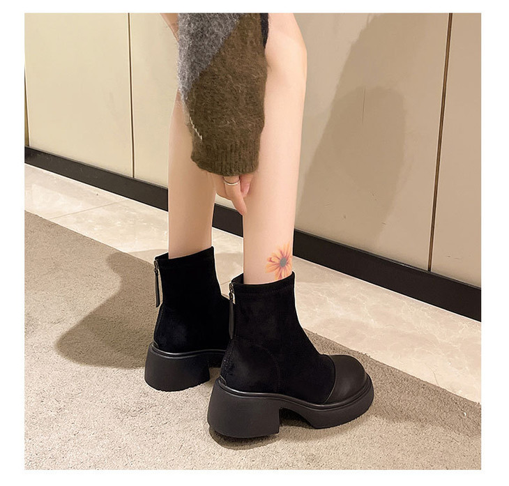 厚底粗跟马丁靴轻便低筒圆头弹力瘦瘦靴加绒短靴MB321-6