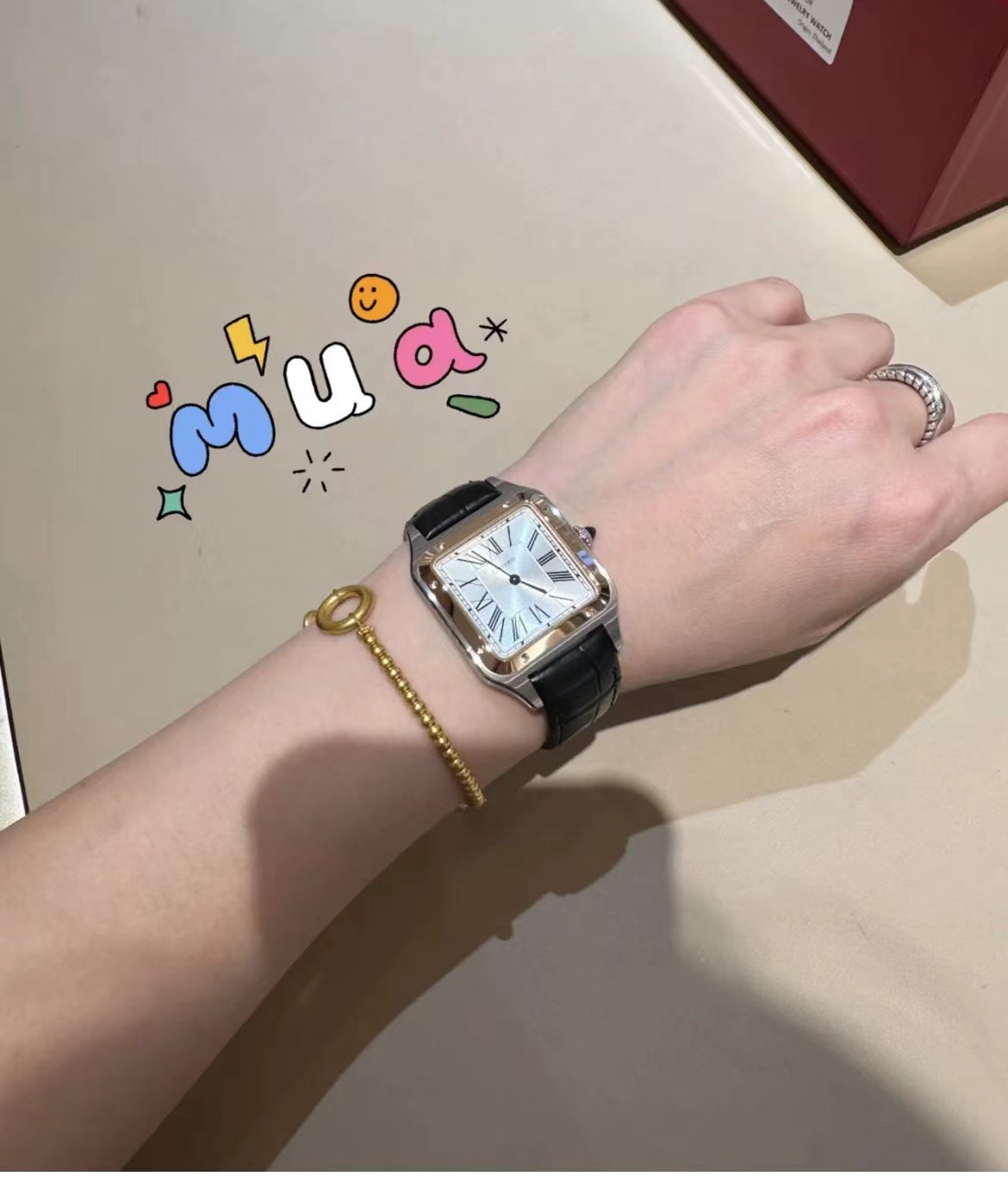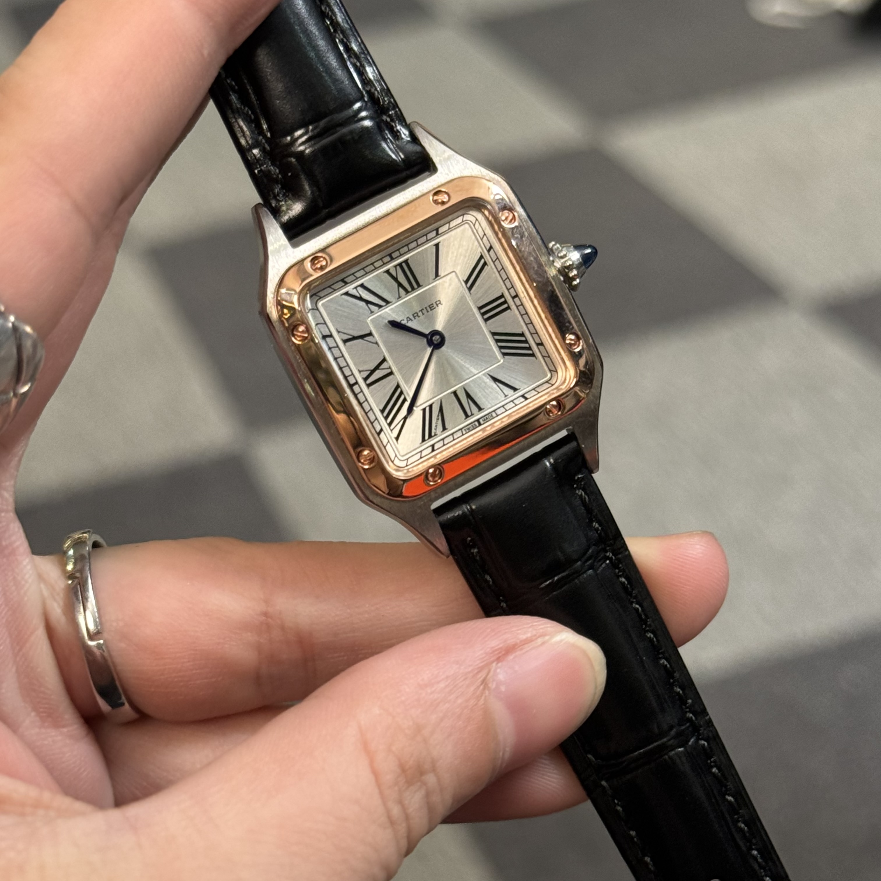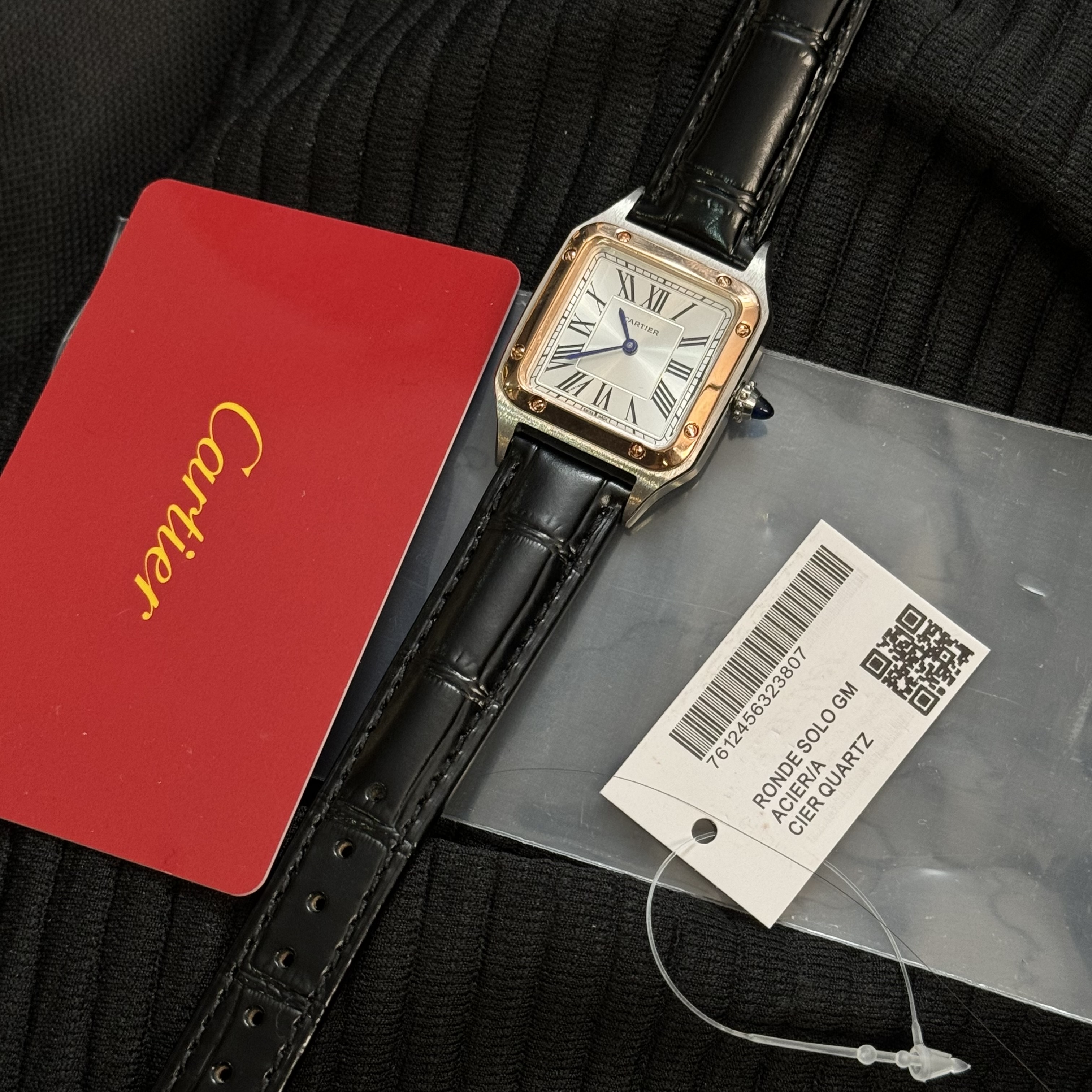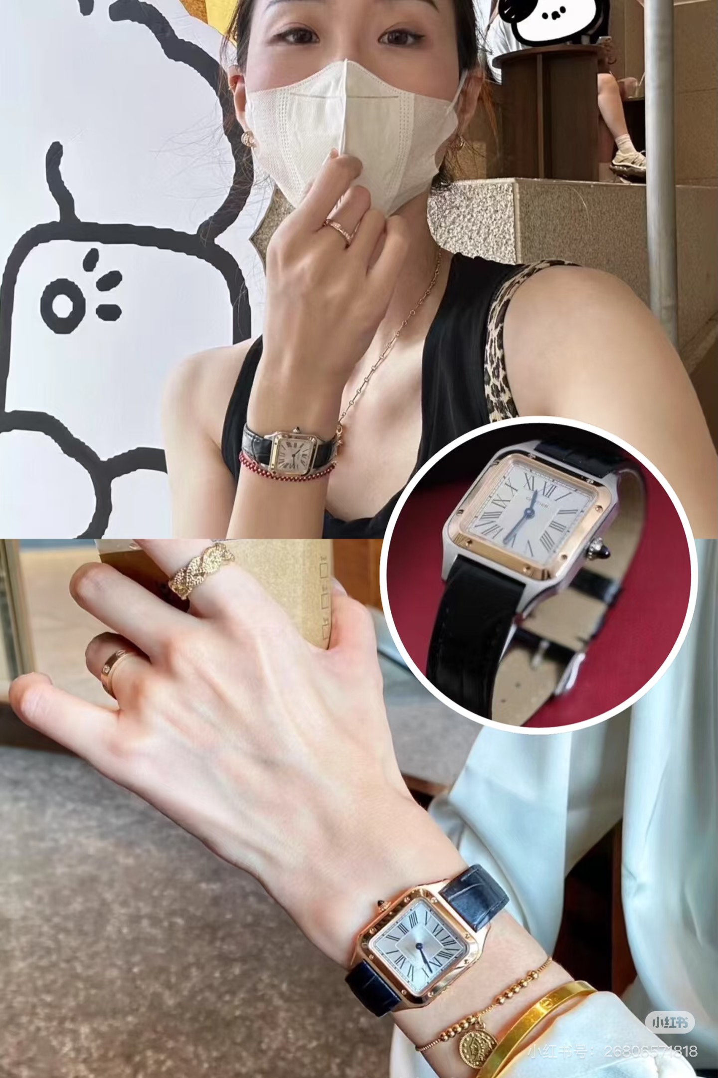 关于品质,关于机芯⬇️凡是说山度士纯zhen'的大家可以把他拉黑名单了,在国内没有任何代工厂的品牌不可能拿到纯成品的,官方售价四万三,我们的货区别在于表壳的材质,zp是chun18k金的,我们的是表层包金工艺,但是外观上是没有任何区别的,且字体依然是750的标志,并且这个款是买了原版进行过拆开对比的,不信的可以慢慢看细节/首先机芯‼️每块机芯都有卡的字母logo刻印,瑞士进口的石英机芯,原机芯,每一块大家收到后可以拆开复检⚠️