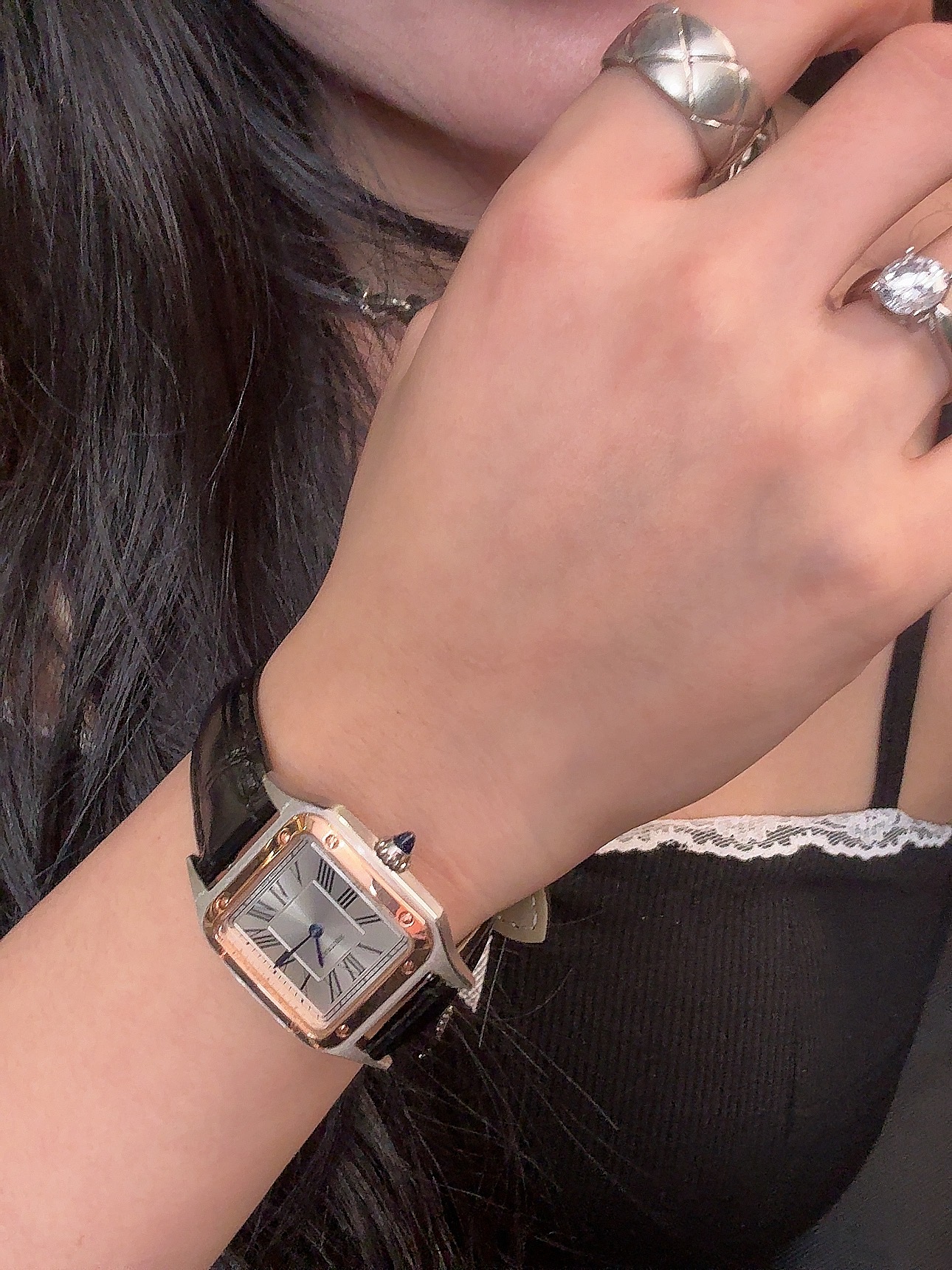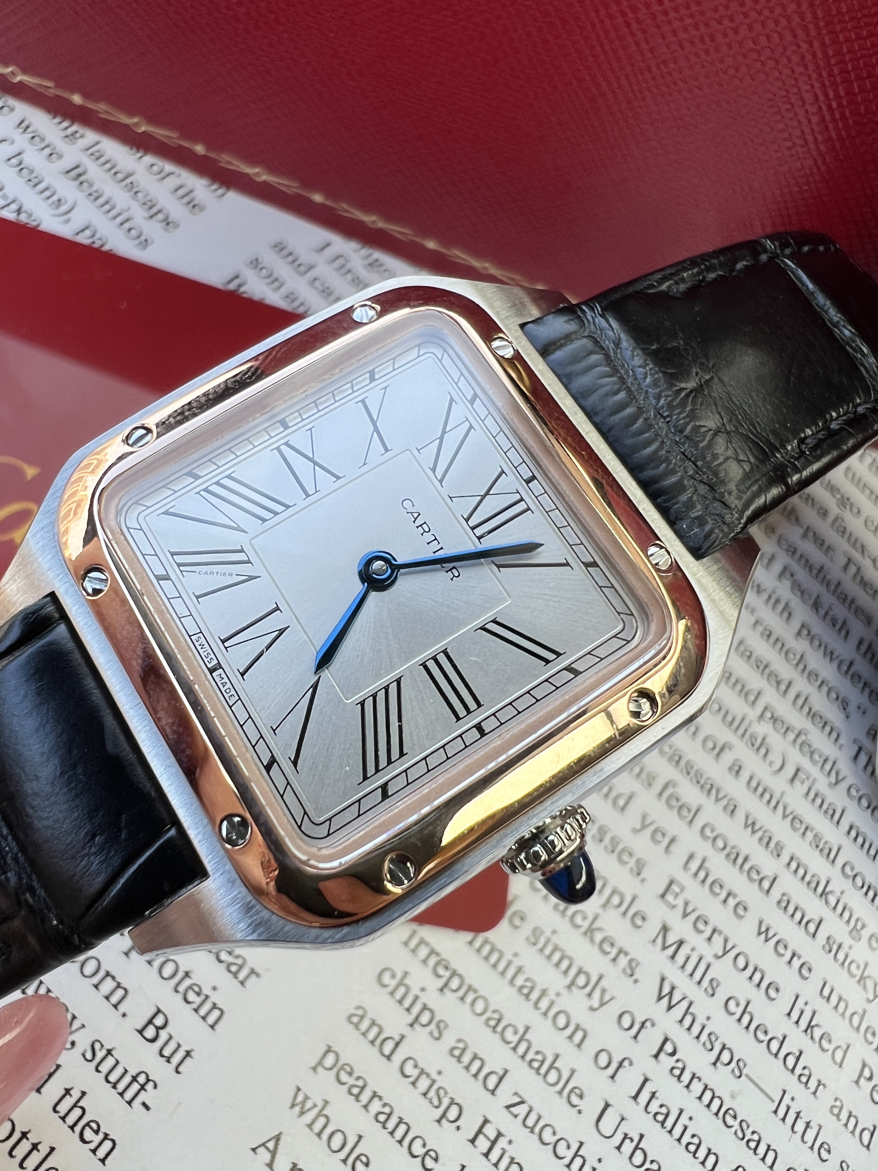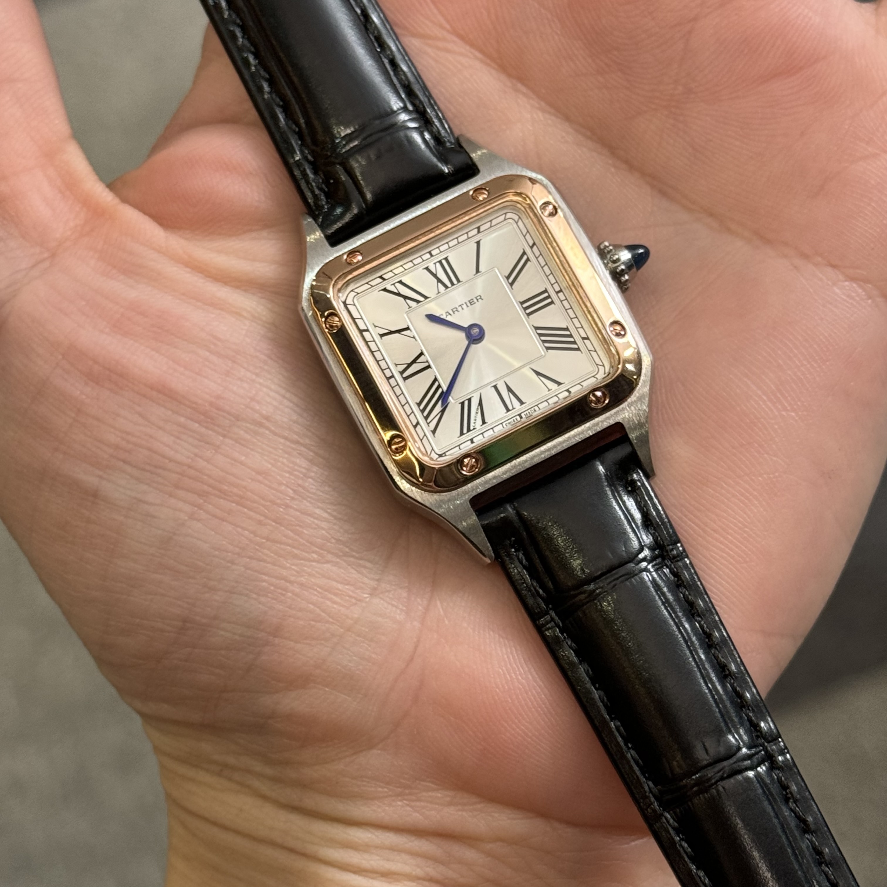 关于品质,关于机芯⬇️凡是说山度士纯zhen'的大家可以把他拉黑名单了,在国内没有任何代工厂的品牌不可能拿到纯成品的,官方售价四万三,我们的货区别在于表壳的材质,zp是chun18k金的,我们的是表层包金工艺,但是外观上是没有任何区别的,且字体依然是750的标志,并且这个款是买了原版进行过拆开对比的,不信的可以慢慢看细节/首先机芯‼️每块机芯都有卡的字母logo刻印,瑞士进口的石英机芯,原机芯,每一块大家收到后可以拆开复检⚠️